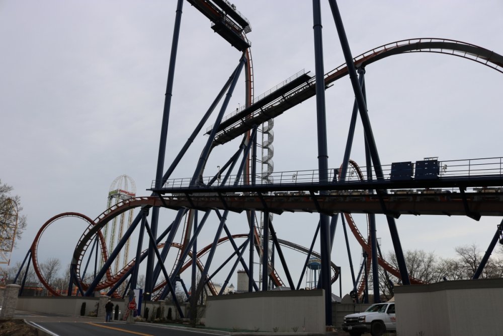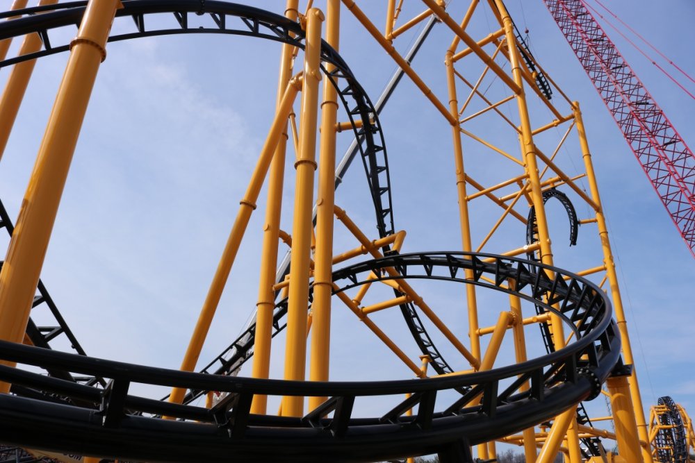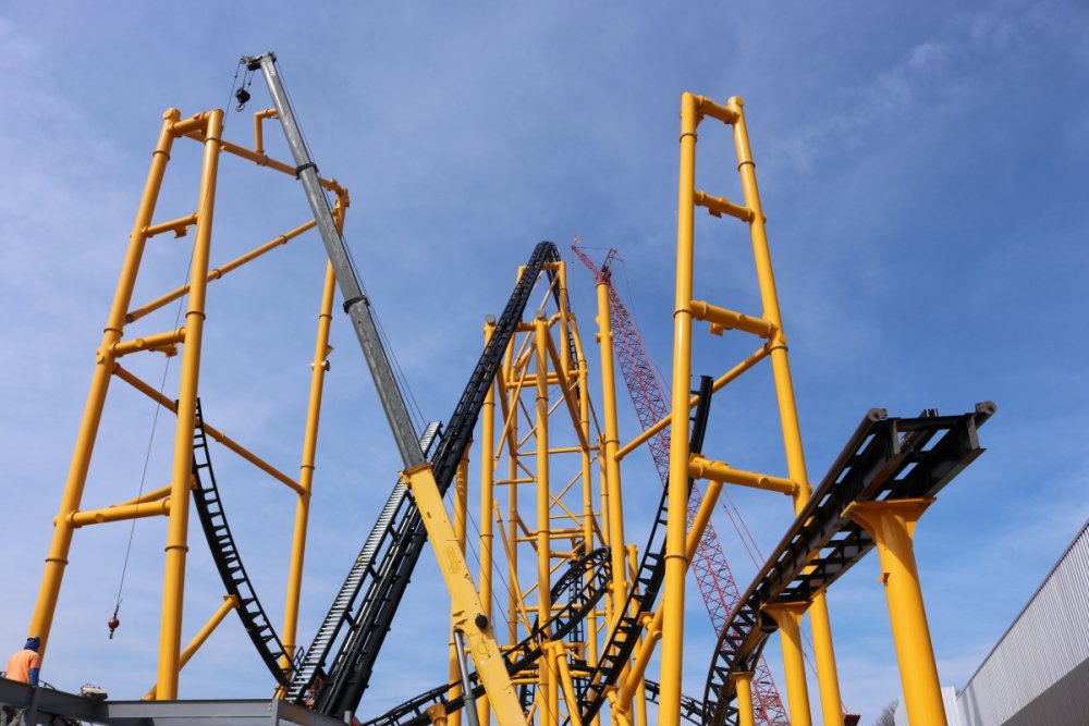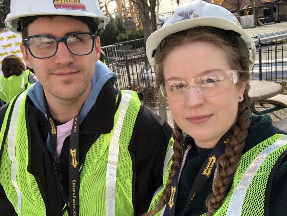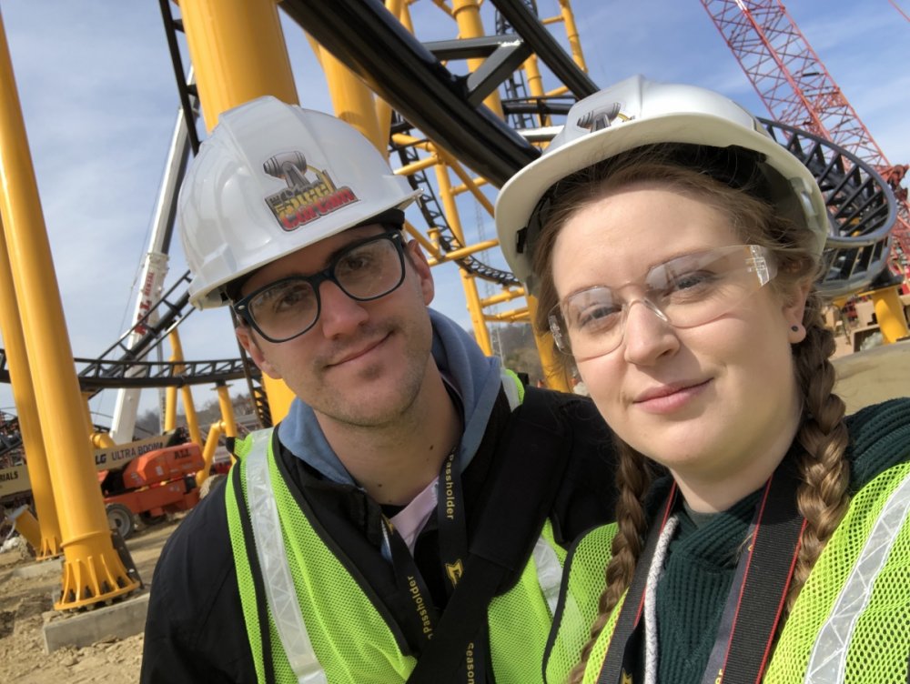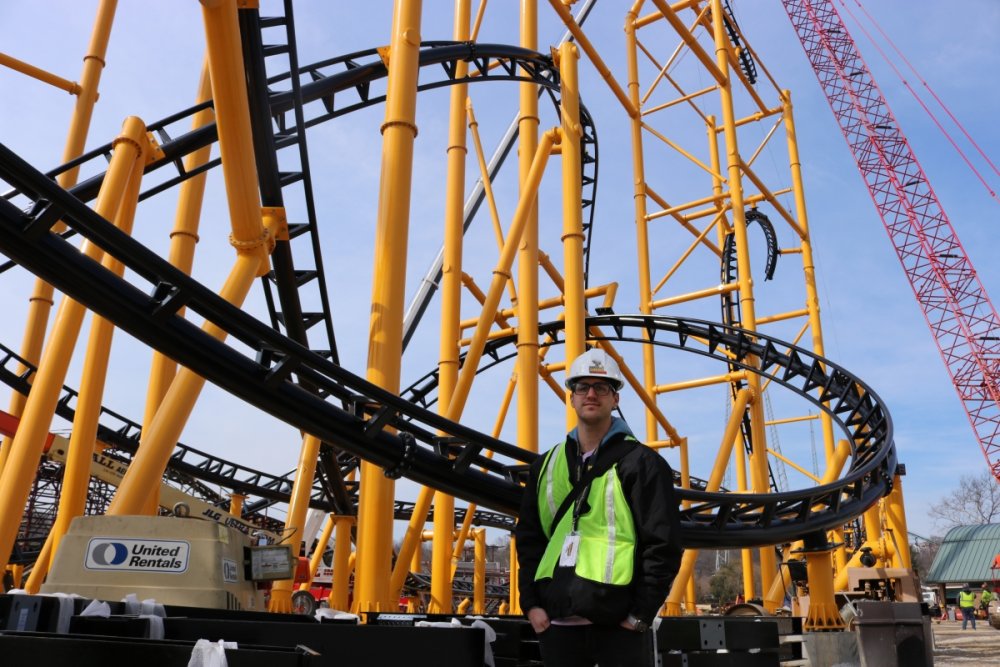 Today Travis and I had the privilege of touring the ValRavn construction site! It was super cold and snowing, and by the end we couldn't feel our fingers and toes, but it was SO worth it! We didn't get much time to ask questions, but here are a few answers from the Project Manager -He said the whole planning process for the ride took a couple years, and they had to consider what layout would fit the area -the ground work for the ride started the day after Labor Day -May 7th is the premiere day -It took 5 cranes to lift the second tallest drop -Testing won't start till the April timeframe Here's some of the pictures and video I took! Enjoy! look at that new skyline <3 I wonder why this road is closed? parts of ValRavn were everywhere! follow the leader! we got to sport these stylish hard hats selfie! Did I mention it was really cold? I love the colors! Looks really nice next to The Raptor really wanted to climb those stairs <3 nerd shot<3 we were lucky enough to see the whole process of the Immelmann inversion being put into place! that new paint job looks so good! ohhh that stuff all looks important... WOW the whole coaster is in this box?! these workers amazed us! a lot of them were working with no gloves and we were bundled up and still couldn't handle the cold! lots of cranes and construction workers everywhere! my favorite thing, an empty park <3 the park looks so different in the off-season …for example there are not usually cars parked everywhere such a great addition to the midway! the size of this ride in person is crazy! the track was supported by these giant concrete blocks! <3 getting closer to putting that next piece in... gotta get that part at the right angle or they have to lower it down and start all over! this whole process took a really long time, there were only 3 other people that braved the cold to watch the Immelmann inversion be put into place getting closer! Ta-Da! worth the wait! watching this whole process up close was a really cool experience! as we left, we said goodbye to the rest of ValRavn This was a really great tour and we really had a ton of fun! I would love to just sit and watch this ride be put together everyday(if it wasn't so cold!) Tony said there were actual company secrets in that bag! Wonder what secrets are hiding in there? going old school with an actual level! -