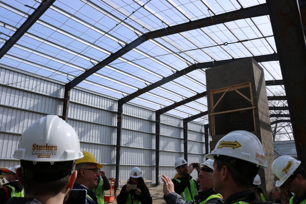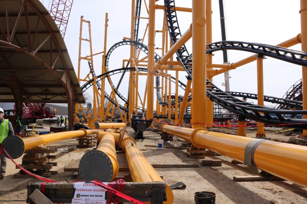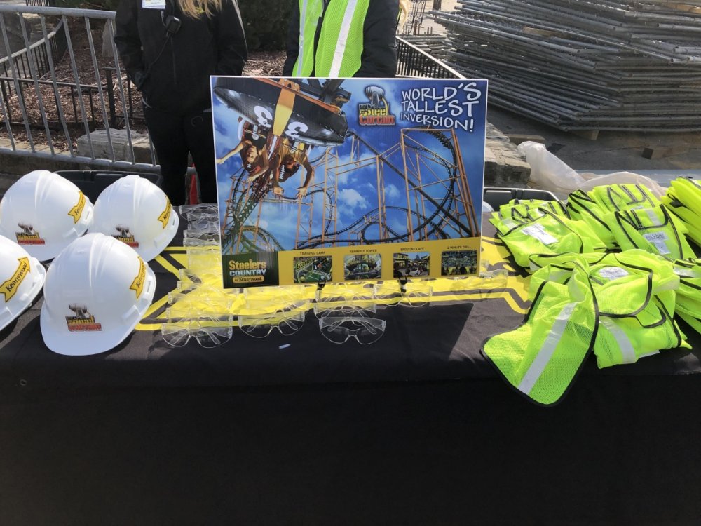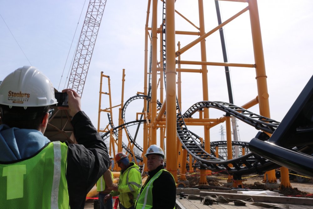 We went to the Steel Curtain Construction Tour on the 20th, here's some of the pictures we took! ready to see some construction! grab your hard hats, vests, and safety goggles! Banana Roll...that sounds delicious! here they had a press conference and discussed the new attractions that will be coming with the new roller coaster! they showed us the buildings they are working on for the new attractions for the steeler experience some of the parts had weights written on them which we thought was cool they brought this track piece while we were waiting to go for the tour! souvenirs? looks so good from afar as well! this concludes our trip report! the new skyline is looking good! Steel Curtain will be a nice addition! their workstation, we thought this was really cool to see progress on the part they were working on -