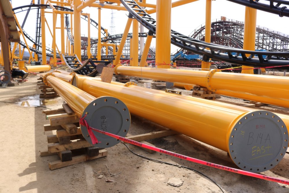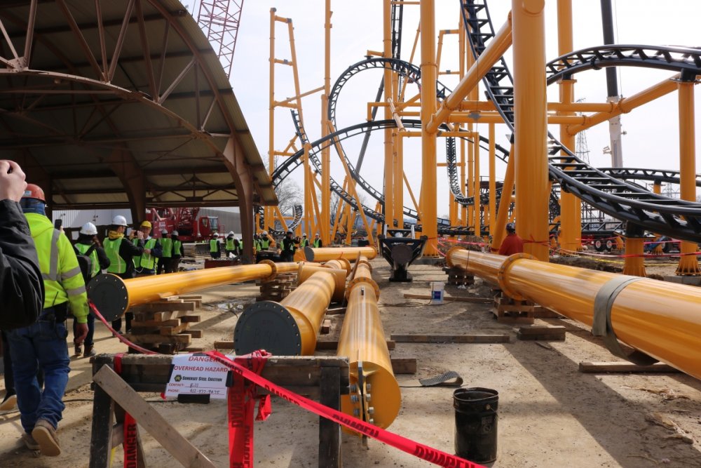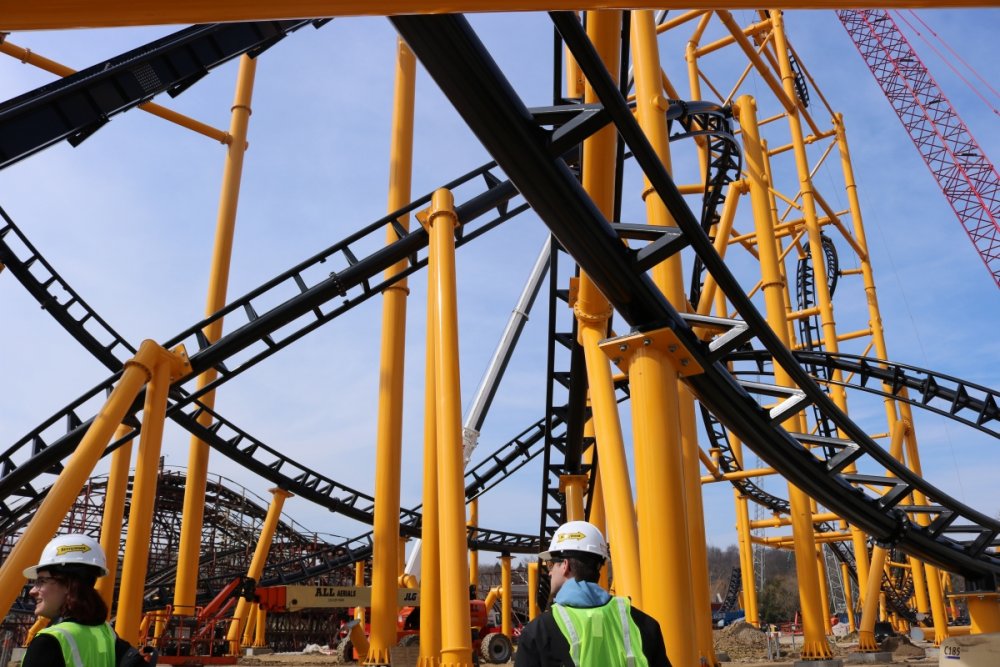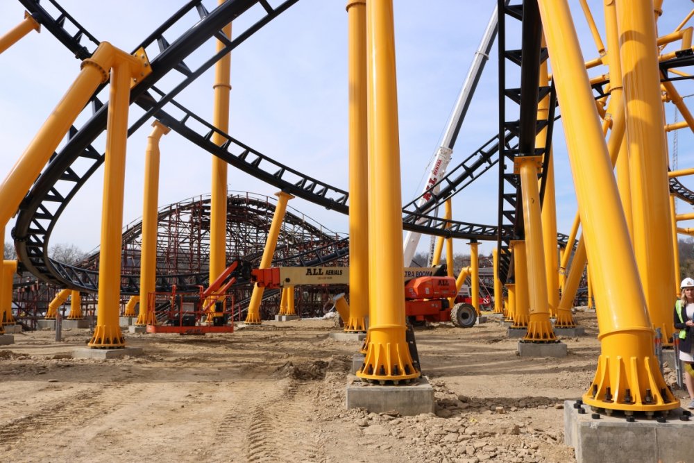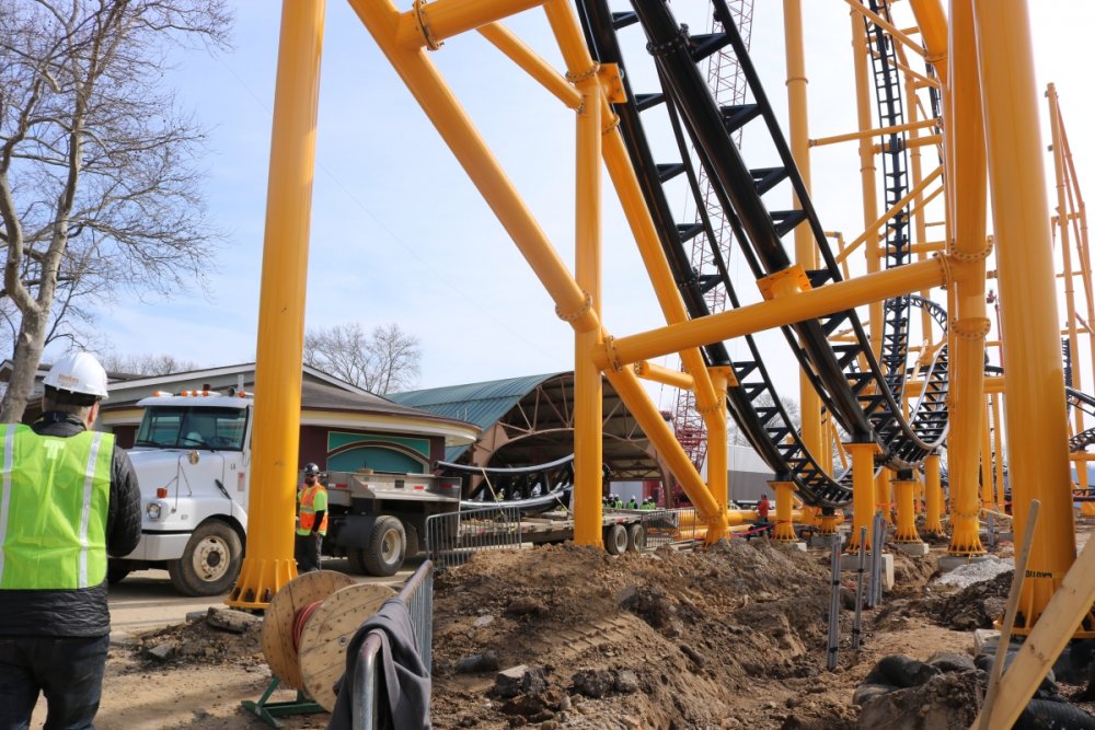 HARD HAT CONSTRUCTION TOUR MEDIA DAY Travis and I went to the construction area today and got to see what they are doing to Mean Streak and it looks AMAZING! Some video we shot... Here's a bunch of pictures from today: looks so GOOD won't see this much longer... exit to the train station Lots of tools are needed for this construction! hmmm... Travis loves it already! SO Many parts everywhere!! beautiful view <3 lots of wood to add as well! WOW where the old entrance was, you can see the railing still a lot of track to add!! -