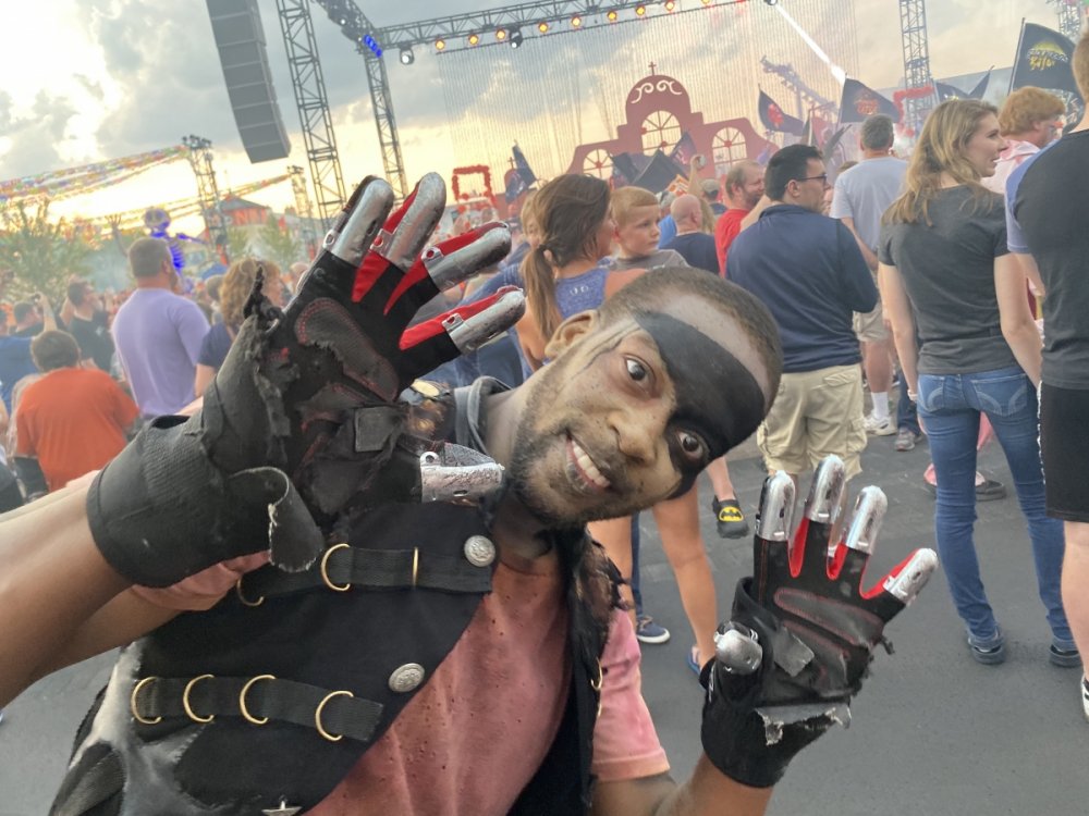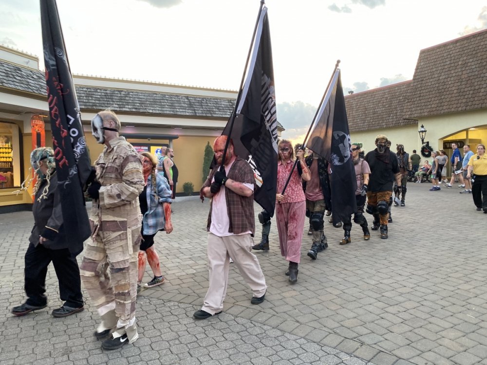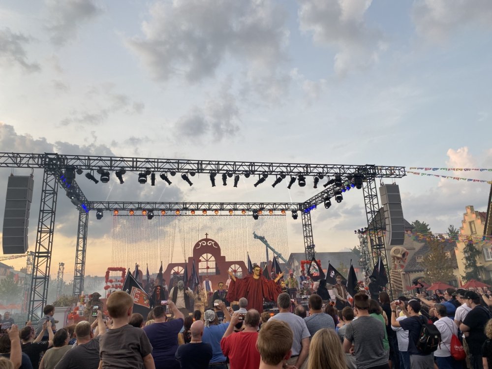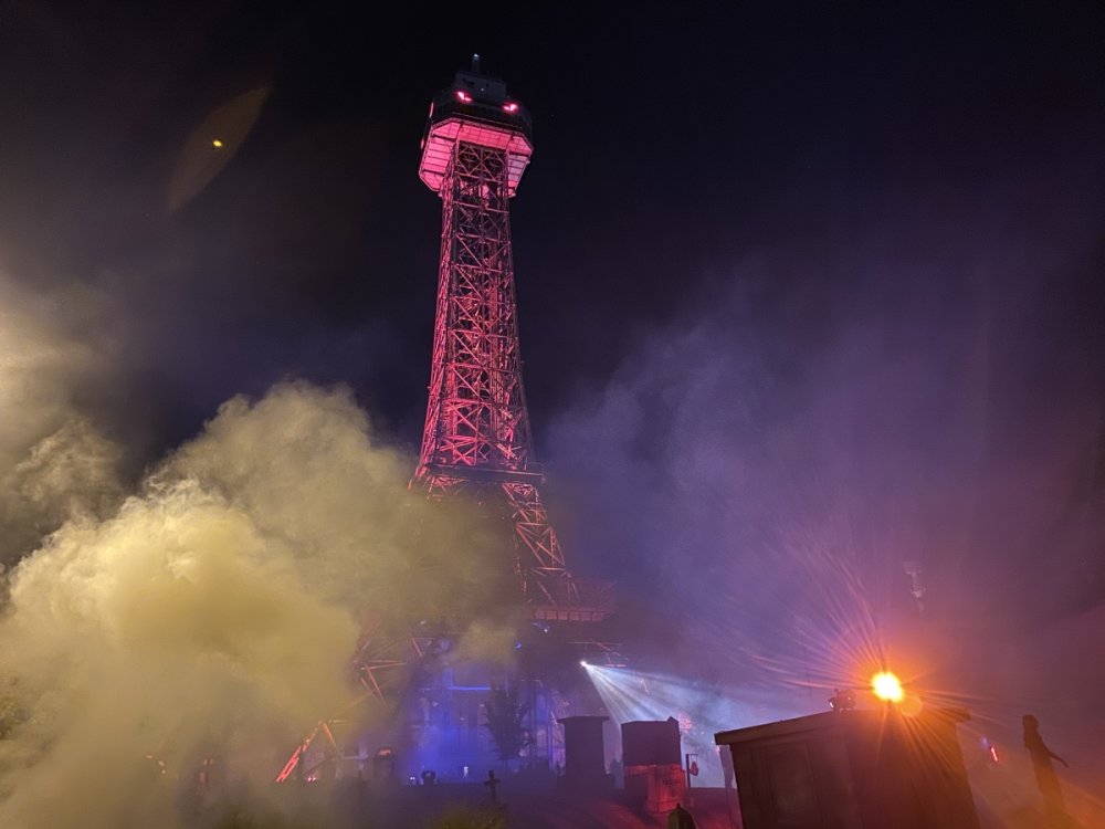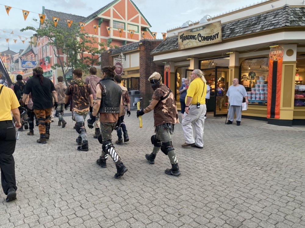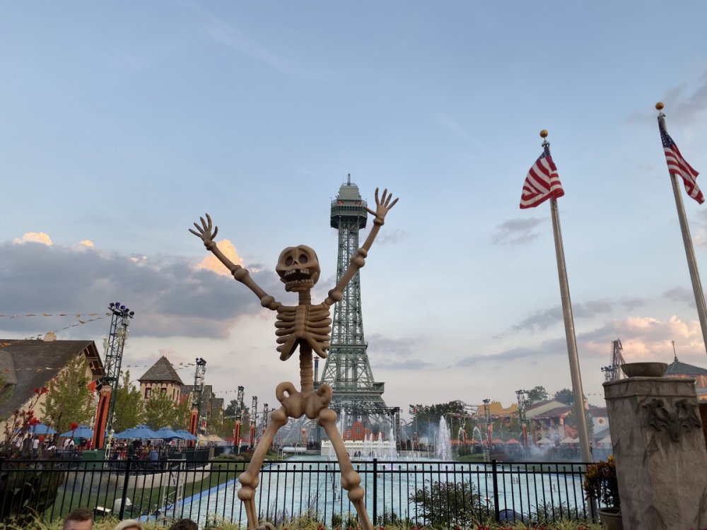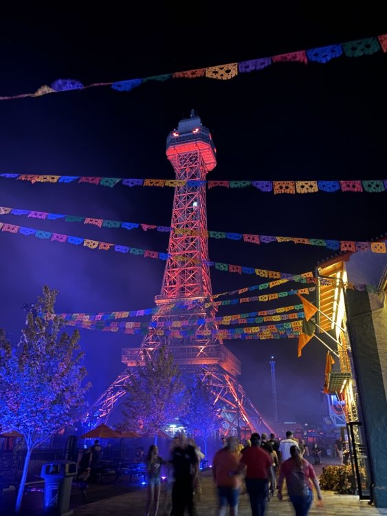 Cassy and Travis Halloween Haunt Trip Report! Yesterday we went to the opening night of haunt for their media event, here’s some pictures from our visit: Still love how they really transform the entrance of the park! Really gets me excited for spooks! Lanyard for the event A list of the mazes, no new mazes this year but there are a ton of new walkthrough experiences which I feel really adds to the experience. However there was a “lights out” version of Madame Fatale’s Cavern of Terror which we really enjoyed! They give you a glow stick when you enter and it really made that maze feel completely different in the dark There are so many monsters to see, and they are all running around the crowd of people They all gather on the stage and announce that the monsters will be unleashed They had an “opening ceremony” which was new to us and I thought was a cool concept, they march to the stage in front of the Eiffel Tower and there scare actors all holding flags of the mazes/walkthroughs that they represent Love these giant skeletons that are on each side of the fountain Made our way to the tower to see the view from above! You can see some of the walkthrough areas starting to get very foggy! Such a cool view from the top! Another funeral scene set up this year...are they getting rid of something else? This is from earlier in the night, the lines got a bit longer as it got darker. Footprints to the beast look so good! The entertainment was really cool, there was a fire breather and they had people twirling fire and we noticed that they were in the new drums of the dead show One of the food displays for one of the new walkthrough areas Went to the media area for some food, love this area! It is such a nice spot for the party Does this count as raiding Area 51? One of my favorite walkthrough areas, I really enjoy all of the pumpkins and they had scare actors in the pathway as well I really enjoy the theming of this maze and it really make you feel like you are going through different departments of a store Shipwrecked was a new walkthrough area and we really liked it, they had pirate themed scare actors with barnacles on their faces and the whole area felt transformed Haunted Homecoming is a newer show, it replaced Hot Blooded last year I believe There were a lot of talented singers this year which was great! Rivertown reaping was a new walkthrough as well, we really enjoyed the variety of new walkthrough areas, it really adds to the mazes and you’re still being scared as you walk to the next maze! Drums of the Dead was a new show this year and included good music and lots of fire! I took quite a few pictures of the tower, I really love the way it looks when it’s decorated all spooky Some of the merchandise for haunt I really like the new clown shirt 40th anniversary merchandise for the Beast Still really like the night package for this ride! night rides on the beast are a must! At the end of the night the front was so foggy that you could barely see the tower When a monster is behind you, just take a selfie! We really had a great time at the park, haunt is our favorite time of year to be at the parks and we always love seeing the changes and the new things they add! -