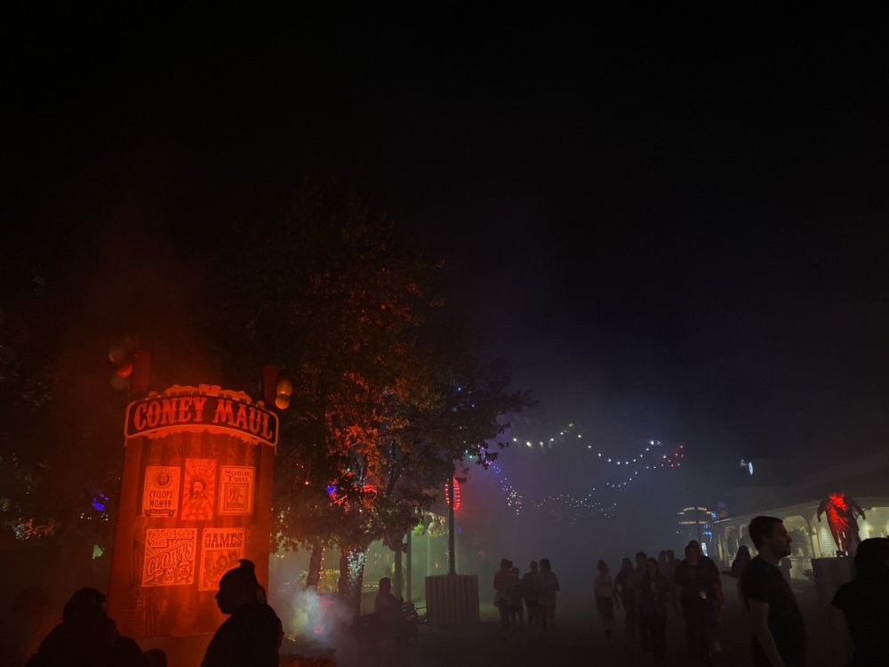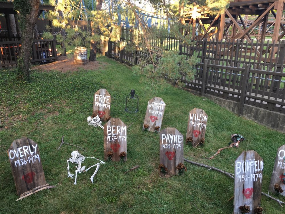Travis and I went to the first day of Halloween haunt on Friday. The weather was amazing and made for a great first day! We had a ton of fun seeing all the changes in the park and to the haunt attractions and monsters. Here's a little description of the mazes/attractions and changes we noticed if any: KillMart- themed like a supermarket, really interesting! really cool theming throughout Board to Death- One of our personal faves, themed like old board games that are easy to recognize Carnevil- Just your average carnival, only a lot more bloody and horrifying Sorority house- A sorority house you will to DIE to join, really good theming! Slaughter house- super gross and bloody, with tons of realistic dead animals possibly a couple people Urgent Scare- a hospital that does NOT have a good survival rate lol! Wolf Pack- a bunch of wolves, lol! this one is actually on the son of beast's train station, and if you look really closely you can see some of the markings on the floor from it Field of Screams(new)- this one is where dinosaurs alive is, and felt a lot more tame than the other mazes because it wasn't as bloody and was themed like a corn maze Madame Fatales Cavern of terror- this one is like house of wax, it has a ton of wax figures and is in the building where the crypt used to be, which I love the repurposed buildings!! Blackout- this one was another of our favorites and is more of an internal fear type maze because it is the fear of the unknown the maze is pitch black, last time if I remember right, you navigated with your left hand and this time was your right hand, also last time there was no way of keeping people together from getting lost and this time there were ropes to hold on for groups The Viewing- this is more of an attraction than a maze, it is an escape the room type thing and if I am correct it was a fast lane only thing?? We never got a chance to try it though because there was always a line, which I'm guessing because they take people in small groups And here's some of the pictures we took: front gate got a spooky upgrade, it was an amazing touch! I just love how the skeleton key shows the year every year, it's the tiny details All of the other mazes were here in the last year, Blackout was the new one last year and it is still one of my favorites! The new attractions were "Field of Screams" and "The Viewing", which was an escape the room attraction, I believe this was restricted to people with a skeleton key/ fast lane. The Viewing was located in the theater at the front of the park. I LOVE how they pack the scarers into the front when the park opens and have them running around terrorizing the guests! went to the top of the eiffel tower to check out the view! always one of my favorite parts! what's that there behind diamondback? the fog was in full effect, so many fog machines!! LOVE kettle corn! of course we had to stop! SPOOKY EYES you can spot these eyes glaring at you around the park the beast area was decorated very well! RIP Travis also all these people mysteriously died when the beast was "unchained" area in front of "Field of Screams" was decorated with corn stalks love the thumbing for this maze! such a cool theme! Everyone is getting scared while this little guy is just enjoying his cake what IS in the shed? Field of Screams, which we went thru when it was dark, was a corn maze basically that was back where dinosaurs alive was. This maze felt a lot more "tame" than some of the other mazes, which is a good thing for the people who are more afraid than others of all the gore can we just take a moment to appreciate the clowns face in the back... XD no halloween haunt would be complete without this guy! he is AMAZING at staying in character and really is an amazing performer, his is the voice you hear throughout the front when you arrive and many people gather around just to talk to him Love this new little touch on all of the trees at the front LOVE Hot Blooded!!! So glad they haven't changed a thing! Such great music and performers every year another music attraction they've installed giant torches along the fountain that go off to the music they play the corn decorations look really cool after it gets dark! such a good show! hmm sounds familiar... night rides on the beast are a MUST the torches that were along the fountain, you could feel the heat from them if you ate at the tables next to them, which will be super nice when it gets colder! had to see Hot Blooded one more time!! gate as we were leaving, we had an amazing time:) love this time of the year at parks! Saturday they were closed to the public -