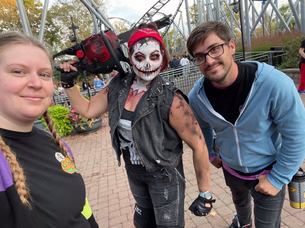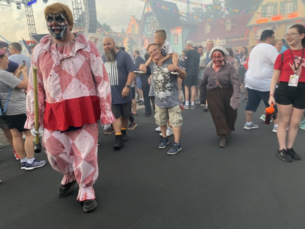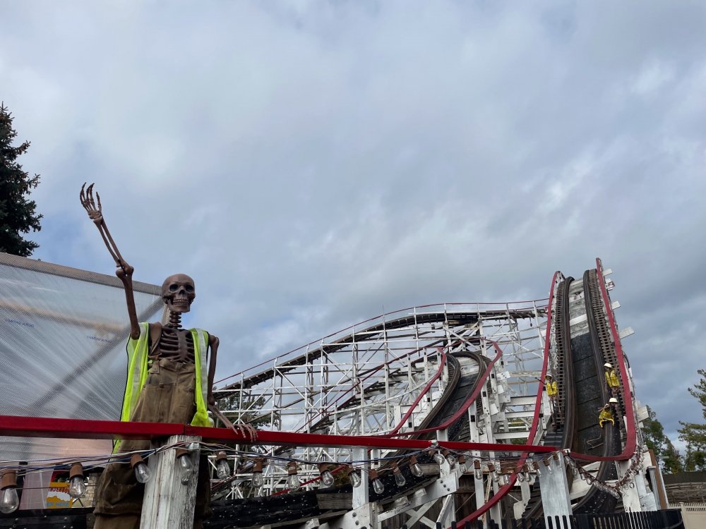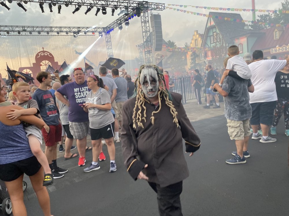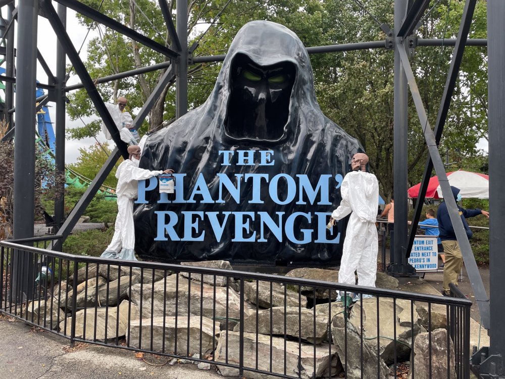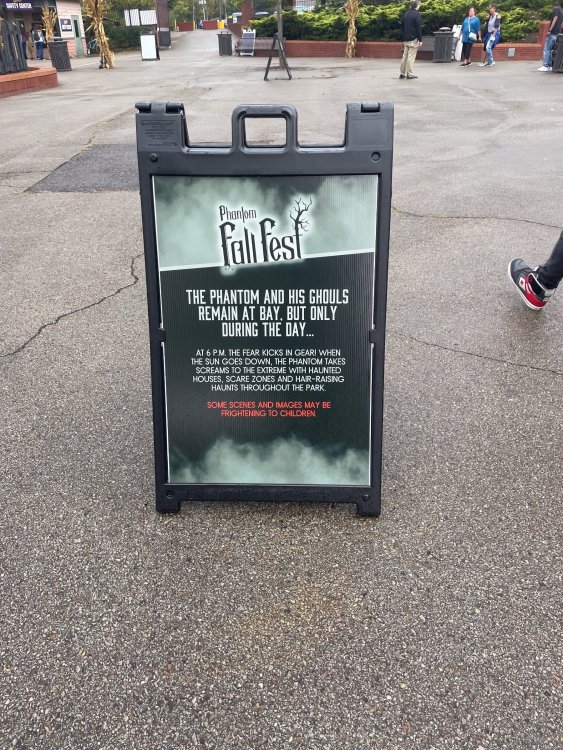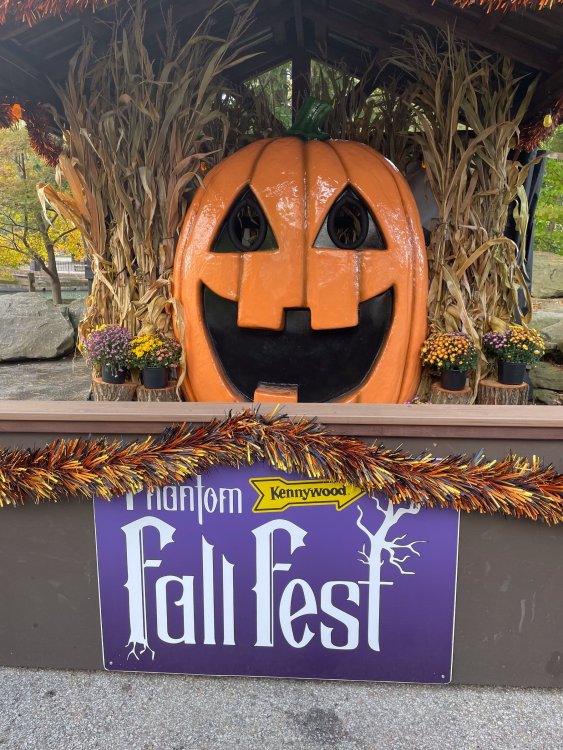 Cassy and Travis's Trip Report for Phantom Fall Fest Preview : Yesterday Travis and I attended Kennywood's Preview event for their new halloween event, Phantom Fall Fest. We have spent a lot of time at Kennywood, but have not been to their halloween events, so we didn't know what to expect! From my understanding, they used to have two separate halloween events; one for kids in the day, then they would close and reopen for the haunt event in the evening. Kennywood's new event Phantom Fall Fest combines the two events and lets families enjoy the festivities during the day and at 6pm the haunting starts, so families with small children know when to leave if they needed to. They had five mazes: 1. Villa of the Vampire-vampire themed maze that takes place in the arcade building, they clear out all the arcade machines and build this maze inside the building, very well themed! (I liked the skull wall) 2. Shady Grove Memorial Hospital-you are going undercover through this maze, to see what's going on with the patients and hospital staff, there's rumors of an evil doctor (where did all their eyes go?) 3. Dark Shadows- this is their "blackout" maze, which was the first of these that I've been in that was outdoors, and we went when it was slightly light outside and we still couldn't see anything! (I love these kind of mazes) 4. Kennyville Cemetery- Very cool cemetery themed maze, located at the front of the park (loved the ghost in the water!) 5. Voodoo Bayou-cool voodoo themed maze that takes place in the rapids ride, they empty out the water and you get to walk around where the water was which I thought was really cool! Also we were told they use their old dying plants from the season as decor for the maze! They also had four scare zones: 1. Fear Fest- this is a carnival themed walkthrough section where the kangaroo used to be (rip kangaroo) 2. Manor Estate Sale- cool little area that makes it seem like you are in someones house looking at their belongings 3. Hellbilly Hollow-name says it all, your classic hillbilly-zombie themed area, some very good scare actors! (they were always chasing someone) 4. The Departing-the final walkthrough, this takes place in the tunnel when you leave the park, they put scare actors in the tunnel and pump up the fog! (this starts later in the evening, I think 90 minutes before they close) Here are pictures from our evening: Kenny was in his halloween best! love sky rocket! such a fun ride next was phantoms revenge, loved the theming of decor since they are currently working on painting the track the purple track looks cool! sad that this ride was blocked off, but thought it was funny they decorated the blocked off area had to try the "scary waffle cone" you could choose the ice cream flavor, then it had orange sprinkles and gummy worms for the preview we tried some of the new seasonal offerings they have this year such as roasted corn, turkey legs, hamburger steak, and spooky desserts! Noah's ark is one of my favorite attractions here, its so unique! have to ride the whip! such a great ride! Lots of photo-op areas everywhere! picture of the voodoo bayou sign in the day, this was my favorite sign for the mazes I loved the effort they put into theming the haunt decor to what was going on, these guys are doing a little construction! Next for the preview event, we went on a behind the scenes tour of Villa of the Vampire. Like I said before, this maze was inside the arcade area and is built from scratch every year after they move all the arcade machines out. Super cool to see all the detail you don't get to admire when the maze is dark (and avoiding vampires). I thought Laffin' Sal was scary as she was! Now she's hanging out with the vampires! this is the main room where they explain the rules of the maze we got to go where the scare actors go, and see all the doors and windows they use Mark showing off one of the secret doors my favorite area! I want the skull wall for my house! the woman in the picture on the wall was an employee for that attraction for years before she passed away and they honor her by putting her photo in the room where she worked the most gotta take that spooky mirror selfie! one of the cool effects they use for the bug rooms is they have fishing wire that brushes against your face and hair making you feel like you're walking through webs Then we got to go behind the scenes and see makeup being done on scare actors, and look at some of their masks and props they use to transform scare actors for the the night! had to get some pictures back there too! this is where they work on everything for the upkeep on their wooden coasters RIP Also RIP (I really miss this one) Glad we went on this earlier in the day cause the whale was full! love seeing real chainsaws being used for haunts! they pumped fog into the carousel, I thought this was a really cool touch! we left a little earlier than when they started this walkthrough area, but there were some scare actors at the end of the tunnel had to take a spooky tunnel selfie Overall we had a good time, and really enjoyed the night! Our favorite maze was Voodoo Bayou, and we loved that all the areas had a ton of fog and really good scare actors! This is a great family event, with something for everyone to enjoy! -