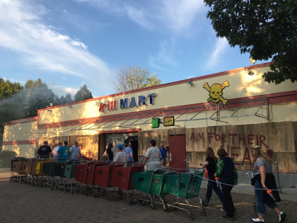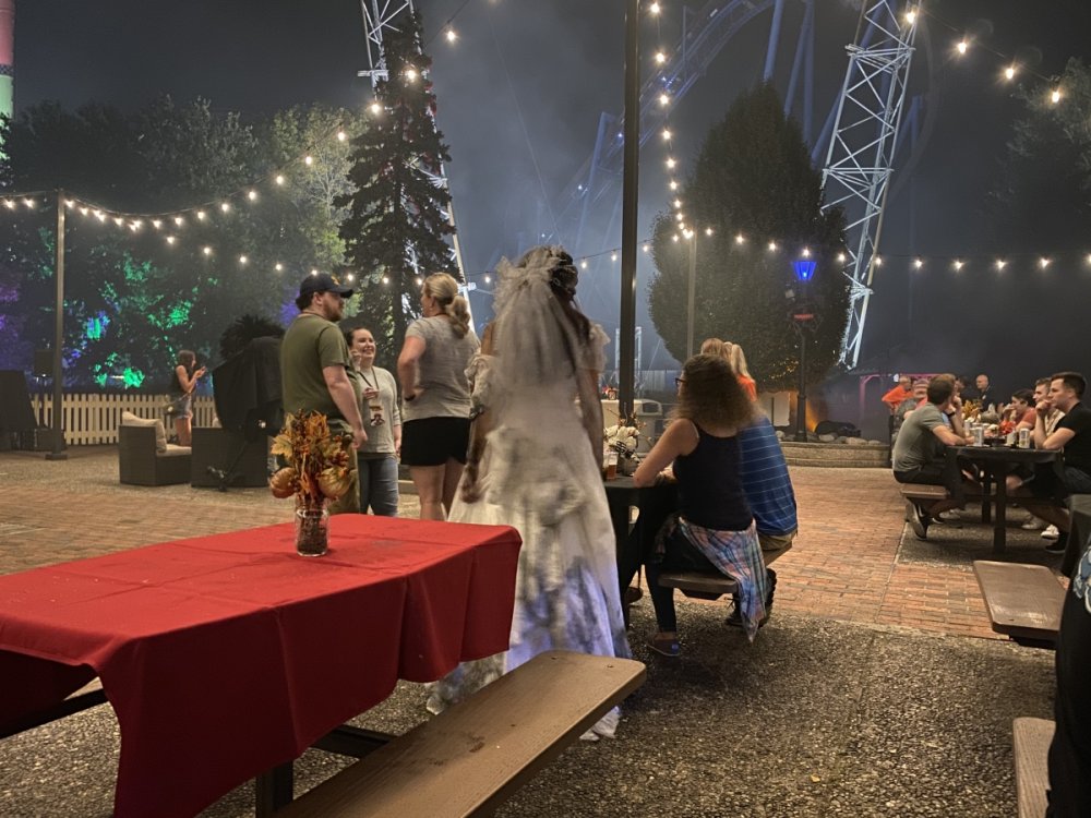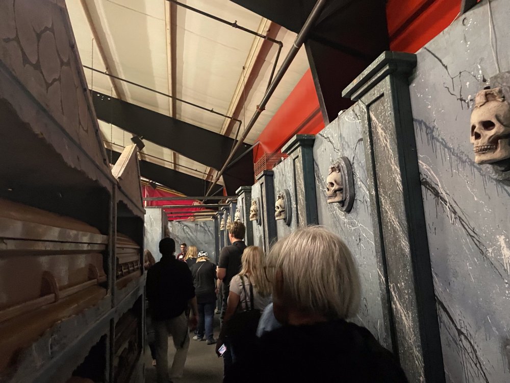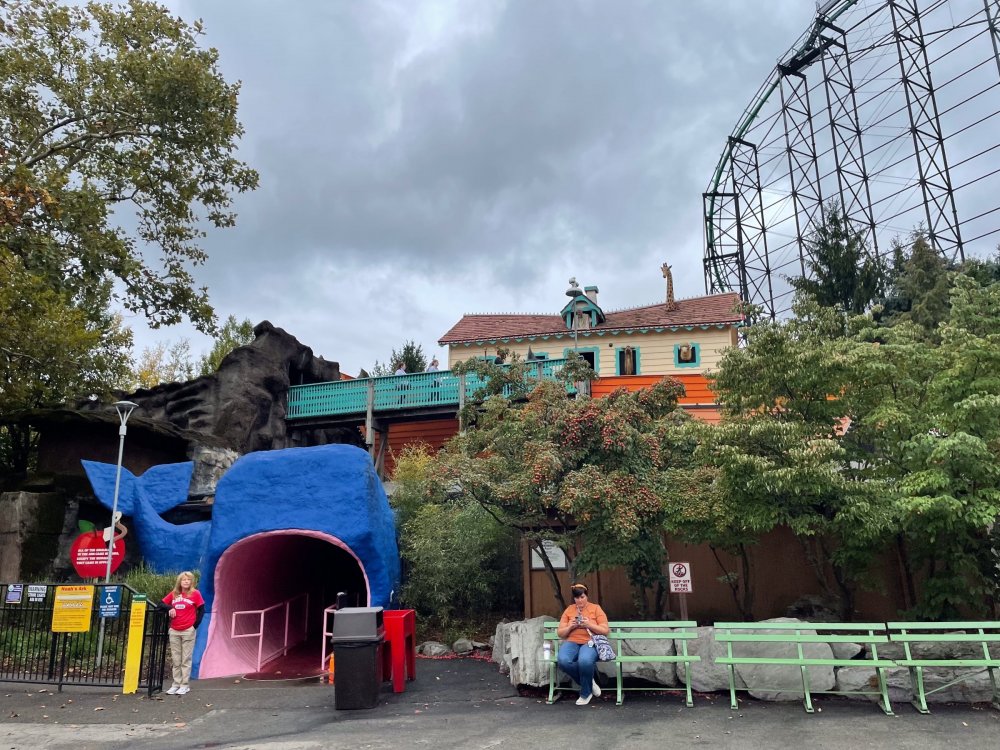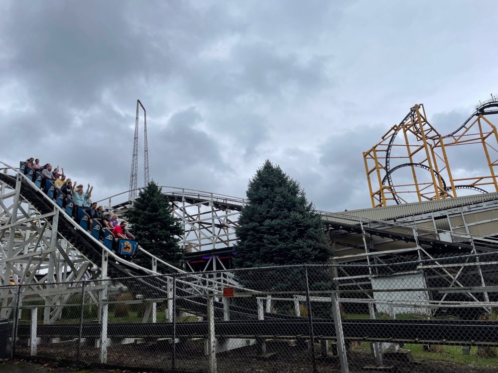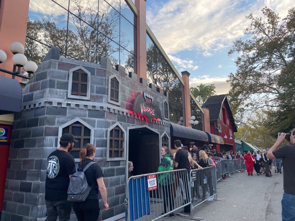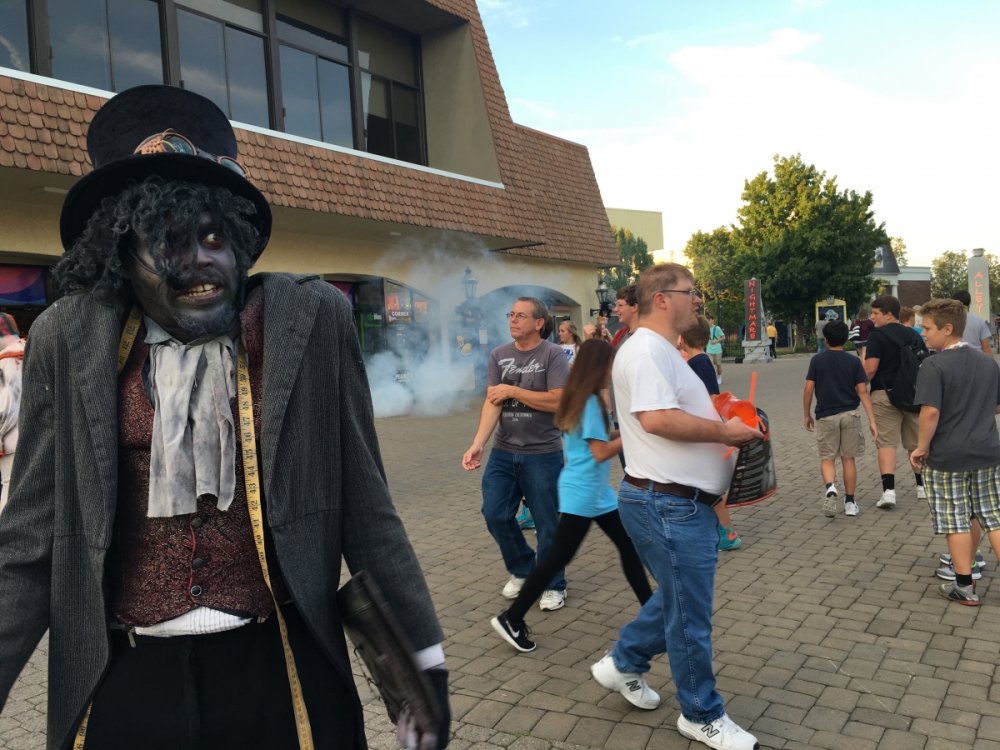 Cassy and Travis's Trip Report for Phantom Fall Fest Preview : Yesterday Travis and I attended Kennywood's Preview event for their new halloween event, Phantom Fall Fest. We have spent a lot of time at Kennywood, but have not been to their halloween events, so we didn't know what to expect! From my understanding, they used to have two separate halloween events; one for kids in the day, then they would close and reopen for the haunt event in the evening. Kennywood's new event Phantom Fall Fest combines the two events and lets families enjoy the festivities during the day and at 6pm the haunting starts, so families with small children know when to leave if they needed to. They had five mazes: 1. Villa of the Vampire-vampire themed maze that takes place in the arcade building, they clear out all the arcade machines and build this maze inside the building, very well themed! (I liked the skull wall) 2. Shady Grove Memorial Hospital-you are going undercover through this maze, to see what's going on with the patients and hospital staff, there's rumors of an evil doctor (where did all their eyes go?) 3. Dark Shadows- this is their "blackout" maze, which was the first of these that I've been in that was outdoors, and we went when it was slightly light outside and we still couldn't see anything! (I love these kind of mazes) 4. Kennyville Cemetery- Very cool cemetery themed maze, located at the front of the park (loved the ghost in the water!) 5. Voodoo Bayou-cool voodoo themed maze that takes place in the rapids ride, they empty out the water and you get to walk around where the water was which I thought was really cool! Also we were told they use their old dying plants from the season as decor for the maze! They also had four scare zones: 1. Fear Fest- this is a carnival themed walkthrough section where the kangaroo used to be (rip kangaroo) 2. Manor Estate Sale- cool little area that makes it seem like you are in someones house looking at their belongings 3. Hellbilly Hollow-name says it all, your classic hillbilly-zombie themed area, some very good scare actors! (they were always chasing someone) 4. The Departing-the final walkthrough, this takes place in the tunnel when you leave the park, they put scare actors in the tunnel and pump up the fog! (this starts later in the evening, I think 90 minutes before they close) Here are pictures from our evening: Kenny was in his halloween best! love sky rocket! such a fun ride next was phantoms revenge, loved the theming of decor since they are currently working on painting the track the purple track looks cool! sad that this ride was blocked off, but thought it was funny they decorated the blocked off area had to try the "scary waffle cone" you could choose the ice cream flavor, then it had orange sprinkles and gummy worms for the preview we tried some of the new seasonal offerings they have this year such as roasted corn, turkey legs, hamburger steak, and spooky desserts! Noah's ark is one of my favorite attractions here, its so unique! have to ride the whip! such a great ride! Lots of photo-op areas everywhere! picture of the voodoo bayou sign in the day, this was my favorite sign for the mazes I loved the effort they put into theming the haunt decor to what was going on, these guys are doing a little construction! Next for the preview event, we went on a behind the scenes tour of Villa of the Vampire. Like I said before, this maze was inside the arcade area and is built from scratch every year after they move all the arcade machines out. Super cool to see all the detail you don't get to admire when the maze is dark (and avoiding vampires). I thought Laffin' Sal was scary as she was! Now she's hanging out with the vampires! this is the main room where they explain the rules of the maze we got to go where the scare actors go, and see all the doors and windows they use Mark showing off one of the secret doors my favorite area! I want the skull wall for my house! the woman in the picture on the wall was an employee for that attraction for years before she passed away and they honor her by putting her photo in the room where she worked the most gotta take that spooky mirror selfie! one of the cool effects they use for the bug rooms is they have fishing wire that brushes against your face and hair making you feel like you're walking through webs Then we got to go behind the scenes and see makeup being done on scare actors, and look at some of their masks and props they use to transform scare actors for the the night! had to get some pictures back there too! this is where they work on everything for the upkeep on their wooden coasters RIP Also RIP (I really miss this one) Glad we went on this earlier in the day cause the whale was full! love seeing real chainsaws being used for haunts! they pumped fog into the carousel, I thought this was a really cool touch! we left a little earlier than when they started this walkthrough area, but there were some scare actors at the end of the tunnel had to take a spooky tunnel selfie Overall we had a good time, and really enjoyed the night! Our favorite maze was Voodoo Bayou, and we loved that all the areas had a ton of fog and really good scare actors! This is a great family event, with something for everyone to enjoy! -