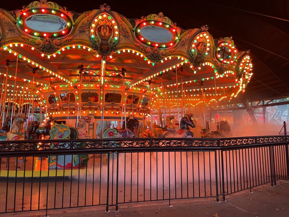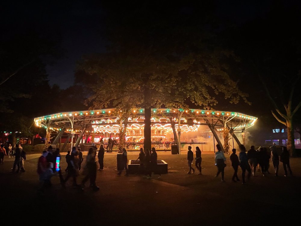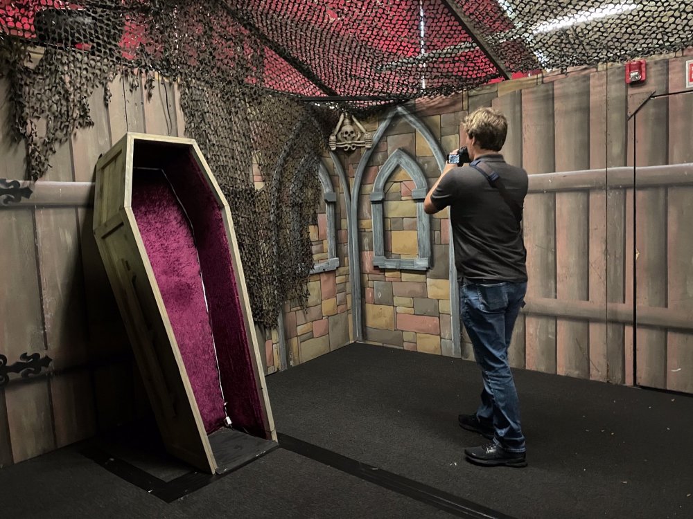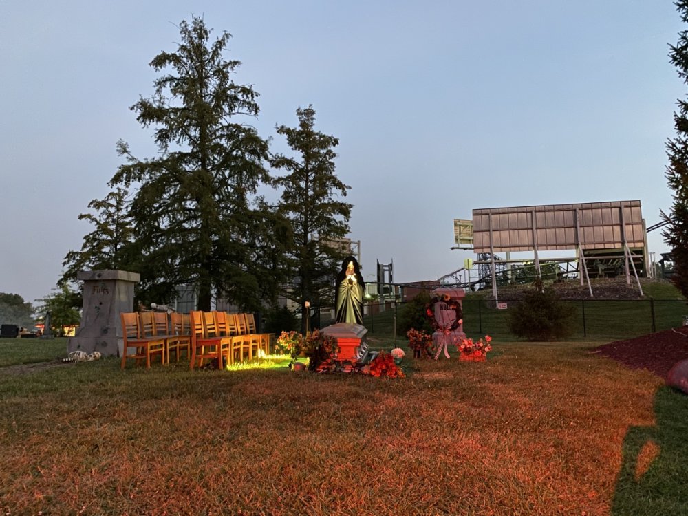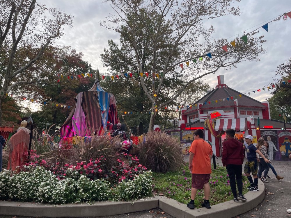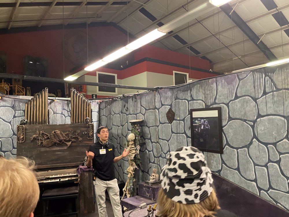 Cassy and Travis's Trip Report for Phantom Fall Fest Preview : Yesterday Travis and I attended Kennywood's Preview event for their new halloween event, Phantom Fall Fest. We have spent a lot of time at Kennywood, but have not been to their halloween events, so we didn't know what to expect! From my understanding, they used to have two separate halloween events; one for kids in the day, then they would close and reopen for the haunt event in the evening. Kennywood's new event Phantom Fall Fest combines the two events and lets families enjoy the festivities during the day and at 6pm the haunting starts, so families with small children know when to leave if they needed to. They had five mazes: 1. Villa of the Vampire-vampire themed maze that takes place in the arcade building, they clear out all the arcade machines and build this maze inside the building, very well themed! (I liked the skull wall) 2. Shady Grove Memorial Hospital-you are going undercover through this maze, to see what's going on with the patients and hospital staff, there's rumors of an evil doctor (where did all their eyes go?) 3. Dark Shadows- this is their "blackout" maze, which was the first of these that I've been in that was outdoors, and we went when it was slightly light outside and we still couldn't see anything! (I love these kind of mazes) 4. Kennyville Cemetery- Very cool cemetery themed maze, located at the front of the park (loved the ghost in the water!) 5. Voodoo Bayou-cool voodoo themed maze that takes place in the rapids ride, they empty out the water and you get to walk around where the water was which I thought was really cool! Also we were told they use their old dying plants from the season as decor for the maze! They also had four scare zones: 1. Fear Fest- this is a carnival themed walkthrough section where the kangaroo used to be (rip kangaroo) 2. Manor Estate Sale- cool little area that makes it seem like you are in someones house looking at their belongings 3. Hellbilly Hollow-name says it all, your classic hillbilly-zombie themed area, some very good scare actors! (they were always chasing someone) 4. The Departing-the final walkthrough, this takes place in the tunnel when you leave the park, they put scare actors in the tunnel and pump up the fog! (this starts later in the evening, I think 90 minutes before they close) Here are pictures from our evening: Kenny was in his halloween best! love sky rocket! such a fun ride next was phantoms revenge, loved the theming of decor since they are currently working on painting the track the purple track looks cool! sad that this ride was blocked off, but thought it was funny they decorated the blocked off area had to try the "scary waffle cone" you could choose the ice cream flavor, then it had orange sprinkles and gummy worms for the preview we tried some of the new seasonal offerings they have this year such as roasted corn, turkey legs, hamburger steak, and spooky desserts! Noah's ark is one of my favorite attractions here, its so unique! have to ride the whip! such a great ride! Lots of photo-op areas everywhere! picture of the voodoo bayou sign in the day, this was my favorite sign for the mazes I loved the effort they put into theming the haunt decor to what was going on, these guys are doing a little construction! Next for the preview event, we went on a behind the scenes tour of Villa of the Vampire. Like I said before, this maze was inside the arcade area and is built from scratch every year after they move all the arcade machines out. Super cool to see all the detail you don't get to admire when the maze is dark (and avoiding vampires). I thought Laffin' Sal was scary as she was! Now she's hanging out with the vampires! this is the main room where they explain the rules of the maze we got to go where the scare actors go, and see all the doors and windows they use Mark showing off one of the secret doors my favorite area! I want the skull wall for my house! the woman in the picture on the wall was an employee for that attraction for years before she passed away and they honor her by putting her photo in the room where she worked the most gotta take that spooky mirror selfie! one of the cool effects they use for the bug rooms is they have fishing wire that brushes against your face and hair making you feel like you're walking through webs Then we got to go behind the scenes and see makeup being done on scare actors, and look at some of their masks and props they use to transform scare actors for the the night! had to get some pictures back there too! this is where they work on everything for the upkeep on their wooden coasters RIP Also RIP (I really miss this one) Glad we went on this earlier in the day cause the whale was full! love seeing real chainsaws being used for haunts! they pumped fog into the carousel, I thought this was a really cool touch! we left a little earlier than when they started this walkthrough area, but there were some scare actors at the end of the tunnel had to take a spooky tunnel selfie Overall we had a good time, and really enjoyed the night! Our favorite maze was Voodoo Bayou, and we loved that all the areas had a ton of fog and really good scare actors! This is a great family event, with something for everyone to enjoy! -