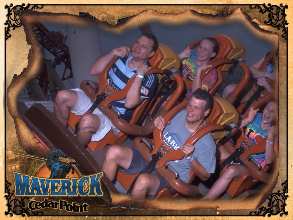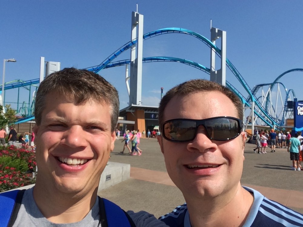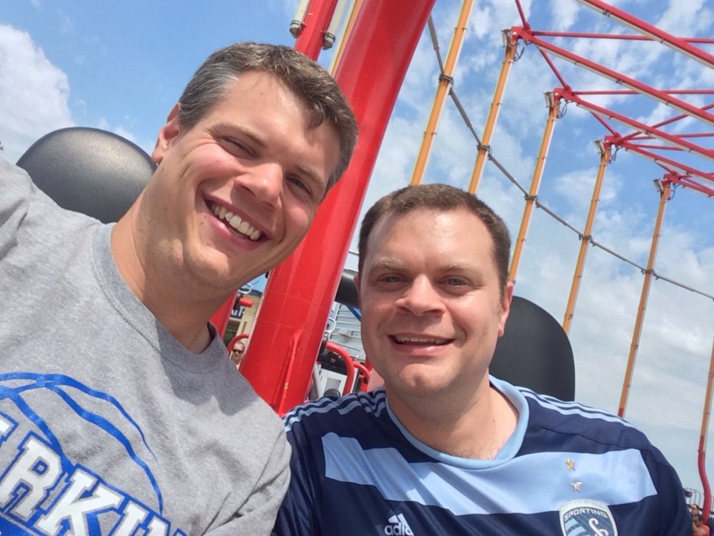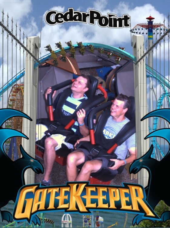 22. Thanks for the kind words thus far. Part 2: Once back in the park we decided to get one of the coaster credits out of the way before our tour started at 11 and headed to Blue Streak. The wait was less than 10 minutes and we opted for the back row. In retrospect, the back row was probably a mistake. That ride was rough back there. I’m used to old school woodies having a good bit of rattle, but this coaster just slammed us into our seats on several occasions and was really painful on our lower backs. That ride made me feel old, and not in a good way. With the park filling up, and not really wanting to wait for much, we started to walk back to the Speedzone Gift shop next to Top Thrill Dragster to meet our VIP tour guide. While we were walking back, we passed Cedar Downs and there was no one in line, and they were still waiting a little bit for additional riders, so we decided to hop on. We both had really low expectations, thinking it was just another carousel. Once the ride started to pick up, we realized that we were very wrong in our assumptions and had a blast as the ride continued to pick up speed. We also loved how the horses continued to jockey back and forth until the ride comes to a stop, at which point my brother was the winner in our row. I’m so happy that we stumbled on that ride. It is really unique and quite fun. At this point, we finished our walk back and waited for our tour guide. For some reason, I had been referring to our yet-unseen guide as her/she and so did my brother, although we had zero inkling that it would be a girl, it was just what we had envisioned in our heads. A little after 11, we met our tour guide Mackenzie. We made the necessary introductions and she went over what the tour entailed, making note that the tour ended at 8 and she needed an hour for lunch that we could take whenever we wanted, that we would have front of the line access on every ride and special seating to shows and the like. My brother and I let it be known, that if the weather cooperated, we would not be taking advantage of the shows and would be hitting up the coasters as much as possible. Once the greetings and brief “tutorial” were completed, she asked, “Do you know what you would like to ride first?” My brother and I just pointed at TTD with huge grins on our faces. She replied, “OK!” and we walked across the midway to the exit of TTD. She led the way up the ramp and told the ride operator at the unload station that she needed two seats in the front. After handing her my bag, we walked into our seats and buckled in with zero wait. Our train pulled ahead into the loading station where the ride op with the microphone let the queue know that if there was someone in your row, “please do not sit on guests in the seats as that would be uncomfortable for all involved.” Once the rest of the train was loaded we were on our way up and down the track. This was my first ever ride on TTD and I was amazed by the experience. I had a huge grin on my face the whole ride. The launch was intense and smooth. I started to get ejected from my seat before we crested the hill and stayed off my seat for the entire way down. It is such a different experience than any other coaster I had ridden, and I loved every second of the ride. As part of the VIP tour, we also received one hard copy of an on-ride photo, so we looked at the picture. It turned out to be a really good photo, but we weren’t sure if that was “THE” picture of us that we wanted. We decided not to get that photo and started to leave. As we were leaving, I saw a little add for an All Day Photopass. For $30, you could get every on-ride photo emailed to you. Knowing that we would be riding a lot of coasters with on-ride photo opportunities, this seemed like a no-brainer and a really cool way to help us remember this experience for a long long time. Note the huge grin on my face in both pictures. I also love the pained/constipated look from my brother. In our planning of our trip, my brother and I brainstormed different ways to make the most of our day on the VIP tour. We knew that we could not take consecutive rides on anything, so we thought about different strategies. One idea was to just make a lap around the park and ride everything once, then go back to our favorites. That had its appeal to both of us, but we had already been to the park and knew what rides we would likely want multiple rides. We decided to use 4 rides as a sort of home base and ride other rides around those foundational coasters to get a lot of laps on those rides. Since TTD was our first “home base,” after our first lap on TTD, we rode the Shot side of Power Tower, which was a lot of fun. I had been on a shorter version at Holiday World and liked the increased speed of the larger tower, but I didn’t get as much ejector air at the top of Power Tower as the Holiday World ride. Both my brother and I noticed how smooth it was; over all it was a great ride. After Power Tower, we took another lap on TTD again in the front row. After our second lap on TTD, we headed over to Corkscrew. My brother has a soft spot for Arrow loopers, as Shockwave at Great America was one of his first mind-blowing coaster experiences. The beginning of Corkscrew wasn’t too bad, but from the bottom of the air time hill through the end of the corkscrews, there were 3 or 4 major painful moments that crushed our lower backs, similar to Blue Streak. Needless to say, it was our only lap on it all day. We then headed back to TTD for our 3rd lap of the day, this time in the back row. By this time, it was our 3rd lap in about 30 minutes and the ride operators noted our affection for the ride and were really friendly to us. It was a small gesture, but it really helped make my brother and I feel like special guests. We both liked the way the suspense built up, as you had no idea when the brake fins went down. The back row has a significant shutter at the end of the launch, which
