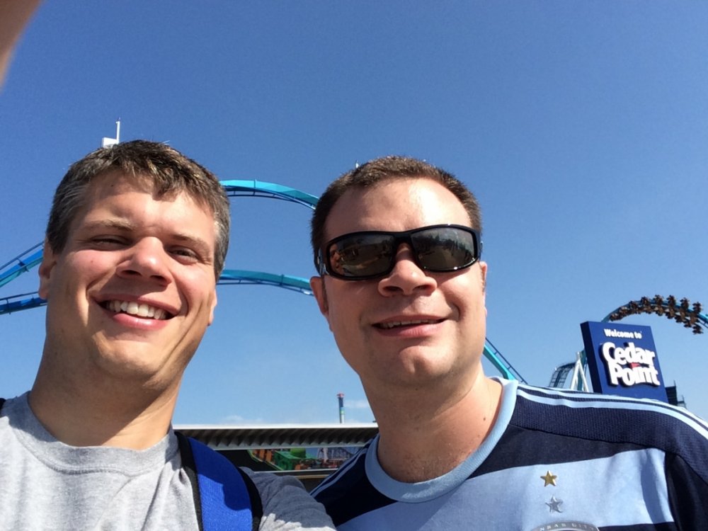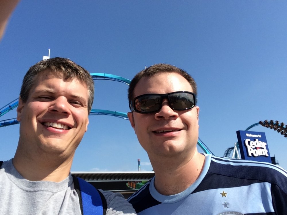 23. Part 1: First off, a little about me. I have always been a huge coaster enthusiast. Literally. At my heaviest weight, I topped off between 350 and 360 lbs on my 6’3” frame. This semi-photo trip report from my VIP Tour at Cedar Point started 4 years ago. In the summer of 2010, my family went to Cedar Point as part of our family vacation. It was the first time I had been since 2003, when I had barely been able to fit on Millennium Force, and was unable to fit on Top Thrill Dragster, due to my size. In 2010, I knew that we were going to go to Cedar Point so I decided I would try to lose some weight with hopes to ride all of the coasters at CP and dropped from around 350 to 315. It was the least I had weighed in many years, and I was hopeful that I would get to ride Millennium Force again and ride Maverick and TTD for the first time. Near the beginning of the day, I sat down in the test seat at MF with cautious optimism and tried to buckle the seat belt...it was not anywhere close to buckling. Though I was not surprised, I was devastated. That day I did not even try to sit in TTD’s seat, however, I was able to fit into Maverick’s restraints and was very excited to be able to ride the newest coaster at Cedar Point. While in line for Maverick with my brother and his wife, my brother asked me what weight I thought that I would have to get down to, in order to ride all of the coasters at Cedar Point. I estimated that I would have to get down to 250 pounds to be small enough to get on all of the coasters in the park. After my answer, my brother somewhat flippantly said, “well...if you get down to 250 lbs and I’m employed (he was in law school at the time), I will bring you back here and we will do a VIP tour.” At the time, getting down to 250 lbs seemed like an impossible feat to both of us, which I’m pretty sure is why he said it in the first place. My brother (on the right) and I (on the left in the blue) watching his son on a ride at Cedar Point in 2010. Another picture of me at Cedar Point in 2010 with my nephew on my shoulders. One more picture from our 2010 Cedar Point trip. Fast forward to May of 2013. I weighed 340 pounds. I decided that on May 6th, I would start cataloguing and counting calories using MyFitnessPal in effort to start losing weight. I ended up having great success and the pounds started to melt away. I hit a huge milestone when I went to Fright Fest at Six Flags Great America in October of 2013. I weighed 275 pounds and was able to ride all of the coasters in the park with a little push here and there from the ride operators. It was at that point that I realized that I was going to get to 250 pounds and started to put out some feelers on whether my brother’s VIP Tour offer was legitimate. Turns out it was. By Christmas of 2013, I had achieved my original goal weight of 250 pounds and still continue to lose weight and I am getting close to my ultimate goal weight of 185 pounds. A before and after pic of the first year of my weight loss journey. Earlier this summer, my brother and I started to plan our trip. We wanted our VIP tour to be on a Saturday during peak season, partly because of both of our schedules so we would not have to take off much work; plus we wanted to get the most “value” out of the VIP tour and go when the lines would be long. In my opinion, a VIP tour sounds much more appealing when the lines are an hour or two than when the lines are under 30 minutes. Eventually we decided on July 26th and started hoping for good weather. As time went on and we planned more and more, the more we got excited about the trip. As soon as July 26th was 10 days away, I started obsessing over the weather. The worst thing I could imagine is spending a lot of money on a VIP tour and having it rain all day making the rides inert. When the forecast first became available, the forecast looked optimistic, but as the date got closer, the forecast became much more ominous. I eventually became so obsessed with the weather that I downloaded 3 apps on my phone and checked them incessantly, comparing them and trying to figure out if we would be ok, or if our day would be ruined. July 25th came and my brother and his son flew from Kansas to Chicago, where I live. Our parents joined us for a quick trip to Great America so he could ride Goliath and experience his first Flyer and Wing coaster. The weather held out for that day and we had a great time, but the weather was still looking poor for the 26th. At that point, though, there was nothing we could do except hope for the best. We left Great America around 6, got dinner and headed to Sandusky. We arrived in Sandusky around 1:30 EST and tried to get to sleep…As you can imagine, sleep was difficult to come by. I think my brother and I ended up getting about 3 hours of restless sleep, burdened by the anticipation for the day. When we woke up, there was evidence of rain on the cars in the hotel parking lot, but the sky was bright and cloudless...I was beginning to be optimistic that all of the weather reports were being pessimistic and the weather would not affect us too much throughout the day. My brother and his son before their first ride on Goliath at Great America My nephew and I after our ride on Goliath. After a quick breakfast we were off to the park to meet up with other enthusiasts for the Millennium Walkback, to open the park with early entry and get the first ride of the day on Millennium Force. On our short drive to the park, my brother read a tweet from Tony Clark reminding people about the walk back. We were stoked. We got to the park around 8:30 and parked in the Preferred Lot at the front of the lot, thanks to our VIP tour passes. As we pulled up, we noticed that there were people on Raptor, which was odd, but didn’t think too much of it. We walked back to the Marina Gate and waited with a handful of coaster enthusiasts ready to start our day. While we were waiting there, we noticed that there wer