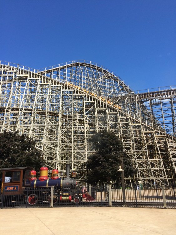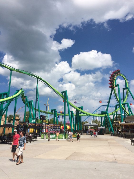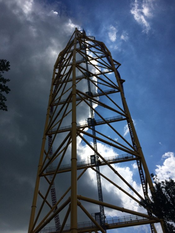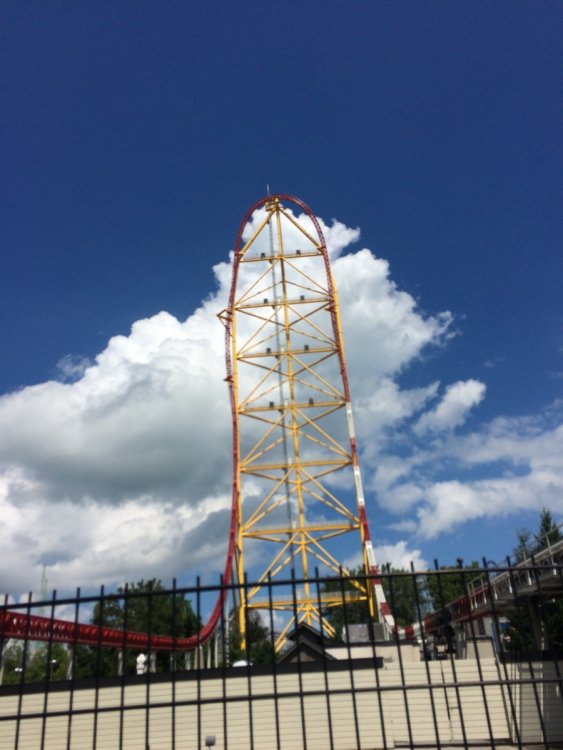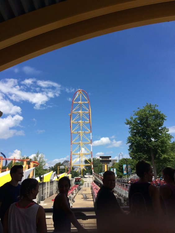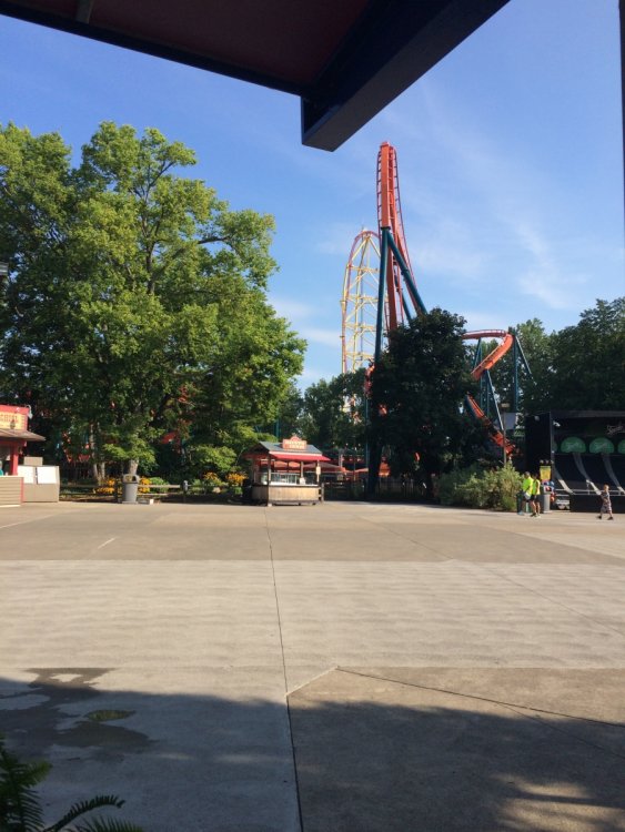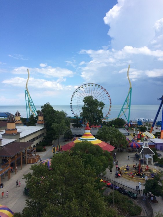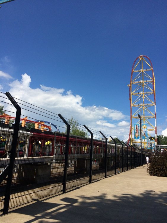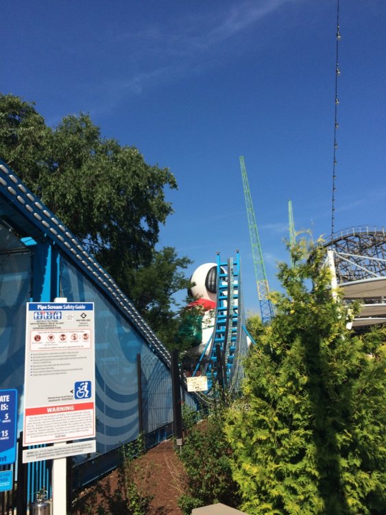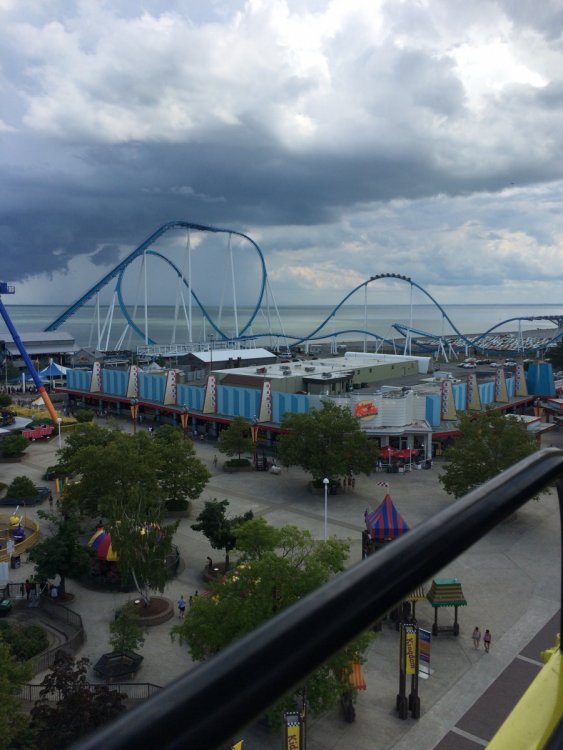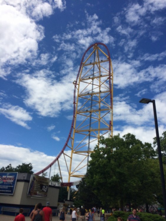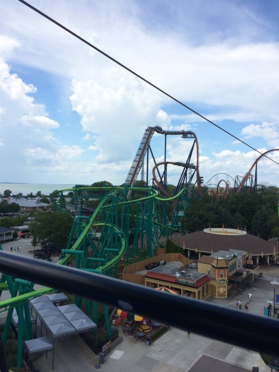 What brought me to the town hall? What could possibly be more important than a replica of Mean Streak? Anyone who cares to follow this trip report will find out RIGHT NOW!!! Am I a credit whore yet? Hold on Wilderness Run, Mean Streak is here It's such a beautiful structure Second to back row and it was very tolerable Dare I say 7/10? Now walking to Gemini Possibly the most underrated coaster in existence. Just don't get a wheel seat. Do I see a Wilderness Run? Now watch how many pictures I take of Top Thrill Dragster I have never seen the park this empty. Dragster was no more than 30 minutes Another one Some people were waiting for the front so we hit up Power Tower. More Top Thrill Dragster There's a train so it's a new picture We're not going to Valravn, but a ride much better. Any guesses? Wait how long has that second structure been there? And it is... Sky Ride! I haven't been on this since 2010 Excellent views. Not as good as Space Spiral. #rebuildspacespiral -