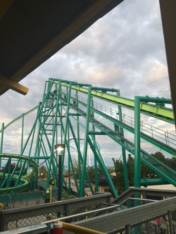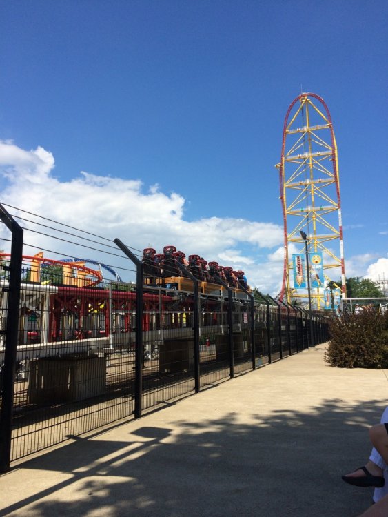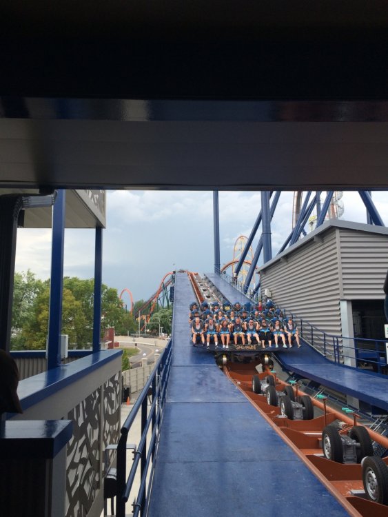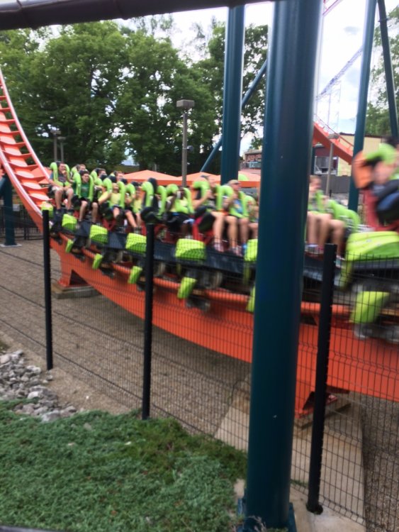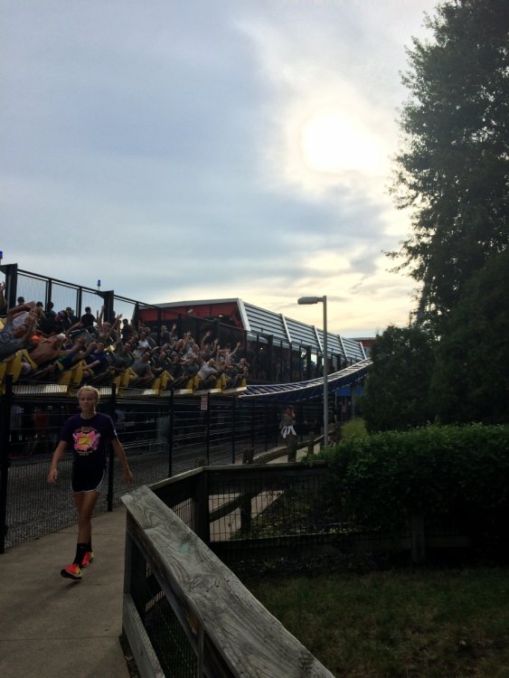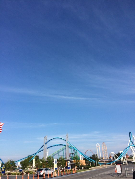 New day so NEW PICTURES!!! More Top Thrill Dragster Even more Magnum time! Car 1 row 3 and a tightened seat belt. They aren't lying! And now we go to MaxAir Just kidding it broke so here's GateKeeper These pictures take a long time to upload. I consider this empty for Millennium Force This is where we stopped. And we were in the station in no time So many empty rows. It makes me sad but also happy because less waiting for me. We either waited for someone who decided to wait for the front or waited for someone who was waiting for the ride to be fixed. I forget Did we do Valravn? No we left the park to get food. You're a grand old flag, You're a high flying flag And forever in peace may you wave. You're the emblem of The land I love. The home of the free and the brave. Ev'ry heart beats true 'neath the Red, White and Blue, Where there's never a boast or brag. Should auld acquaintance be forgot, Keep your eye on the grand old flag. And we're back! Starting off the night with Cedar Downs I think now's a good time to use those passes. Y'all remembered about those passes, right? Only two people in my group wanted to do the small coasters but half of the group was indifferent. Still, the rest weren't too happy And here's my 150. There was another coaster that I said was my 150 including powered coasters. I think I said it was Ravine Flyer 3 but I found an error in my math. Valravn was 150 with, Woodstock's Express was 150 without. -
