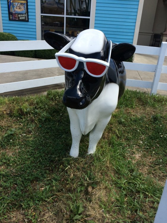 The park hasn't changed either so HERE'S MORE PICTURES FROM CEDAR POINT! What's the point of this cow? On to GateKeeper Then Wicked Twister We all got 'I'm Celebrating At Cedar Point!' pins and someone's fell off They got those pins because I got one last year and they are all apparently jealous I'll never part with that pin Raptor's line was so empty we got to wait for the front Valravn is a great addition to the CP Skyline I think I took this picture because I donated 10 cents Blue Streak! That's enough Blue Streak Raptor's new paint job If Raptor's vibrant green wasn't next door this color would be fine I don't have much to say about Valravn But I do have things to say about Raptor And there's a Rougarou! Some people say Rougarou is a really bad ride I doubt they've been on Mantis Rougarou is such an improvement Iron Dragon <3 And this post ends with Rougarou. If I try do you think I can get the GP to think it valleyed in this picture? -