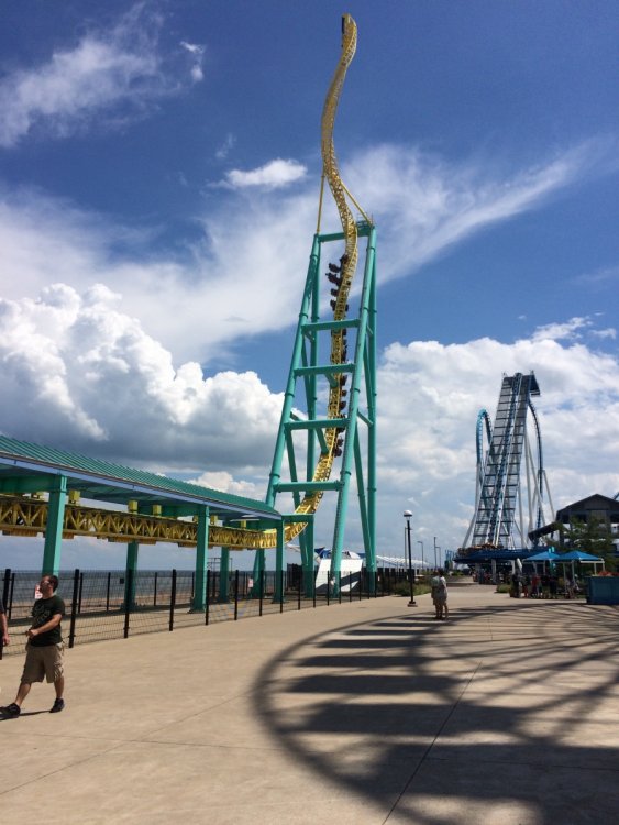 That's a sadistic policy when you have Mean Streak Fixed All of my rides on Mean Streak have been in the back car and only one of them beat me up, and that was because I was stupid enough to think the headrest would rest my head. DID SOMEONE SAY PICTURE??? Empty station for Mine Ride I forget what this is Making captions for 500 pictures is hard AND DAY 2 BEGINS!! Walking to the marina gate once again This time Millennium Force didn't break as we were waiting But it did break when my train was on the brake run That was my first time getting the first train of the day on MF and the first time having a ride break on me I think It's very photogenic Wait no it's not just the lift hill. Credit? Credit! Empty Corkscrew Short lines aren't always good Despite the devoted following, my group didn't make it onto Iron Dragon on Day 1 I wonder what ride we could be in line for Not the Ferris Wheel TROIKA Troika troika I'm in!! Now we get on it We're so devoted to Iron Dragon we were all allowed to wait for the front I promised to paparazzi Iron Dragon And this segment of #TCT2016 ends on dots -