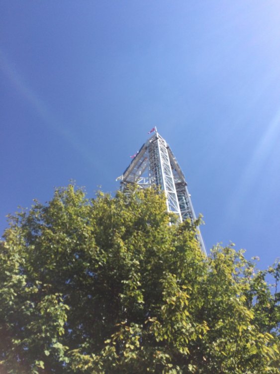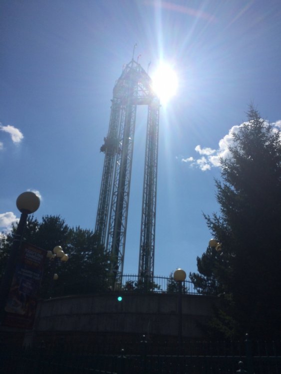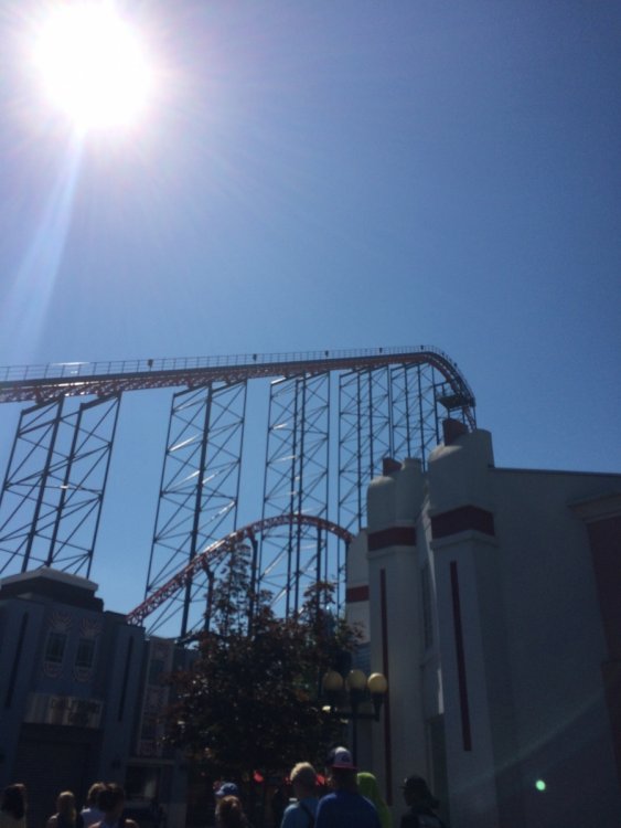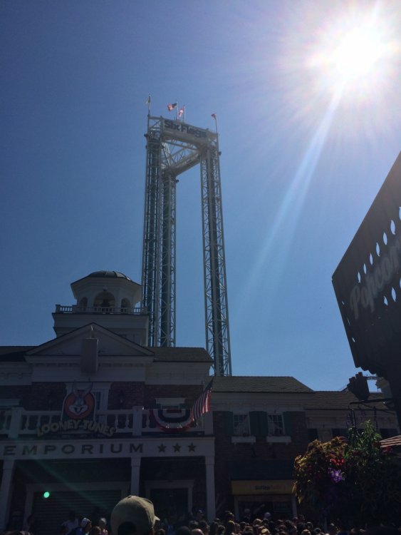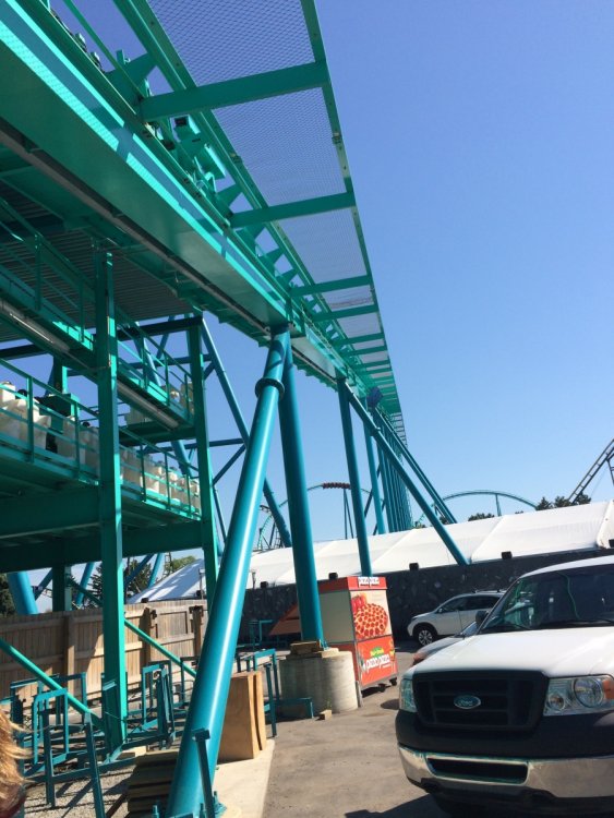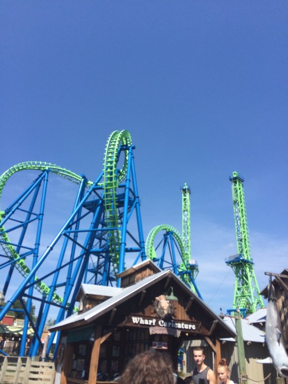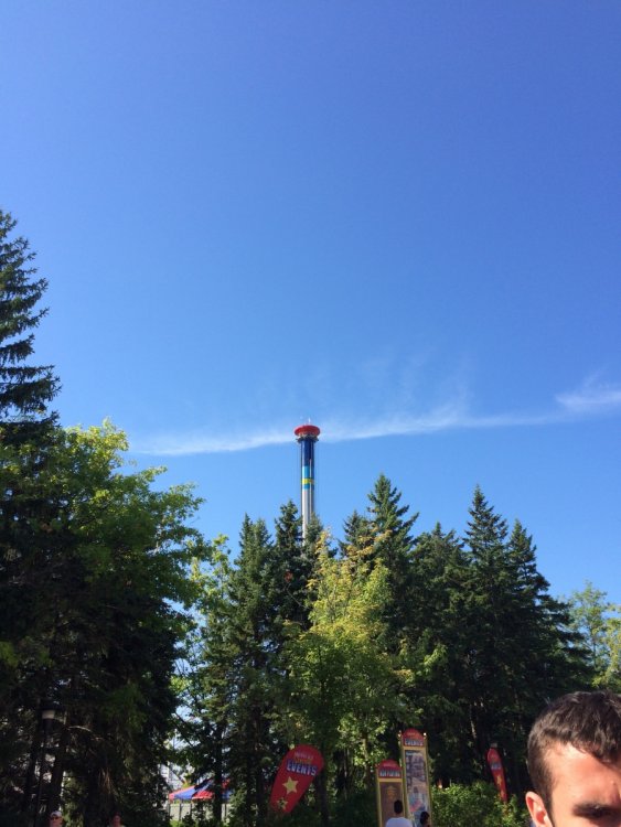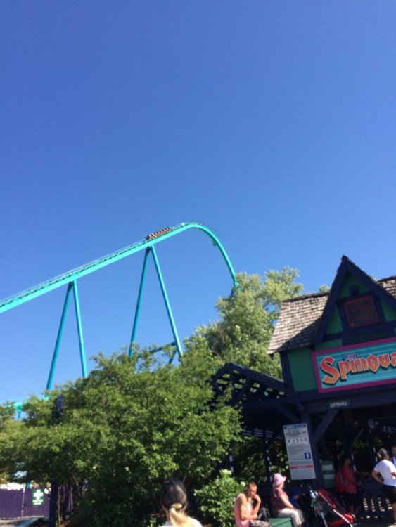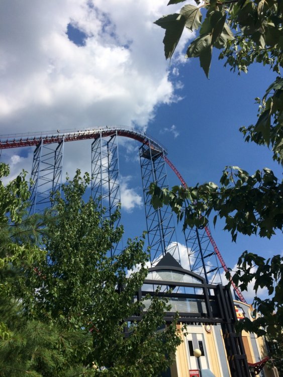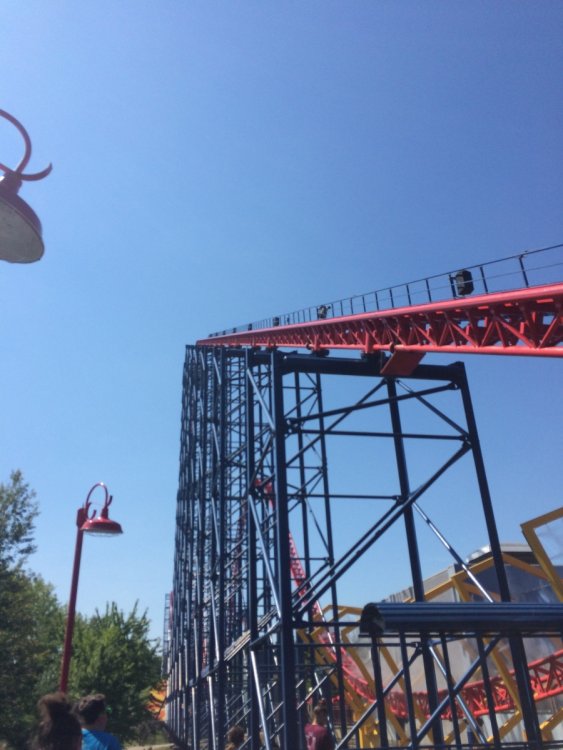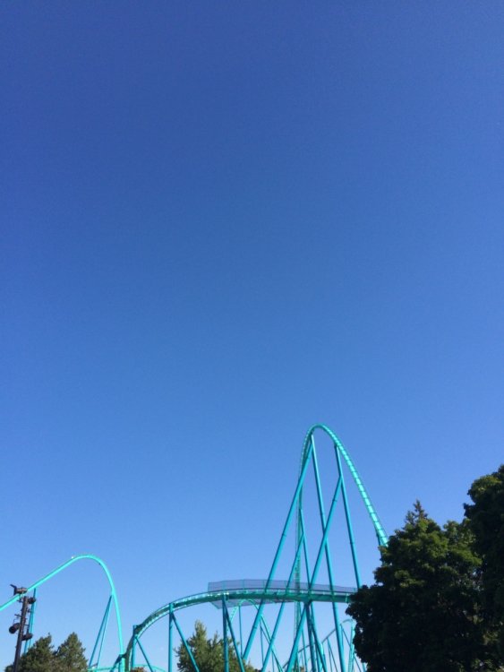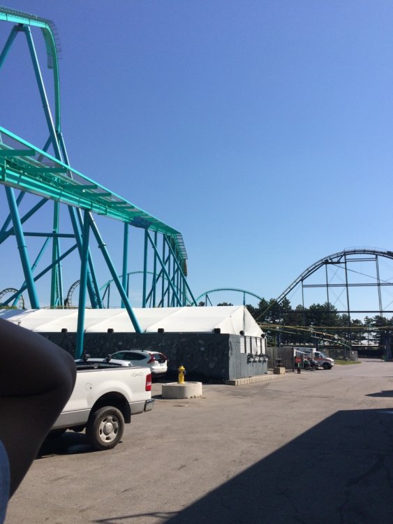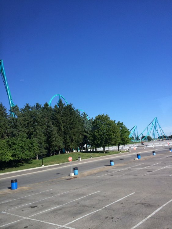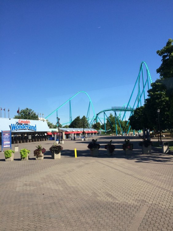 And so Canada's Wonderland begins. After Lake Compounce, there were two days where we didn't go to any parks. On the first day, we crossed the border into Canada and spent the day in Niagara Falls. For some reason, rivers going over a cliff attracts a lot of people, so we saw some falling water. On the second day, we drove to Toronto and saw a Blue Jays game. Since I only agreed to roller coasters, I'll pretend those days never happened and move on to Canada's Wonderland. If enough people want to see a non-coaster trip report, I might make one. Here's proof I was in the city What's this? It's Leviathan! After this I would have ridden every North American giga coaster Anyone wanna take me to Japan for Steel Dragon 2000? Oh yeah we had a backstage tour of WMG and Leviathan I feel as if I have become one with the coaster and I think that's what CW wants to happen Train closeup Train closeup So many people took pictures of themselves inside of the track Look! A curve! I don't think he was pointing at the turn Then we got to ride it I see a Windseeker Walking over to Leviathan It's like Fury 325 but 20 feet smaller and no yellow Closeup of the brake run I think this is a restricted area But we were allowed in #whatsintheshed Dragon Fire looks so small If it moves I'll take a picture of it It would be a tall thing but Leviathan is right there. -
