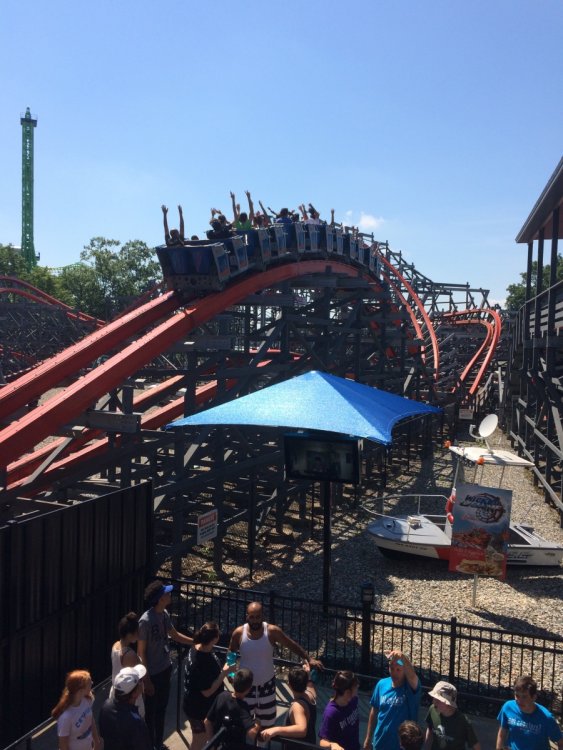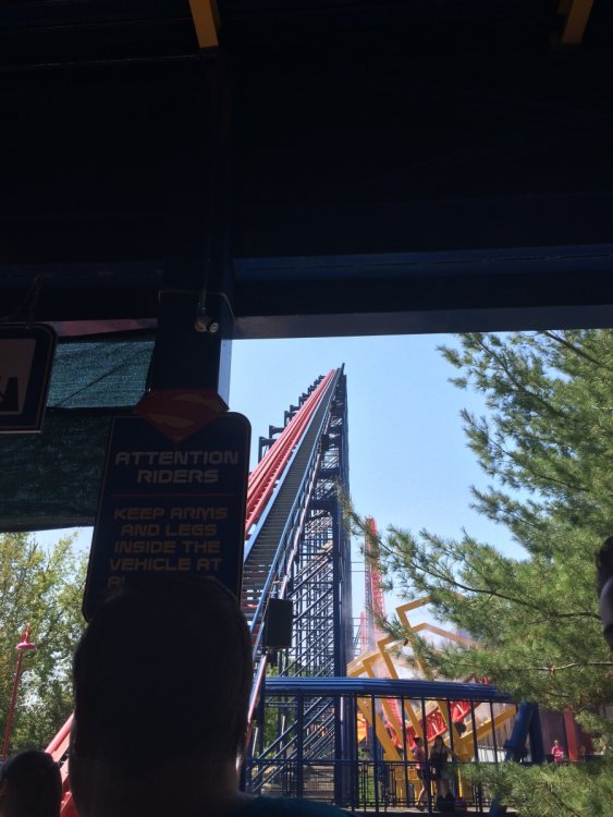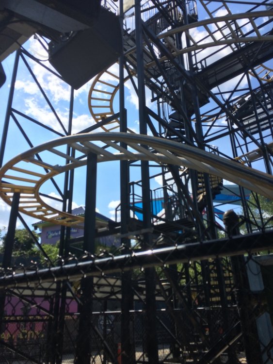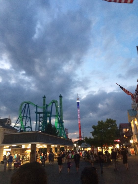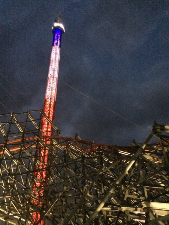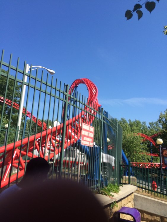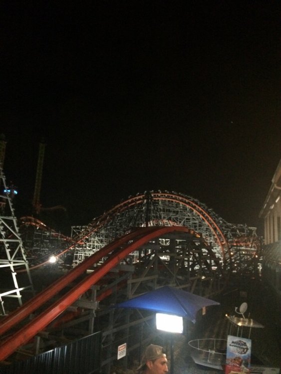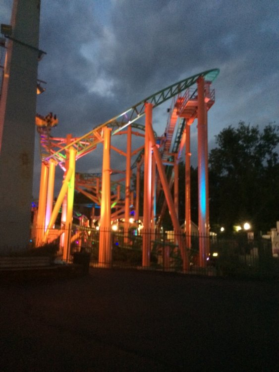 I forget if we rode this at night or not. Wicked Cyclone again but this time at night It's twisty Guys look at this original picture. It's night so it's completely new. Skyscreamer at night It's running so its a completely new picture Passing the missed credit Another missed credit but from what I've heard I shouldn't care so I don't We got last train on Superman And so the SFNE pictures end. And now the pictures are done so here's my reviews. Superman: I didn't get to try it with VR, but it was fine without it. My first ride was in the first row of the second car, and the second was somewhere near the back. The airtime was excellent both times. It definitely makes my top 10, probably in the lower 5. Wicked Cyclone: I was rather excited to get on my first RMC. The reviews I've heard fall just short of RMC curing cancer. I'll take the risk of getting lynched and say I wasn't as impressed as I thought I would be. I wasn't disappointed, just slightly underwhelmed. Mind Eraser: Never again Batman: I was very impressed with this ride. I'm not sure if anyone ever says it's rattly, but I'll say that it was not at all rattly. It was intense throughout the whole ride. All of that on a track roughly the same length as Top Thrill Dragster. Catwoman's Whip: Better than Mind Eraser. Gotham City Gauntlet: It's a wild mouse. I don't know of any good things to say other than it's better than Mind Eraser, but so is Green Lantern at SFGAdv. Yes it's that bad Thunderbolt: For a 75 year old roller coaster, Thunderbolt wasn't bad at all. I remember 75 years because the park put signs up everywhere. I would have used coasterbill's advice and taken front row, but the operations at the park are weird so I settled for a middle row, something I also learned from coasterbill. My overall opinion of the park is mixed. The rides were good and the park had a nice atmosphere. However, the operations aren't the best. It's like the park didn't want to assign seats but still wanted to make operations memorable for being bad. If there wasn't a Knoebels or SFGAdv closer to me, I'd go back any day. Up next: Lake Compounce -