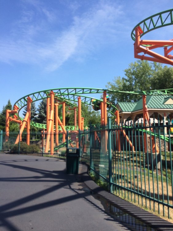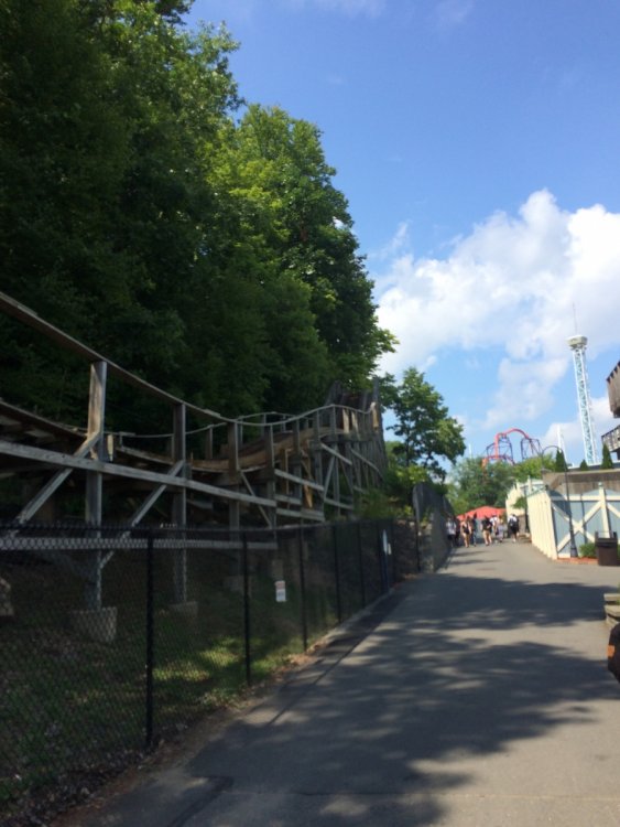 And just like that here's the final pictures from Lake Compounce In for another ride on Boulder Dash This thread is lonely Boulder Dash is like Beast but with faster pacing and a very painful ending. Anyone there I felt obligated to take a picture of every Dippin' Dots stand I saw Is anyone here Aaand the flyers. #1 ride in the park anyone I snapped on the flyers but is anyone reading this thread to know? I think this was in line for the spinning ride down below A pirate ship ride with very little airtime. Nothing happens on this ride. It goes up and down, but nothing else noteworthy Phore Phobia Phear Phoaster then there's Wildcat Leaving the park and we encounter an overpass Temporarily leaving the park And we're back in the park It's getting dark We originally planned to end on Boulder Dash But I was in pain so I ended on Downtime I think that's what the drop tower is called I'd definitely come back here Review time Boulder Dash: I don't exactly agree with the Golden Ticket Awards. Phoenix was voted lower than this. I say the GTA is rigged. Boulder Dash was a great ride until the double up near the end kills any fun you would have been having. I tried to brace myself and I rode in many spots all over the train. If the double up was given the ax then I'd love this ride. Skyliner at Lakemont Park could use a double up. Phobia Phear Coaster: Too many ph's. Other than the name, it was an excellent ride. More enjoyable than Tenpasta. There's definitely a difference between the lap bars and whatever BGW calls the over the shoulder restraints. Flyers: I snapped on them. I am so proud of myself. I'm even more proud that Lake Compounce will teach you how to snap. On my very first ride, I was going up and down and up and down and up and down and up and down and BAM I snapped. It was so amazing if you snapped on these and got an erection I wouldn't blame you. Best ride in the park easily. Wildcat: I've been on worse. I didn't get front seat but I did get second row which is a middle row. There's a turn with little to no banking after the first turnaround that's bad in non wheel seats and kills the erection you got from the flyers in wheel seats. Yes I rode Wildcat multiple times. I forget what park is next so keep watching this thread to find out. somebody please -