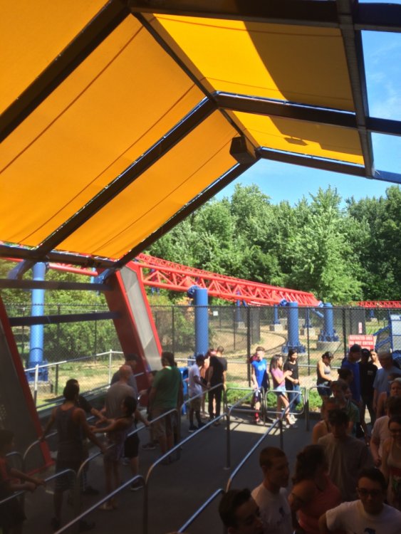 If you saw my previous ThrillCoaster Tours trip reports, you know what to expect, except different pictures from different parks with different captions. In other words, something completely different but with two words in the title being the same. I don't recall doing in depth reviews of roller coasters, so I'll throw in some of those as well. All of this while I try to fit in more Quote of the Week content than my Lakemont Park trip report. Day 1: Six Flags New England The morning begins. As does the driving. Im pretty sure I saw this construction last year. Bridge About two hours into the drive, civilization appears! Who knew you'd find people this far north. The tallest thing in far north Pennsylvania is a tree and here there's a building! Walking to our first destination. Six Flags New England! Walking from the entrance to Superman is quite a work out I like taking pictures of large things. It's a good picture until I got in my own way. If you say 'dots' anywhere near the TCT squad everyone will go crazy. We're here! No paint job will ever beat the vibrancy of Impulse's blue. The operations here make me sad. I got second row... I think. The ending is like a less intense but comfortable Skyrush. This park has a pretty strong trash can game. Another picture of a large thing. More SFNE to come