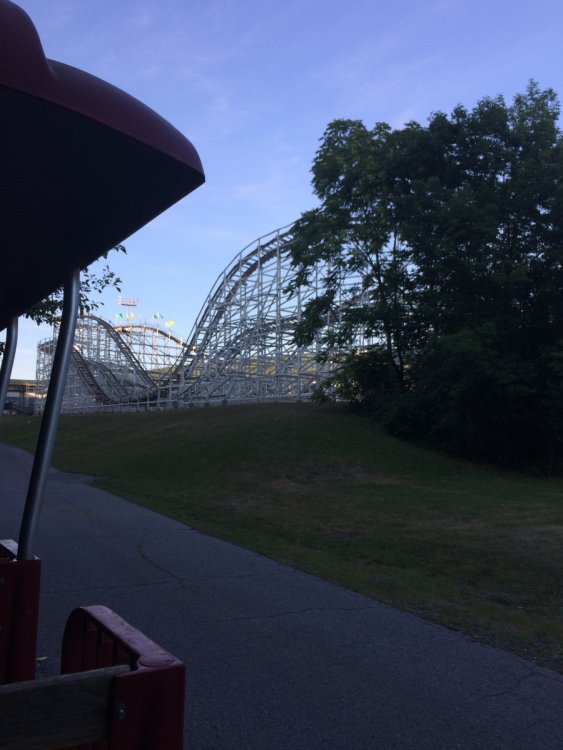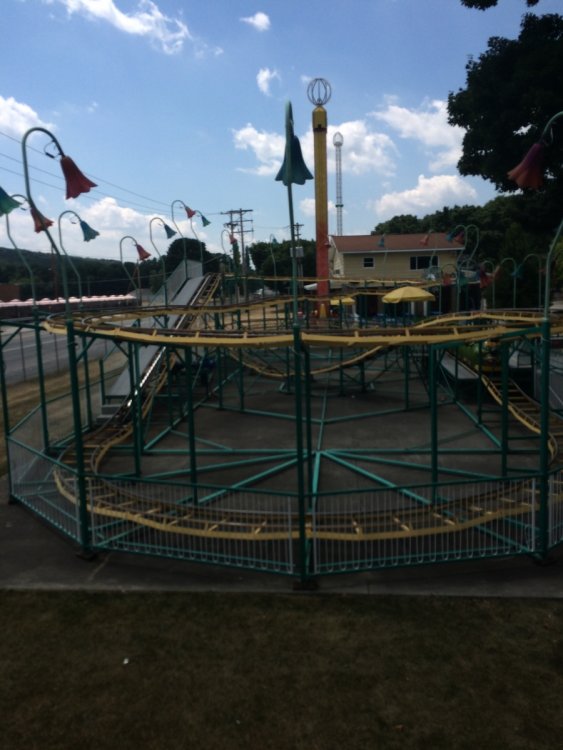 With that being said, here comes Lakemont Park. When I first visited the park in 2014, I was on and off Leap the Dips and Skyliner. Skyliner is a very nice wooden roller coaster. As for Leap the Dips, I've been on rougher rides. The flat ride collection is also fairly decent, but Delgrosso's has them beat. If you're wondering why I'm saying good things so far, here you go. The park seems to be perpetually empty. If a murder were committed in the park, nobody would know until/unless select TPR members decide to go there. I said that Skyliner was a good wooden roller coaster, and it would have been even better if it was open during my visit . Half of the flat rides, were also closed with little to no signs of ever operating. The only credit I had left for the area was open, but it had a '12 and under' policy and the operators didn't let me ride. The scrambler ran awfully slow and it's neighbor (pictured) never ran once. I don't know if it was because it was closed or because nobody went to it. Toboggan was open But why would you ride Toboggan This ride is strange. And not interesting. Only credit I needed and they wouldn't let me ride Skydiver was closed, luckily. The swing ride was open and had a very long ride cycle. On the train seeing what I could have ridden. Shut up Skyliner, I bet you aren't even that good of a ride. One last picture on the miracle walk. Oops, I meant the walk out of the park. Even if you're in Altoona, I wouldn't recommend this park. The only reason you should ever go to Lakemont Park is if you're already in Lakemont Park. There is a baseball stadium right next to the park. Even if there isn't a game going on, waiting for a game to start is a better use of your time. Just go to Knoebels.