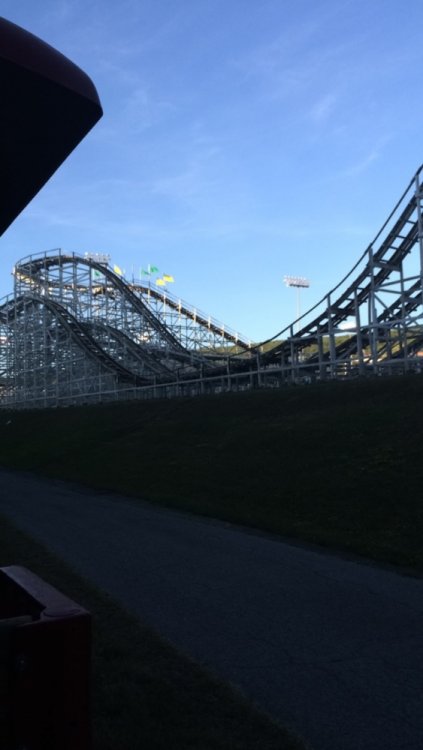 The Altoona area has two parks that are close enough and have little enough rides for you to do both in just a few hours. That doesn't mean you should, as I believe nobody should ever have to say they went to Lakemont Park. If I were to use coasterbill's ride ranking list of SFGAdv, I'd place it around root canal. still above Green Lantern Delgrosso's is a great park in comparison. Here it is: Besides the bush, you get a great view driving on I-99 What a difference it makes when there isn't a bush There are also plenty of wind turbines lining the mountains. They're not that easy to see in the picture but they're very pretty when you're there. And just like that... ...civilization appears! And just like that it's gone. Arriving in the parking lot at Delgrosso's. It has a very Knoebels-like feel apart from the street running through it. Water park on the left, amusement park on the right. After riding drop towers at KI, KD, BGW, and Carowinds last year, nothing beats this guy. After riding roller coasters at KI, KD, BGW, and Carowinds last year, a lot beats this guy. There's a decent amount of rides at this park considering its size. This was running slower than I expected. This was the only new credit of the day and I am not at all ashamed. Going up the ramp onto the bridge I wonder if Knoebels will build any form of highway through the park to counter Delgrosso's. I wasn't in the water park for long. This park is pretty swell. Too bad I'll be at Lakemont Park in a few hours. So many flat rides here. The ride operators are also very happy that they didn't choose to work at Lakemont Park. These pictures may be misleading. I rode the drop tower once for every flat ride this park has. Rockstar, the newest flat ride, in motion. More to come