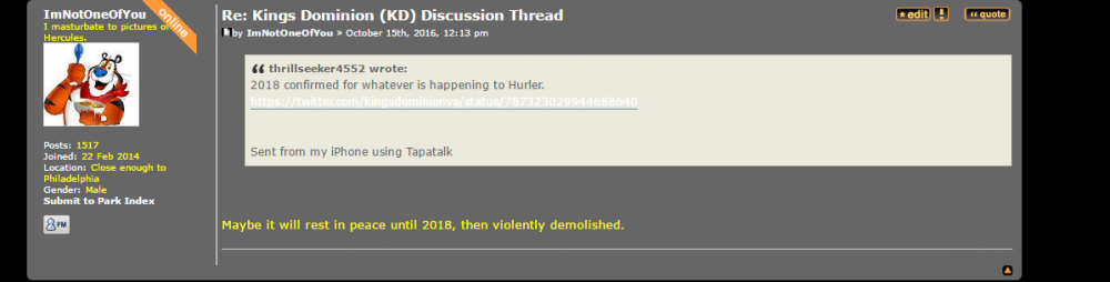 ImNotOneOfYou replied to robbalvey's topic in Theme Parks, Roller Coasters, & Donkeys!
