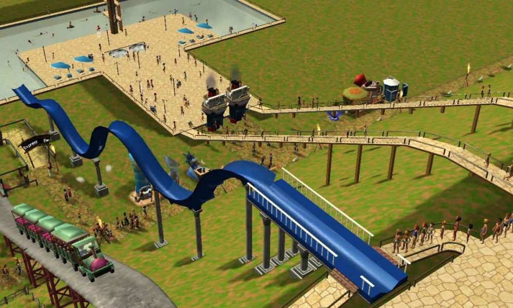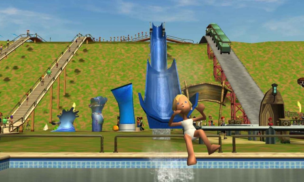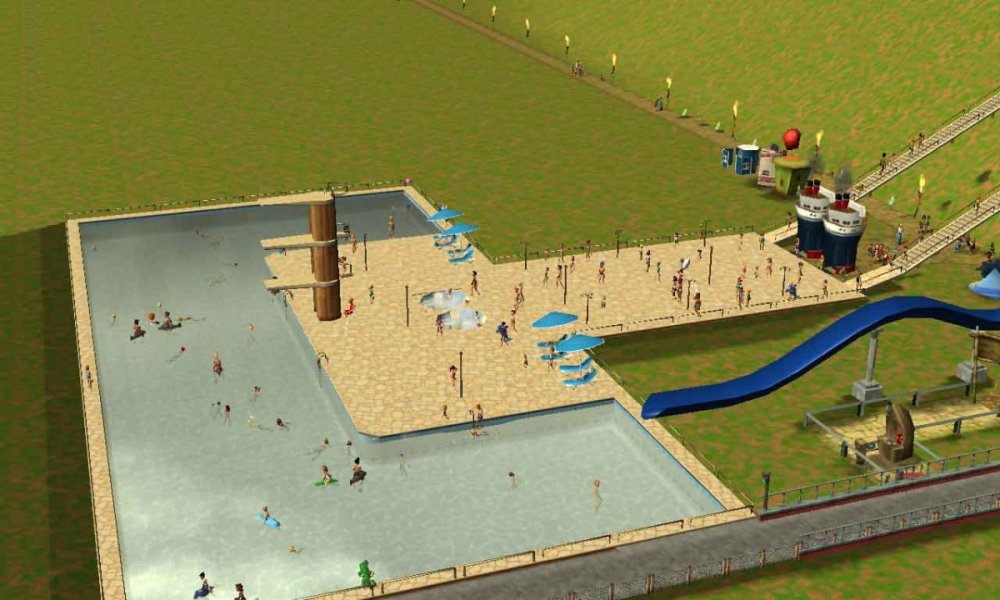 Before I begin this park, I must give HUGE credit to RCTgo user Stillnix, who made this scenario. I will be using their park, but everything else is completely original. The link to the scenario pack in which this park came from is here: https://rctgo.com/downloads/view/7513 1993 Hi, my name is Maxwell Spades. I am a single father and blogger, who writes entries for the local newspaper. In my hometown of Carthage, MS, the local Mississippi Plains Pool Center has been purchased by an investor, who plans to turn it into a theme park. Me and my son, Rowan. The park's entrance. Currently, this place is pretty empty. The main pool area. And here's the (at the moment) crown jewel, FloRider! It's your basic waterslide, but the GP seems to love it. I feel so bad for this girl. That must have been horrible! There is also Swamp Express, a tram ride. Those screenshots showed some of the other tram stops, where more attractions will be built in the future. And also, the park is having a contest, where people can submit in some roller coaster designs and what flat ride types they'd like to see, probably because the park's management is just plain lazy and can't come up with anything themselves, so you can submit some ideas if you'd like. Anyways, that should be about it, so see you again when construction starts! -Max S.