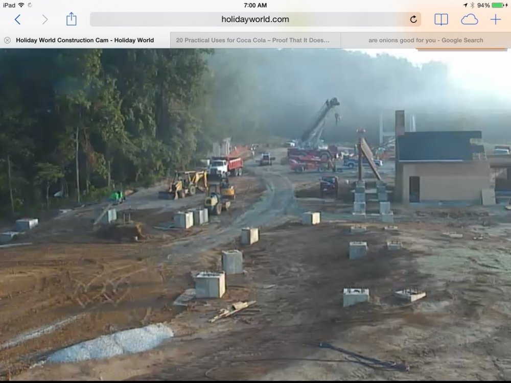 It's really cool watching the construction cam right now. The guys are getting ready for work and it's super foggy, lol. Also it appears as it someone has drawn two hearts in the dirt on the left side! -