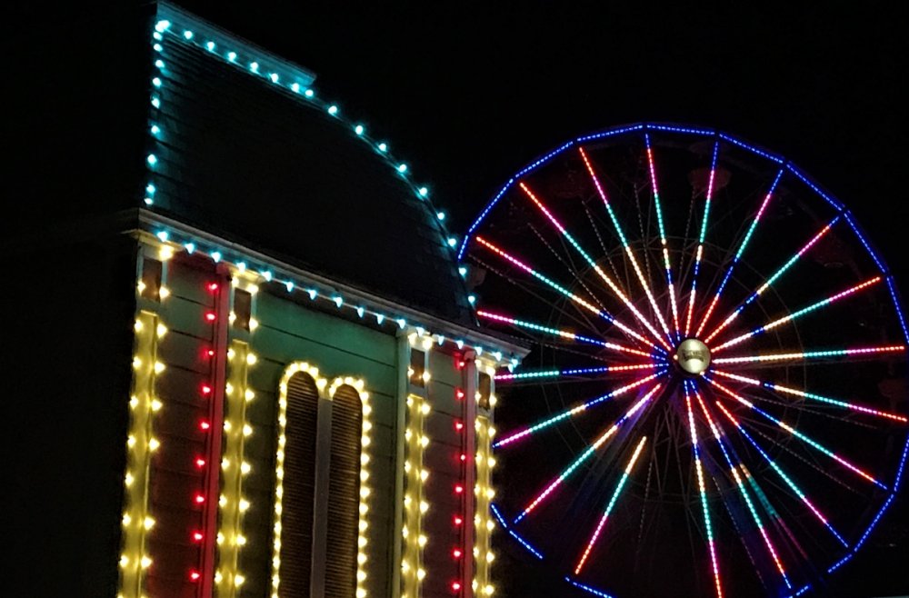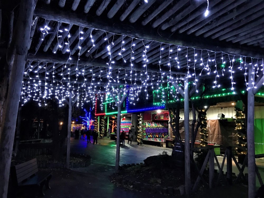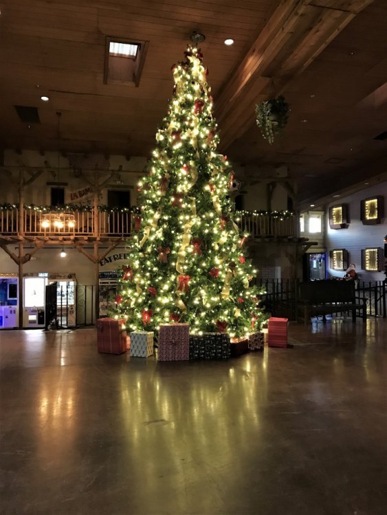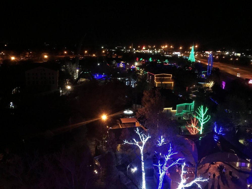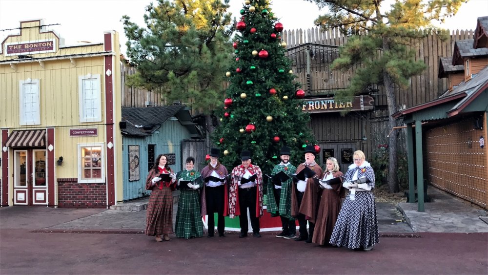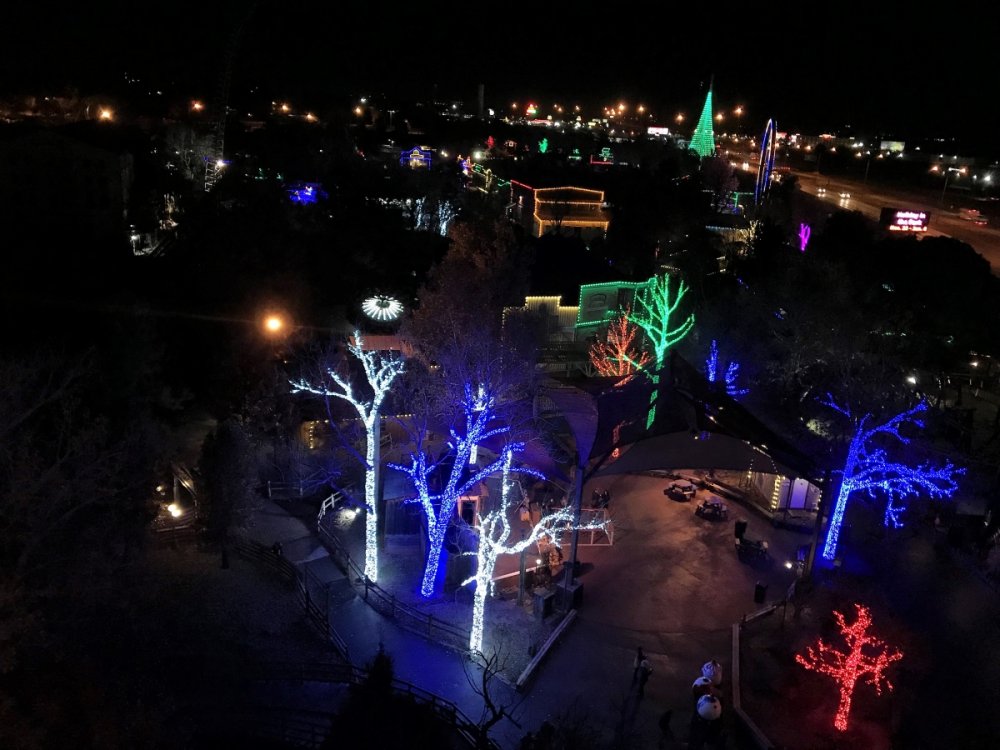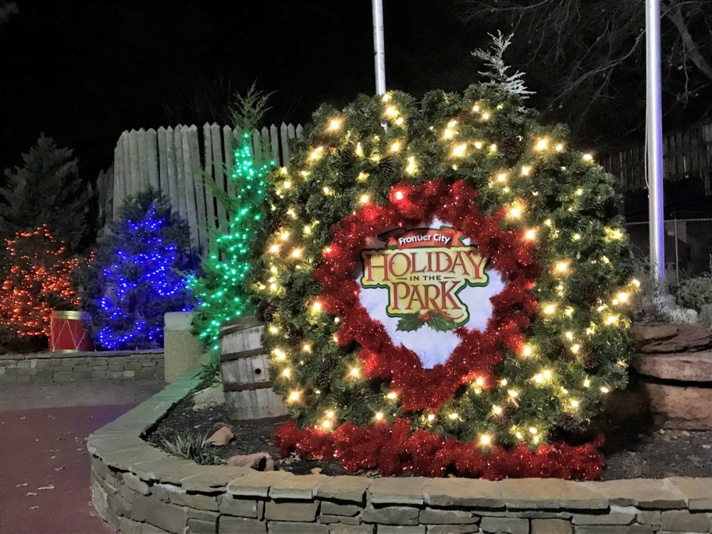 I visited Frontier City for Holiday in the Park last Friday. The park was truly amazing for the parks very first Christmas event. I was surprised how much they had decorated in 3 weeks. They even had some interesting and fun surprise Holiday Easter eggs. Like Quick Draw I would give that Sally shooting dark ride a whirl they cleverly decorated the inside the ride. They did close off their "Renegade Road" which is where you would find Renegade Rapids, Sidewinder, Gunslinger, Go Karts and the Gunfighter stun show. That area has been decorated with lighted scenery's, lighted Archways and a lighted tunnel. They now call the area the North Pole . The Ferris Wheel will take you up and over the park to get sweeping views of all the lights. Soaring Eagle another attraction this will take you over the lighted Main Street and the main Christmas Tree. Another area to get sweeping views of the park Diamondbacks Launch station. The parks has a few shows Magic of Christmas a Christmas themed magic show and Best Time of the Year. Carolers roam the park singing classics. They like it when you join in with them and are very interactive with guests. They like to take selfies with you. Also Main Street is decked out in a Dazzling light shows with snow cannons. The show plays every half hour till the park closes. Kids have a craft area to write Santa a letter and decorate cookies. Of course you can get your photo taken with Santa. Like all Six Flag Parks there is 3 fire pit areas to make s'mores. Your normal Christmas food items Hot Chocolate, Christmas themed Funnel cakes, cookies and bread bowls. Here are some photo I taken when I was at Frontier City for their opening night of Holiday in the Park. -