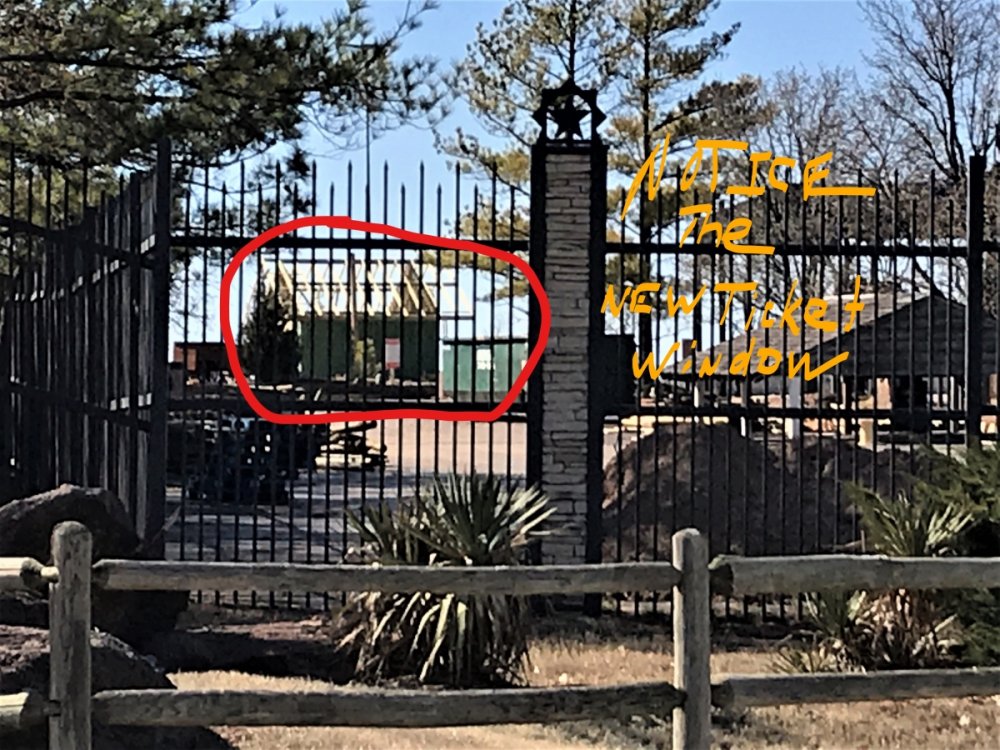 I drove by the park besides the updates I posted about last week I noticed today they have under construction a new Front Ticketing booth. This new booth is about 10 feet forward towards the parking lot. My guesses is they are re-configuring the front so they can fit it in with Six Flags admission protocols. Here is a photo of the new ticketing booth. I took this photo using a I phone from across the property. -
