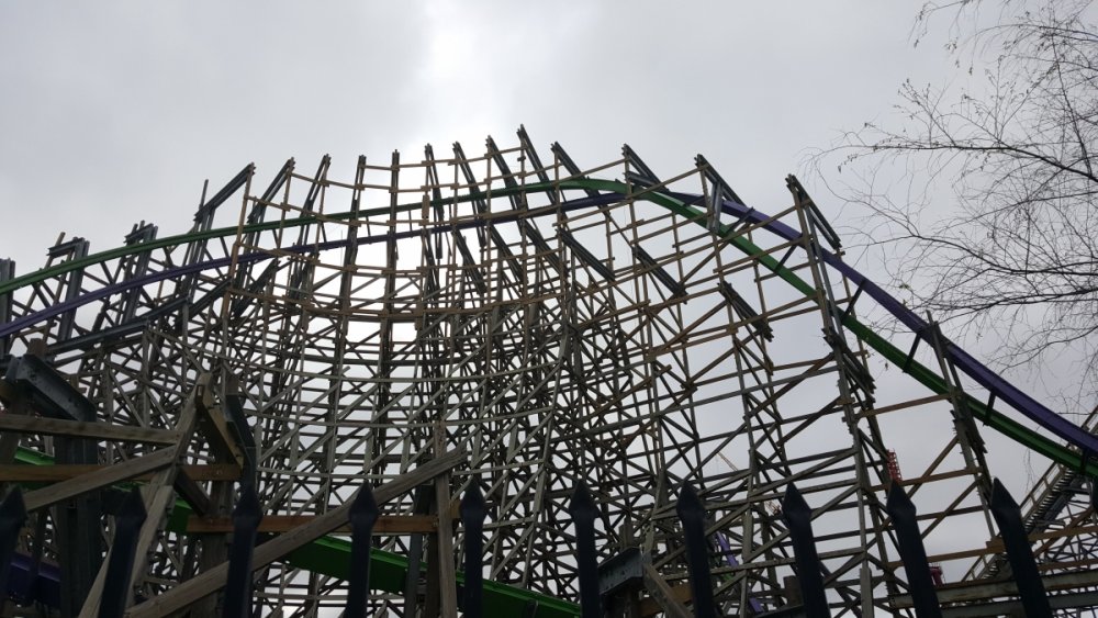 17. Went to the park today! Wasn't all that crowded considering that it was Spring Break. Joker construction is looking amazing! The outward-banked turn leading up to the breaking wave turn looks EPIC and the step-up under-flip (or whatever they're calling that first element) looks insane. The opening can't come fast enough! (although I have no idea when it'll open, exactly.) Here are some photos: The drop is insanely steep, and the laterals will be awesome This element looks crazy