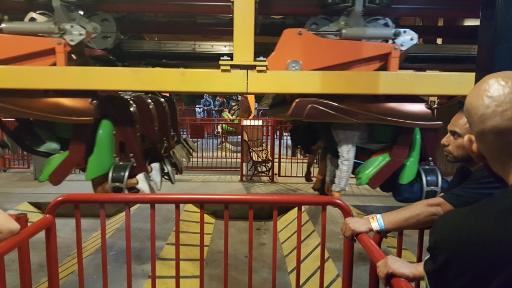 13. Already ridden it twice today, currently in line for a third time. Line is like 45 min to an hour now. And the ride? Amazing. Very different from Twisted Colossus, much more compact and forceful. The inversions are flawless and the airtime is great. In my opinion it's tied with TC (they're the only RMCs I've ridden). Operations are good, 2 trains. Line moves fast.