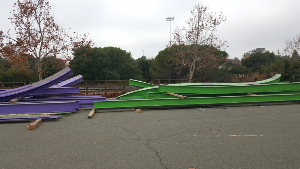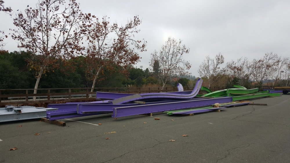 I have some similar pictures. I went to the park yesterday, and it was basically dead. Construction on the Joker looks great, I can't wait! Although most of my pics are similar to the ones above, I'll put some up anyways. As I was there, they were putting the metal crossbar-ledger things on the lift hill. Joker track in the parking lot! Kind of insanely twisted! This is going to be awesome! More Joker track Superman Roar (well, Joker) turnaround lookin' good Joker A cool view of construction Joker lift hill. By the way, V2 was closed all day. And finally, although this is my home park and I visit rather often, I just saw Drench! for the first time. I enjoyed it! On the way in, the gate was open, so you could see into the construction site.