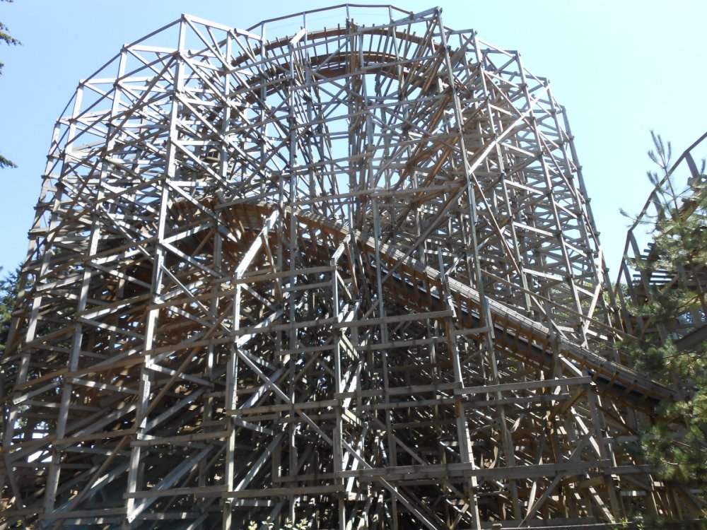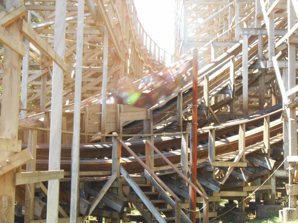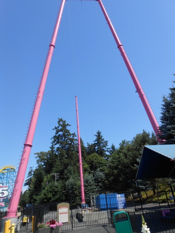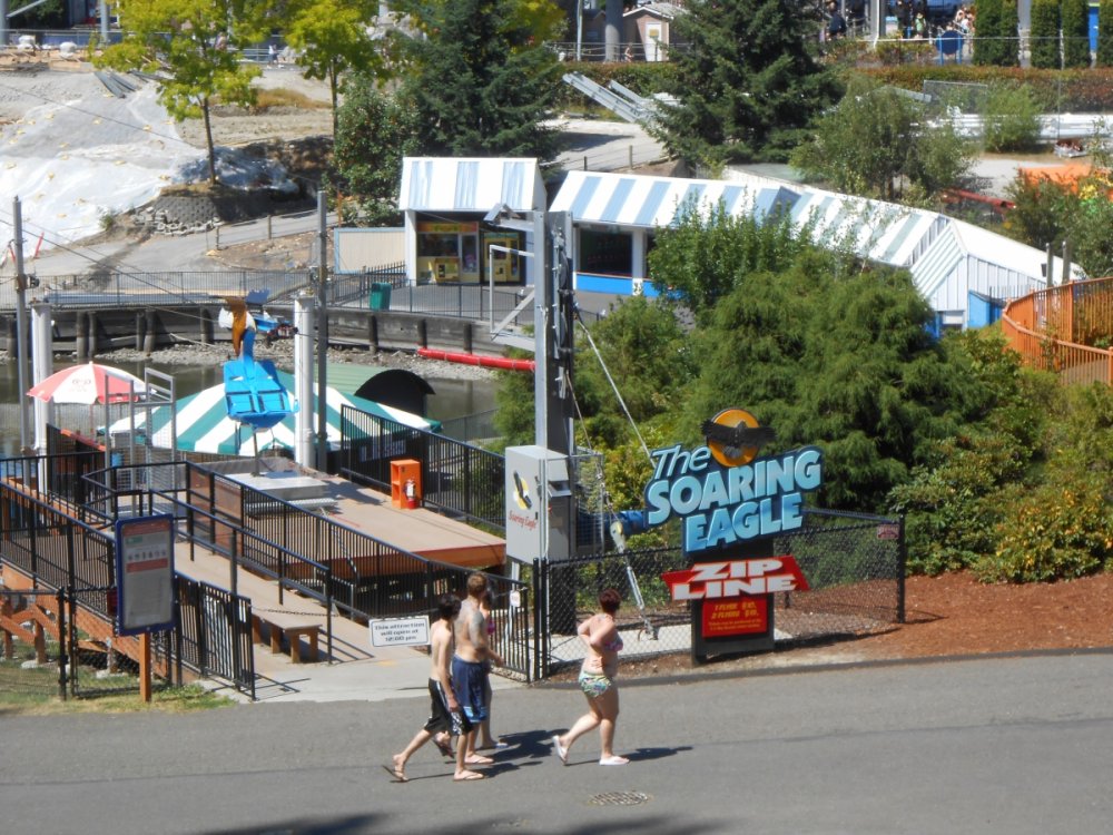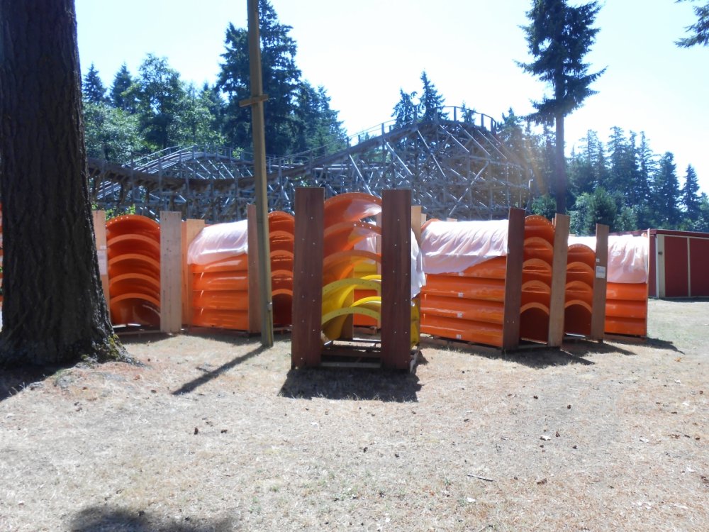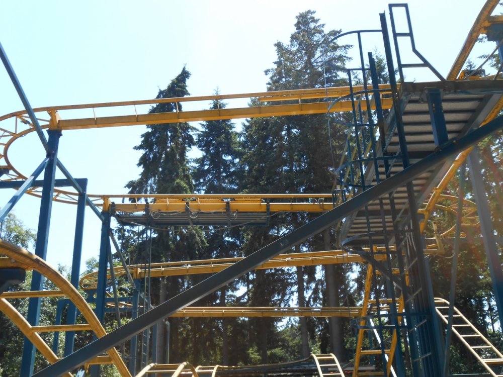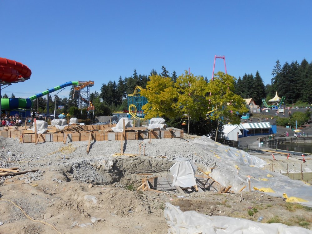 3. Photos part 2: The adult pool area. They've taken down the zip line that you drop from, and have also closed off access to one of the slides. More of the previous picture. 2 slides that let you rocket out of. Talk about an atomic wedgie. My camera is too slow. :C Area of the entrance, and then another water ride just behind. It's a nice lounging ride that spills you into multiple areas, eventually leading you to the end. Final splashdown. This area has always been clear-cut. There's potential for a few rides or even a coaster, but it still lays barren. From the hill looking out to Mud Lake. Higher up on the same hill. And I'm flying hiiiiiigh... Heh heh. Thought this guy was hilarious. Not sure why. CONSTRUCTION PHOTOS! Nerdy stuff, oooh. We got pipes! 3 slides confirmed! Twisty. Confirmed Plants vs Zombies 3! More water slide pieces gather just behind the pirate ship ride. Yeah there's quite a collection over here. Another good view of the plot going on. It's time for Timberhawk Ride of Prey! A decent lift speed, gets you up there in about 10 seconds. Very smooth ride for a woodie. Loading station. View from the blank hill. The loading station is pretty basic. Arms up in the air makes all happy campers. I'm next! Another view of the station. This area here provides a good head chopper illusion. 2 trains run consistently, so the wait time ain't that all terrible. On a real busy day, you wouldn't wait any more than 20 minutes. For those who have a hard on for hard wood structural construction. Timberhawk has always been a photogenic ride. The first drop has got a great roar to it with the forest surrounding the area. PRAISE THE COASTER! Mmm oh yes. Wild Thing! Taking on the first corkscrew. There's a positive and a negative to this ride. Positive: Riders get to go twice in a row. Negative: Only 1 train, thus long line wait time. This coaster recently got a new paint job about 2 years back. Use to be green tracks. THROUGH THE TREES! It really is quite a photogenic ride from a distance. With the new slide open, so has the path extended to get more footage of the backside of Wild Thing. Getting ready for the loop. Scream on past the station! UP-SIDE-DOWN! Nerd shots! This should have a NSFW label. Station shot. A little closer up to the first drop. You do get rather close to the track.