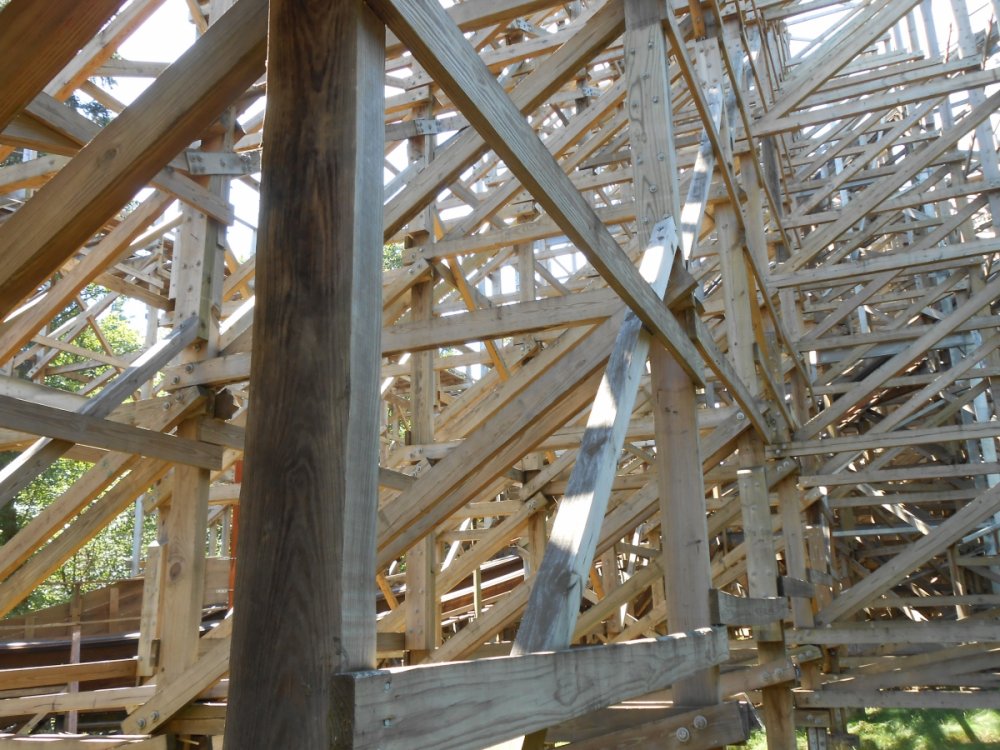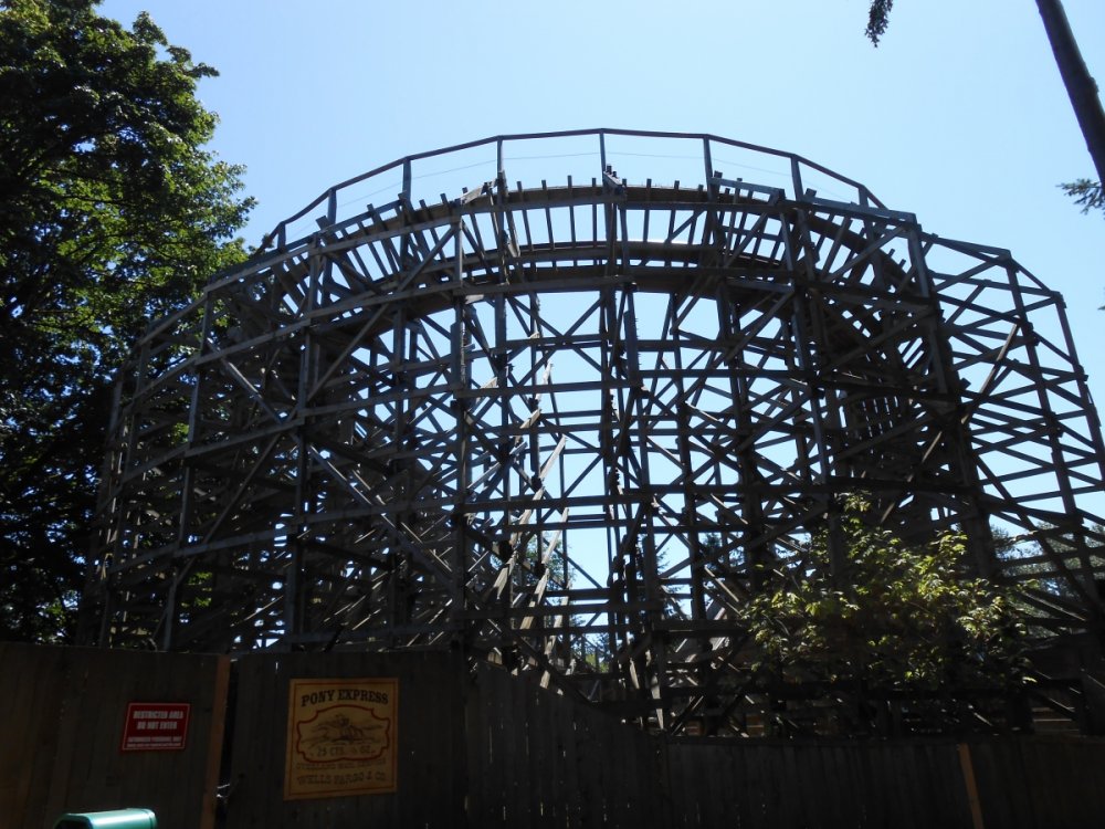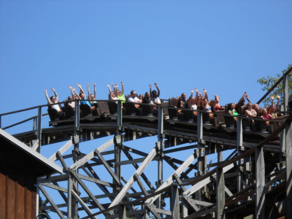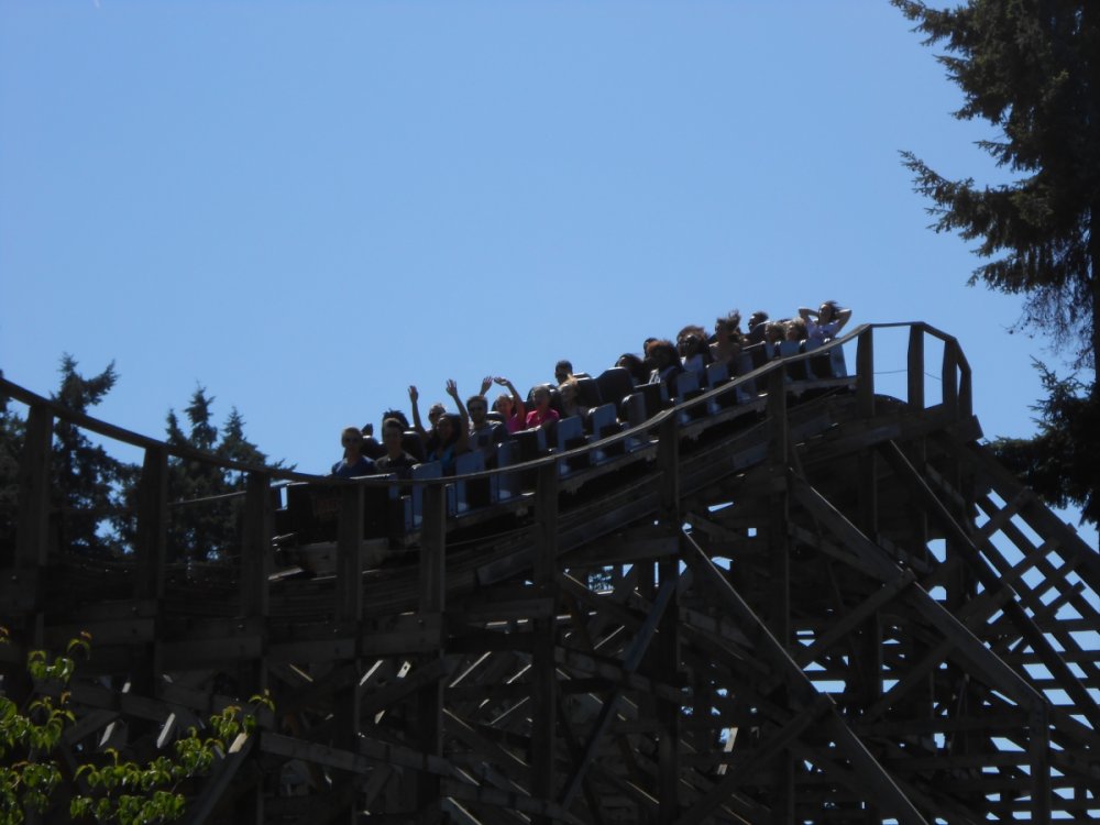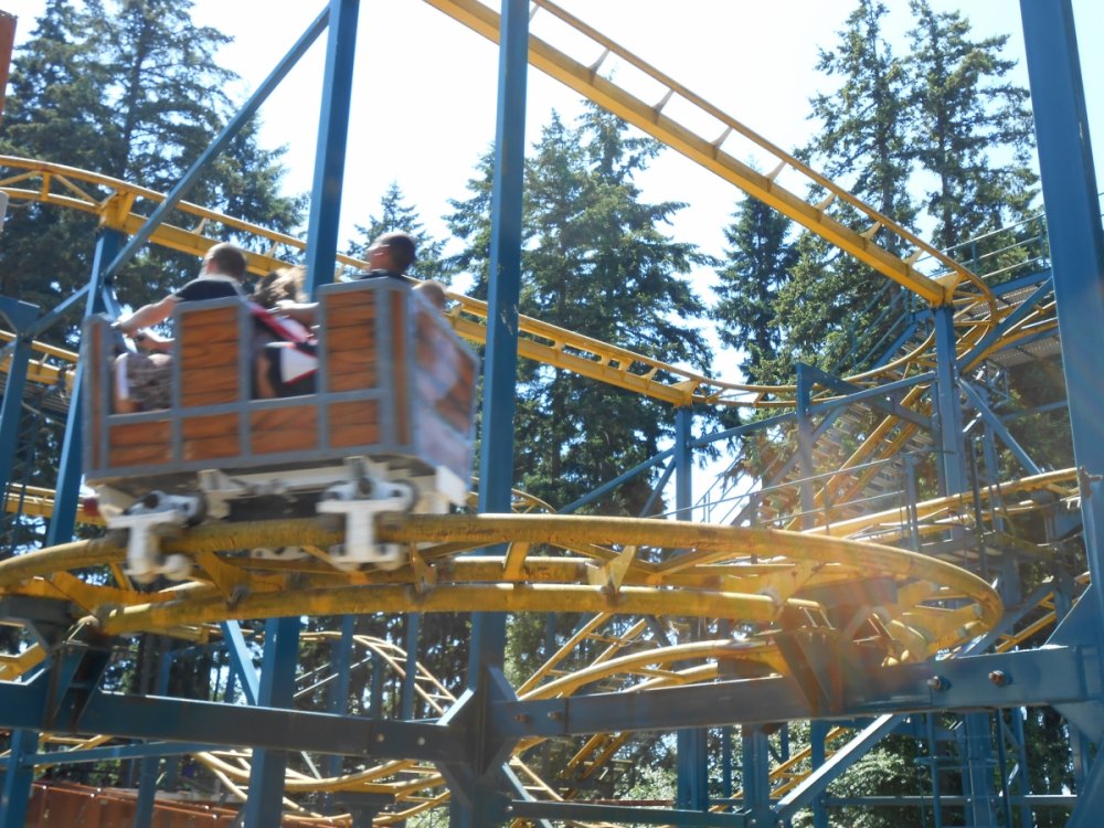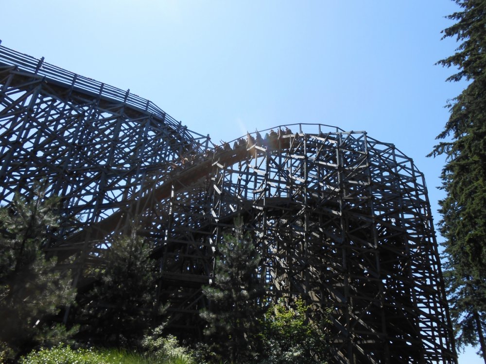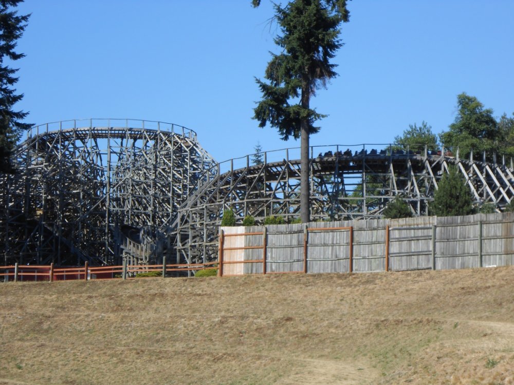 3. Photos part 2: The adult pool area. They've taken down the zip line that you drop from, and have also closed off access to one of the slides. More of the previous picture. 2 slides that let you rocket out of. Talk about an atomic wedgie. My camera is too slow. :C Area of the entrance, and then another water ride just behind. It's a nice lounging ride that spills you into multiple areas, eventually leading you to the end. Final splashdown. This area has always been clear-cut. There's potential for a few rides or even a coaster, but it still lays barren. From the hill looking out to Mud Lake. Higher up on the same hill. And I'm flying hiiiiiigh... Heh heh. Thought this guy was hilarious. Not sure why. CONSTRUCTION PHOTOS! Nerdy stuff, oooh. We got pipes! 3 slides confirmed! Twisty. Confirmed Plants vs Zombies 3! More water slide pieces gather just behind the pirate ship ride. Yeah there's quite a collection over here. Another good view of the plot going on. It's time for Timberhawk Ride of Prey! A decent lift speed, gets you up there in about 10 seconds. Very smooth ride for a woodie. Loading station. View from the blank hill. The loading station is pretty basic. Arms up in the air makes all happy campers. I'm next! Another view of the station. This area here provides a good head chopper illusion. 2 trains run consistently, so the wait time ain't that all terrible. On a real busy day, you wouldn't wait any more than 20 minutes. For those who have a hard on for hard wood structural construction. Timberhawk has always been a photogenic ride. The first drop has got a great roar to it with the forest surrounding the area. PRAISE THE COASTER! Mmm oh yes. Wild Thing! Taking on the first corkscrew. There's a positive and a negative to this ride. Positive: Riders get to go twice in a row. Negative: Only 1 train, thus long line wait time. This coaster recently got a new paint job about 2 years back. Use to be green tracks. THROUGH THE TREES! It really is quite a photogenic ride from a distance. With the new slide open, so has the path extended to get more footage of the backside of Wild Thing. Getting ready for the loop. Scream on past the station! UP-SIDE-DOWN! Nerd shots! This should have a NSFW label. Station shot. A little closer up to the first drop. You do get rather close to the track.