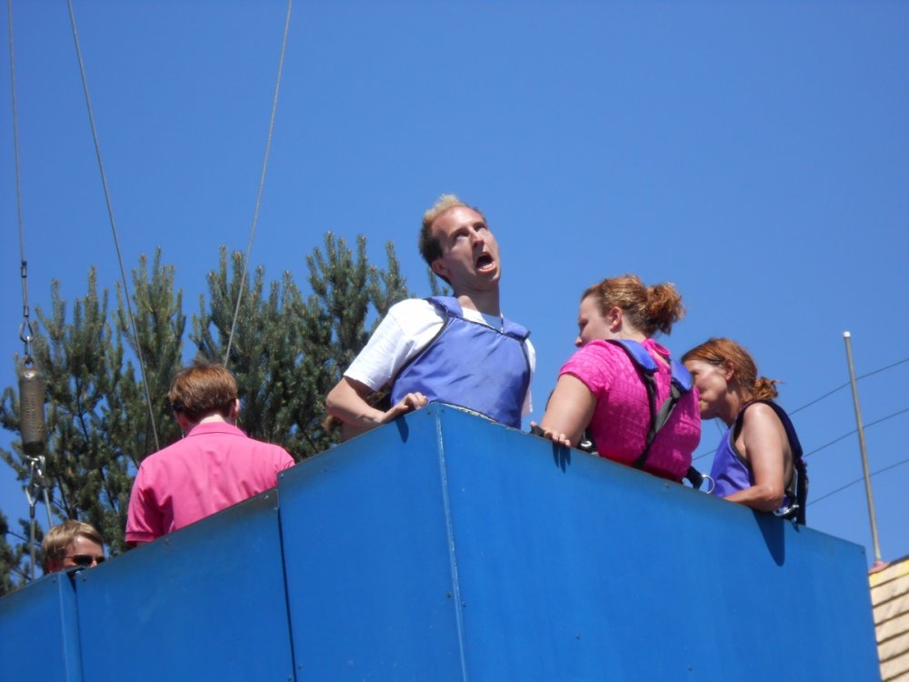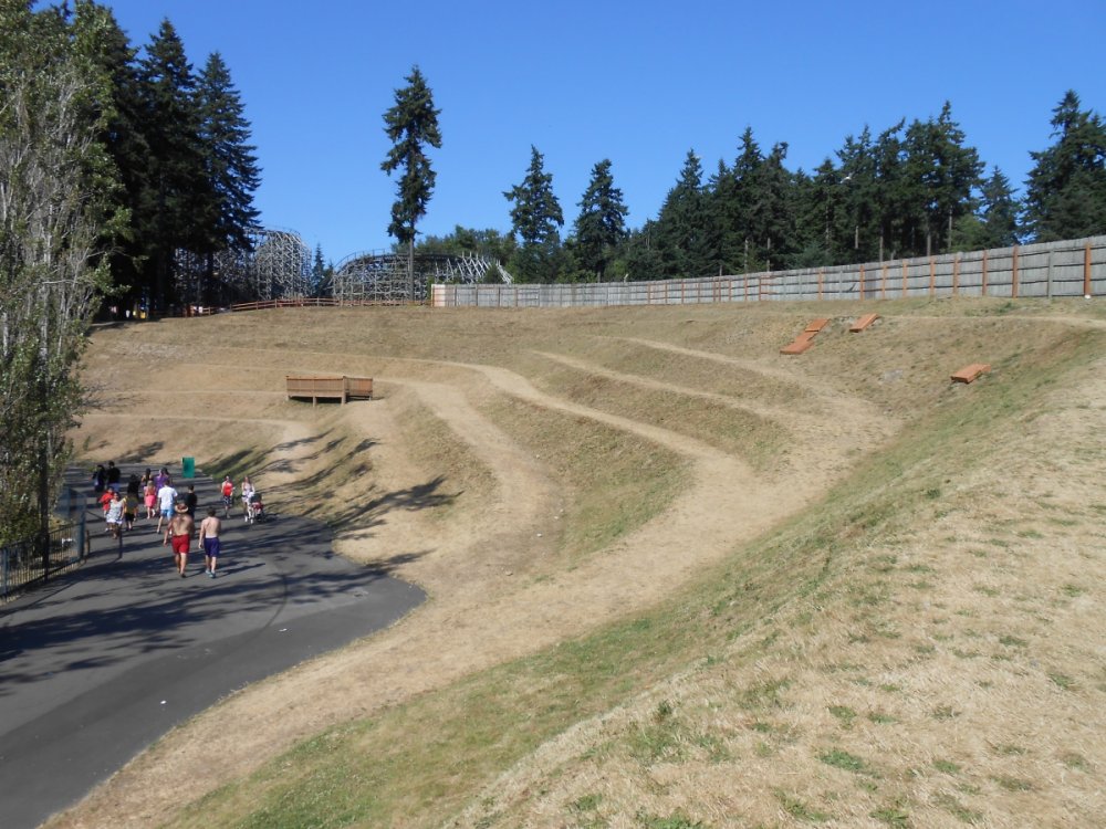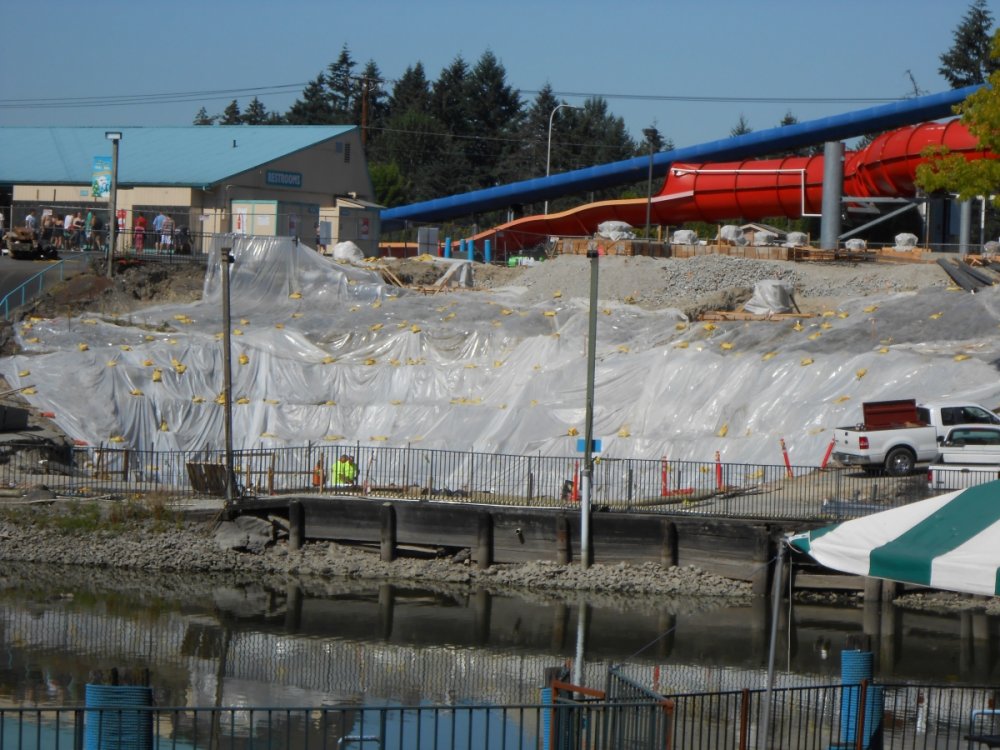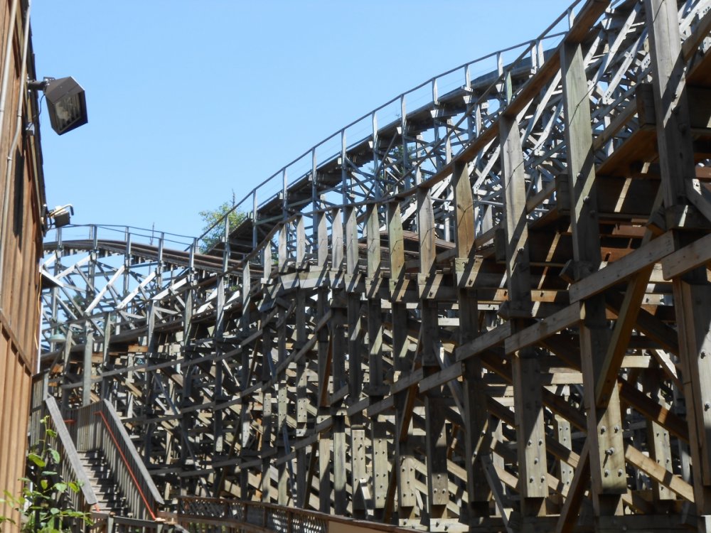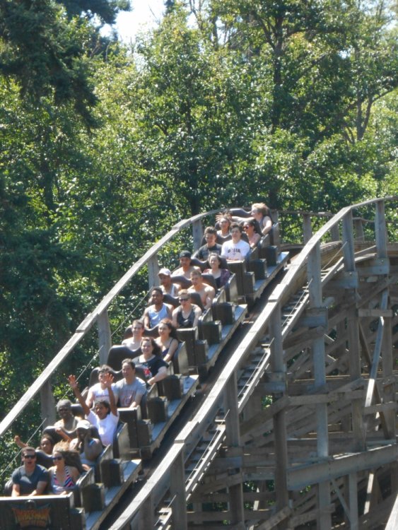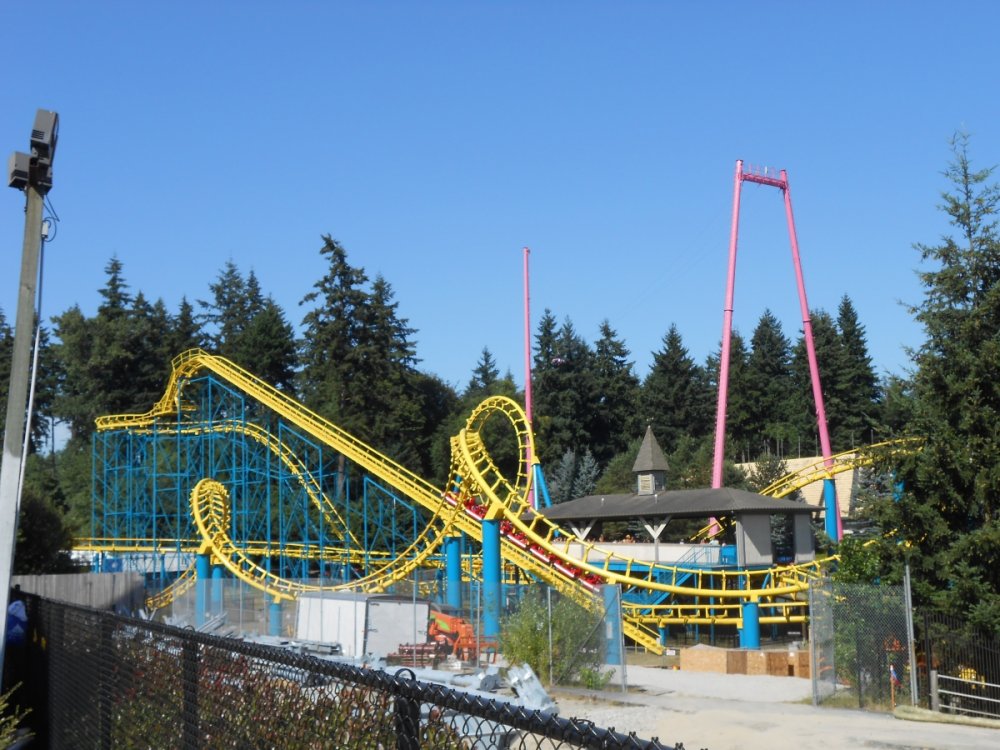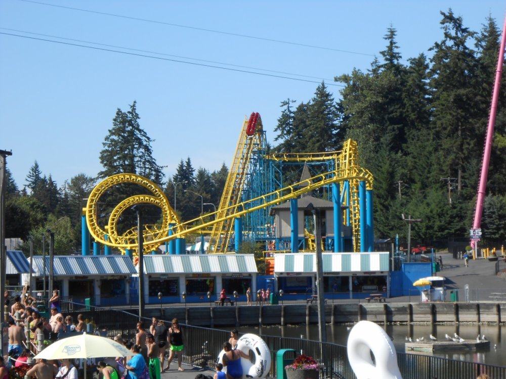 3. Photos part 2: The adult pool area. They've taken down the zip line that you drop from, and have also closed off access to one of the slides. More of the previous picture. 2 slides that let you rocket out of. Talk about an atomic wedgie. My camera is too slow. :C Area of the entrance, and then another water ride just behind. It's a nice lounging ride that spills you into multiple areas, eventually leading you to the end. Final splashdown. This area has always been clear-cut. There's potential for a few rides or even a coaster, but it still lays barren. From the hill looking out to Mud Lake. Higher up on the same hill. And I'm flying hiiiiiigh... Heh heh. Thought this guy was hilarious. Not sure why. CONSTRUCTION PHOTOS! Nerdy stuff, oooh. We got pipes! 3 slides confirmed! Twisty. Confirmed Plants vs Zombies 3! More water slide pieces gather just behind the pirate ship ride. Yeah there's quite a collection over here. Another good view of the plot going on. It's time for Timberhawk Ride of Prey! A decent lift speed, gets you up there in about 10 seconds. Very smooth ride for a woodie. Loading station. View from the blank hill. The loading station is pretty basic. Arms up in the air makes all happy campers. I'm next! Another view of the station. This area here provides a good head chopper illusion. 2 trains run consistently, so the wait time ain't that all terrible. On a real busy day, you wouldn't wait any more than 20 minutes. For those who have a hard on for hard wood structural construction. Timberhawk has always been a photogenic ride. The first drop has got a great roar to it with the forest surrounding the area. PRAISE THE COASTER! Mmm oh yes. Wild Thing! Taking on the first corkscrew. There's a positive and a negative to this ride. Positive: Riders get to go twice in a row. Negative: Only 1 train, thus long line wait time. This coaster recently got a new paint job about 2 years back. Use to be green tracks. THROUGH THE TREES! It really is quite a photogenic ride from a distance. With the new slide open, so has the path extended to get more footage of the backside of Wild Thing. Getting ready for the loop. Scream on past the station! UP-SIDE-DOWN! Nerd shots! This should have a NSFW label. Station shot. A little closer up to the first drop. You do get rather close to the track.