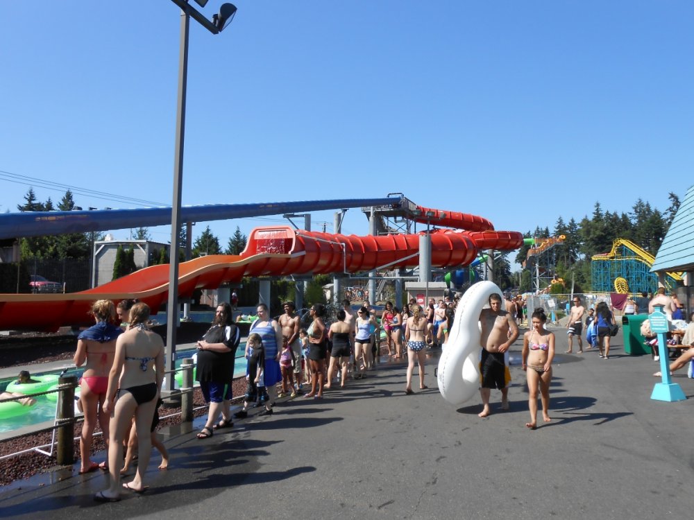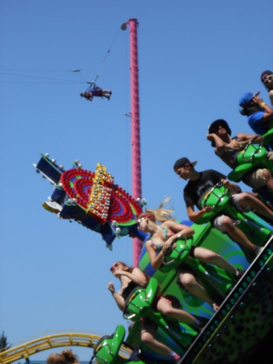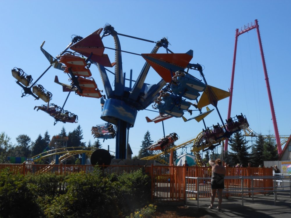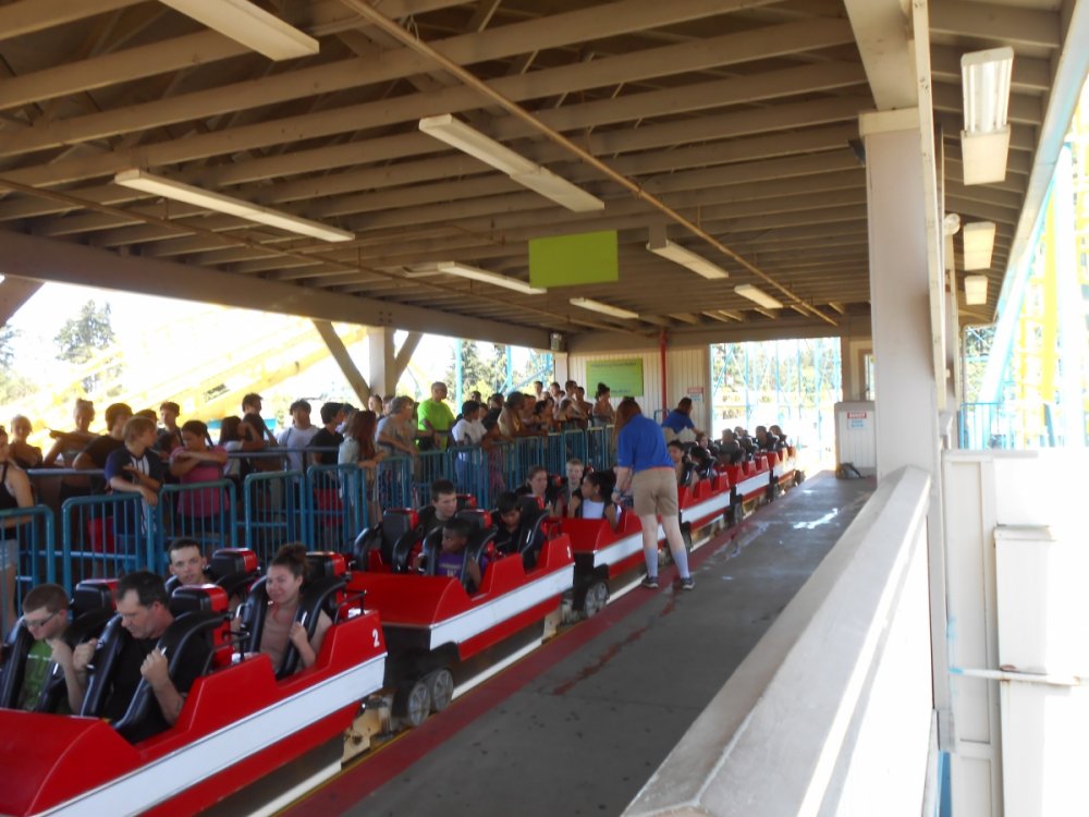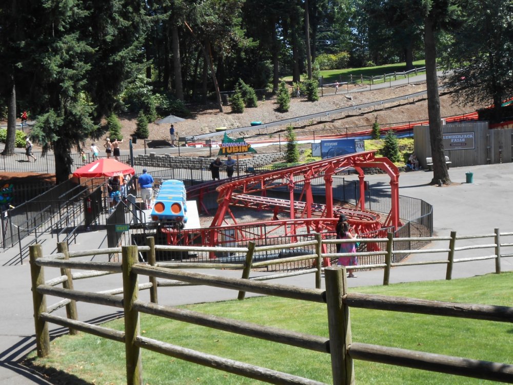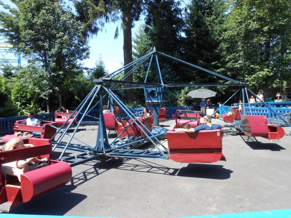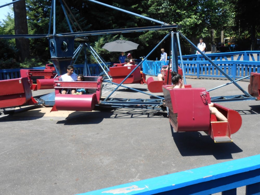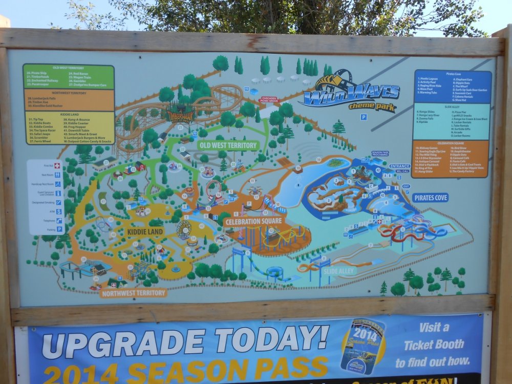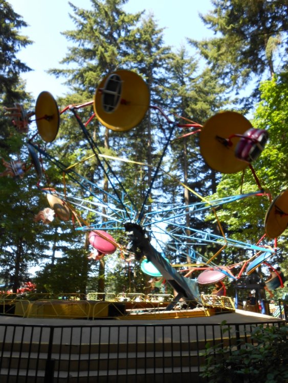 4. Heya everyone! Finally decided to make an account after lurking this site for many years, now having a reason to contribute with some park photos! Headed on over to Wild Waves Enchanted Park over in Federal Way, WA, on a beautiful sunny Saturday (Temperature was maxing at 96°, highest it has been all year so far). Upon arrival, the parking area was getting busy as usual for opening time. First thing I noticed is that they have attempted to organize the entrance line now. No, there aren't any fencing que lines to get into the park, but at least now there is a large lane of people that wraps around the outskirt of the parking area. It really was quite alarming to see the mass amount of people that wait for their turn to enter. Assuming it would take roughly 45mins to get in due to only 4 lanes open with their turntables, the process was surprisingly quick and painless, lasting only about 15mins. Not to make any judgements, but I was floored seeing so many fat children at the park. The last time I had visited the park was a few years ago. This visit was a real eye-opener for me not only that I have been getting more active with my physique, but also as I have matured more into an adult now. Healthy kids are honestly now a minority. There were more beer guts on kids than there were with adults. Since Six Flags had lost ownership of the park, there has been much needed improvements in which I am content with how the new management is running it. For one, they are now including outside source of entertainment. Like for example, they had smurf mascots and a bird exhibit come in today. They seem to cycle through different sources of entertainment on a weekly basis, which is a nice thought to have guests continue going to their park. About half of the rides have had a new, much needed fresh coating of paint. Flowers have flourished more now, and also the janitorial work has massively improved (Still some needed progress though). The staff of the park is a hit-and-miss situation. There were some that didn't mind operating rides or providing food services to paying customers. As a matter of fact, when I decided to try out some Dip n' dots for the first time at one of the many carts around, one of the ladies was really approachable and informative about her services. She was very friendly with a smile brightened across her face (Maybe she thought I was cute, who knows). But it felt great to be able to enjoy the day with a tasty treat. While there some others who looked like as if a zombie apocalypse had taken over their mind. They would stare blankly at a fence and call out their safety requirements, and take their sweet time checking all safety harnesses, lap bars, etc. There is currently construction going on, in which they intend to build a few new water slides to replace their older one. The area is rather small and compact, so it'll be interesting to see the layout of it once completed. With the construction going on, a major pathway was blocked off, forcing park guests to walk around Mud Lake to go from the water rides over to the park rides. Overall, the park has made more improvement and seems to be taking a turn for the better. I look forward to going back into the park again, hopefully during Fright Fest or when the Christmas Lights are up again. I know you guys want to get right to the pictures, so here ya'll go! Now that we have found a parking spot, we must head to the back of the line. All the way... Down there... Yeah... It looks like it'll take forever. But the staff was very quick and efficient. Here's the park map in case you were wondering! Mud Lake! The water level has went down quite a bit. Starting to look a lot like mud on one half of the side. The local fish that often gather over at the gaming sidewalk. That's where all the feeding occurs. There are gumball machines filled with fish food that can be gathered for a quarter a piece. Even some of the precious, wonderful, adorable, lovable ducks enjoy a peaceful swim over here. Another view of the lake. The I-5 Dive, the skycoaster. Last year it got the pink coating of paint, in appreciation for breast cancer awareness. Can be seen right off of I-5 hence the name. I've always wanted to try out this ride, so we made pla Classic Ring of Fire ride. Talked about cramped seatings. Front shot. Hang glider ride that is on the hill side overlooking the lake and construction. One of the new attractions here, this is basically a zip line that pulls riders to the tower over by a few slides, and then sends them zipping back across the park. This ride has a price tag to get admission for, and honestly it ain't really worth it. PIRATE! I love these rides. It gets pretty high up there. Often cases where when 1 side is up high, they all scream. And as it swings to the other side, the others scream. It becomes a dueling match on which side can scream the loudest. This week at the park, they had a bird exhibit going on. That might be too sarcastic of a sign. It was only the side of a decent sized porch. They weren't quite ready to start the show yet. BIRRRRDS! The gaming area was pretty dead majority of the day, thanks to the construction of the watersides blocking the major path that links the water park to the rides. Here we have the original Enchanted Railway ride that has been with the park since the first opening. Lots of forest, lots of cool shading. Some cute little theming. Definitely for the younger audience. CHOO CHOO! The Baron flyers ride. The name slips off the top of my head, but this is a fun little ride to go on. Some of the plenty areas of theming they have throughout the park. Western theme! Don't look at the suspicious ride behind the shack! It is not important! This area has been closed off to the public and is now where they have temporary storage. A red barn! OOOoooooOOOOOooooh. NO this is NOT Knott's Berry! These flowers are so lovely. *Sniffs* WEEEEEE! Can you guess what kind of amusement ride this is? If you guessed a