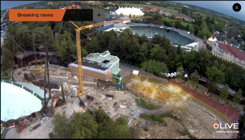 The park has set up a link to the webcam on their homepage. This is the latest picture. And they seem to add special effects into the live pictures. Source: http://gardaland2015.it/en (just click on the upper left monitor) -