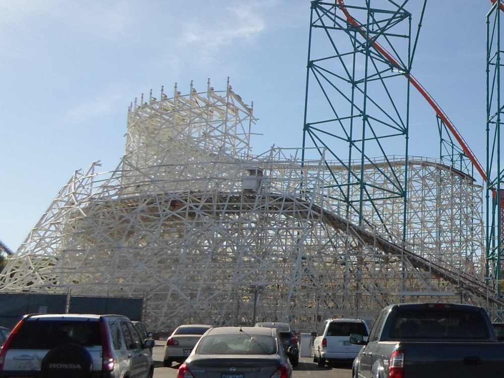 ive been following this thread for a few months now in stand-by mode, but have not actually registered until now. I finally decided to join in because I was there today to update on colossus' progress....and to actually be in on the conversation once in a while. goliath was down much of the day so I didn't get a chance to ride to actually see if ANY of the track had been installed yet, but I did get these pics from the ground. even todays ride on scream didn't reveal anything much from that point of view....just that much of the old tracks are still there waiting to be removed. some of the supports are being cut away more being gutted out from further down the first drop the only green/blue track I saw was on the ground, and none of it installed yet.
