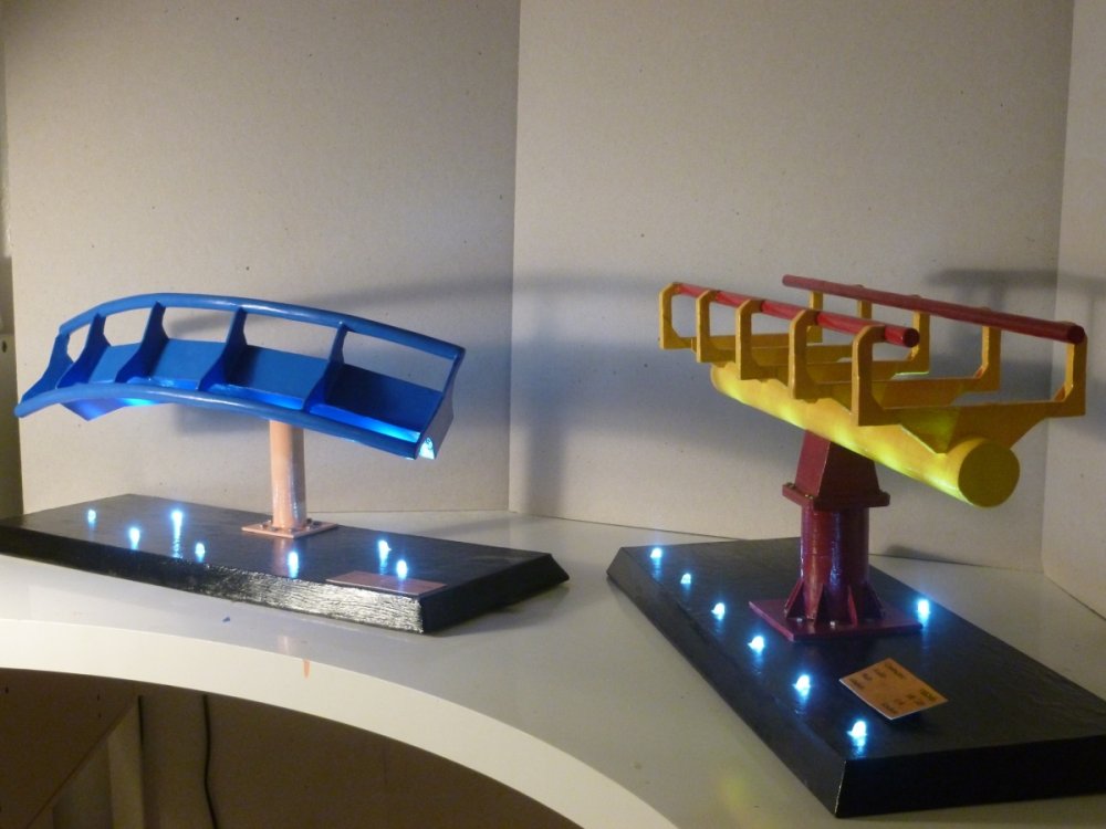 6. Thanks ! These 3 models are on a shelf, and I don't know what to do with it, just let it here as decoration... For the moment I don't have a clear idea about my next model, wich I'll start in september, but maybe a launch system: The rails would be like "Superman the escape" coaster, with a LIM or LSM launch, a braking zone, and a lighting for the launch ! But I don't know how to do that, so I think I'll need help ! I'll post a video rendered in Blender, and if someone knows how to create the electric system like it appears, I'll really appreciate that !