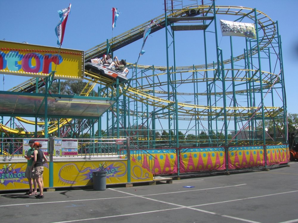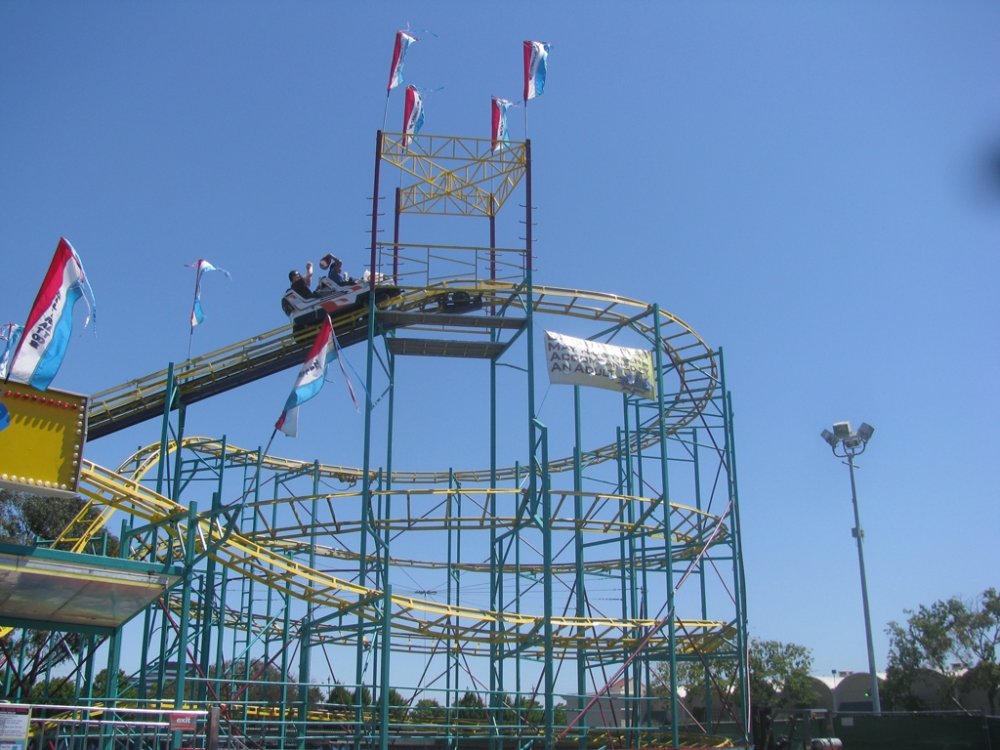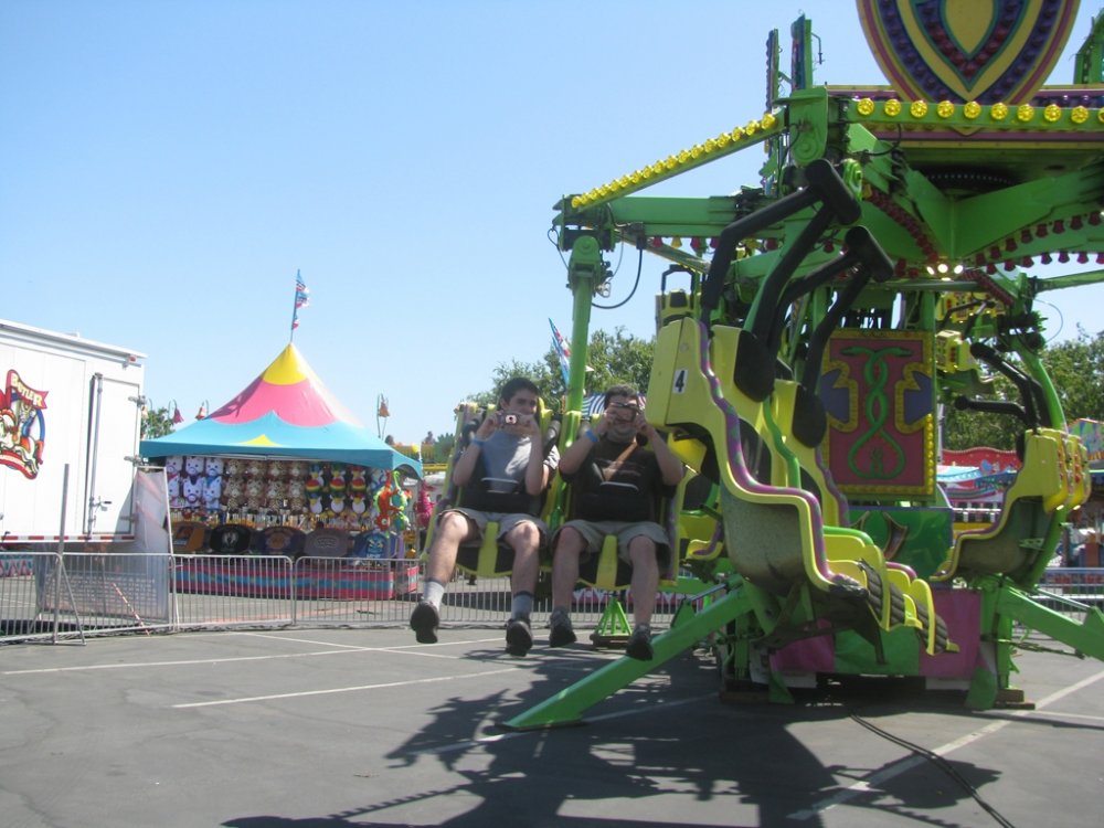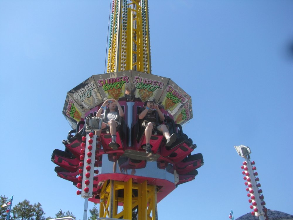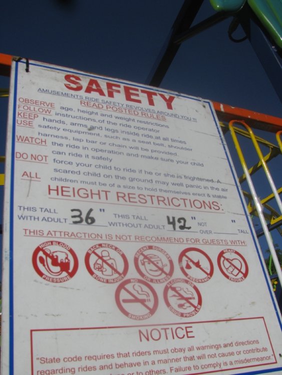 25. Had an AWESOME time at the fair and as said, there was a decent selection of flat rides and such. As already said, we spent a good chunk of time in the exhibits playing with science stuff/hands on goodies...this kind of stuff easily amuses me! Starting the day off, we warmed up on the Viper flat ride. Bizarre suspended banked scrambler that did absolutely nothing until the seats switched direction and spun the same way as the main ride structure...that's when this came to life! Other than that, it was quite bizarre seeing the empty seats running with their OTSR's open. That would never happen in a Six Flags or Cedar Fair park! Supershot...After hearing rave reviews about it last year, I had to see it for myself. Don't underestimate this stout, 70' tower...it actually feels like it launches you downward, leaving you airborne until you hit the mag brakes. The restraints are a bit sloppy too so that gives some nice wiggle room. Bonus points for not being able to tell how high up you are on the tower, and the fact that as soon as you do hit the top it drops...I mean, shoots you down. My favorite carnie ride there! Energy Storm was another crazy one that had to be experienced. Concept is basically another suspended Scrambler-esque ride until the seat sections rotate 180 degrees until you're fully inverted. You remain inverted for what felt like eons...how could this could be good for people? This was very intense and left me pretty exhausted by the time the ride cycle ended. As I said on the ride..."MY EYES FEEL LIKE THEY'RE GONNA POP OUT!!!" Chance Yo-Yo...or should I say, Kick-boodie! This ride was bizarre, often felt like my seat was reclining back and then shooting forward. Had I extended my legs out during the ride, I could have sent Blue Fire Guy sailing into JeffyJosephNorcal. When the ride came to an end, I did crash 3 times into Blue Fire Guy...pretty hard crashes too! Other highlights: -SMOOTH Pinfari coaster (Zyklon Z47?) that however stalled on a test run, and just *barely* made it on the second run...."ROW! ROW! ROW!" -Wacky Worm credit -Funhouse...lost in the mirror maze that we over-complicated -Forceless Zamperla Nitro...ran a pretty lame program in the morning and ran an okay program later in the afternoon...left much to be desired. -Animals! -As said...Voyager...ride film is meant to be a mystery...yes it's that bad, will say it looks like something that was bought at the local Dollar Tree store And you know you're in for a quality ride when the first thing you see on screen is "DVD Player." -And....rubber fetuses! I don't know why...they are disturbing yet amusing at the same time! I really don't know if this is a bad thing or not So, I'll let photos tell the story from my point of view Arriving at the SMCF! I spy a death machine credit! Looks like we won't be needing these today (Free admission promo FTW!) The group While waiting for the carnival to open (had about 30 minutes to kill) we checked out the surrounding area/familiarized ourselves with the Fairground campus. Random Airsoft target shooting game. Pickles! (A certain member of our typical CGA group would be in heaven right now...you know who you are if you're reading this TR) 3D-ish pig painting that only looks right at a certain angle. (Already shown)...anyone want some Winkies? How about some Reos? (They aren't authentic Twinkies...they're Little Debbies!) Back to the Carnival...we have 2 rings - like objects! Jeff...what on earth are you doing with the inflatable Superman? Yay, we got our sexy blue unlimited death machine bracelets! Let's ride! Let's start with the innocent-looking 70' ARM/Larson Supershot! Uh...why do we do these things? The Viper - strange Scrambler-like ride made by Wisdom. Forceless Nitro... let the forceless B&M jokes commence! Now the wooden footers...on this ride, you can actually hear creaking sounds as Nitro swung about. Sounded a bit scary Zillie! (Zillerator) Please don't (do) stall on us, please! Wacky Worm, another Pinfari masterpiece...this was actually pretty fun! It had more airtime than El Toro and Skyrush combined! Lift Chain Porn... Feeling excited anyone? Super Slide of Death! Uh...this slide did NOT deliver the same experience as we faced at Global Winter Wonderland back in December. It's a yo-yo in front of a yo-yo! One of my favorite carnie flat rides...not just because I'm an avid yo-yo enthusiast. ...but because this thing actually reclines in weird ways and then launches you forward! And in the end of the ride you actually SLAM into the rider in front of you...if you stretched your legs out, the poor rider in front of you would go sailing into the rider in front of them I found these foot massage benches quite disturbing... (Fully licensed) Shrek Adventure funhouse...scary suspension bridges to navigate! Jeff is ready to TAKE THE TUNNEL on the plastic slide of death...where you can feel the slide joints run along your back. And it's time for food! Where to go, where to go? So many options! Uh....yikes? After eating, it was time for EATing! (EAT...exclusive animal time) Yea, what? Meet our friend, Necky! (You may remember Necky from the Donkey Kong Country games) Sleepy pig ... if only they knew what lies ahead for them... Oh God... (time to be mature adults and play with the rubber fetus!) Ugh! Back at the carnival area... I love Ring of Fire rides! Can't forget you either Super Shot! Want to see what's inside the Voyager? You sure? Welcome to DVD Player: The Ride! Now that we witnessed what's inside the Voyager ride, it's time to move on. Let's see some aerials of the main carnival! Just behind Ring of Fire is the Zamperla Energy Storm of hot juicy death! Yo-yo, Tornado, Funhouse, and Wacky Worm! Zillie! And a nicely-vandalized Ghetto Wheel piece... Ok, done with rides, time for exhibits! Blue Fire Guy pets CGA's relocated Invertigo American Alligator Sonic, what happened to your color? You don't seem as blue as I remembered... Butterfly porn! And over to the othe