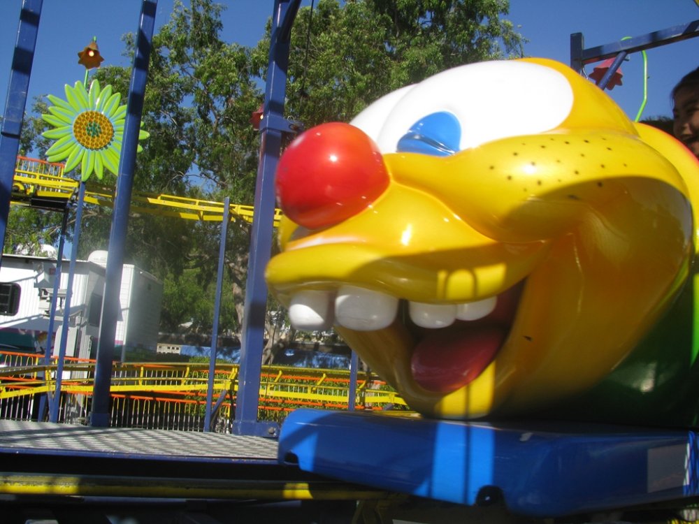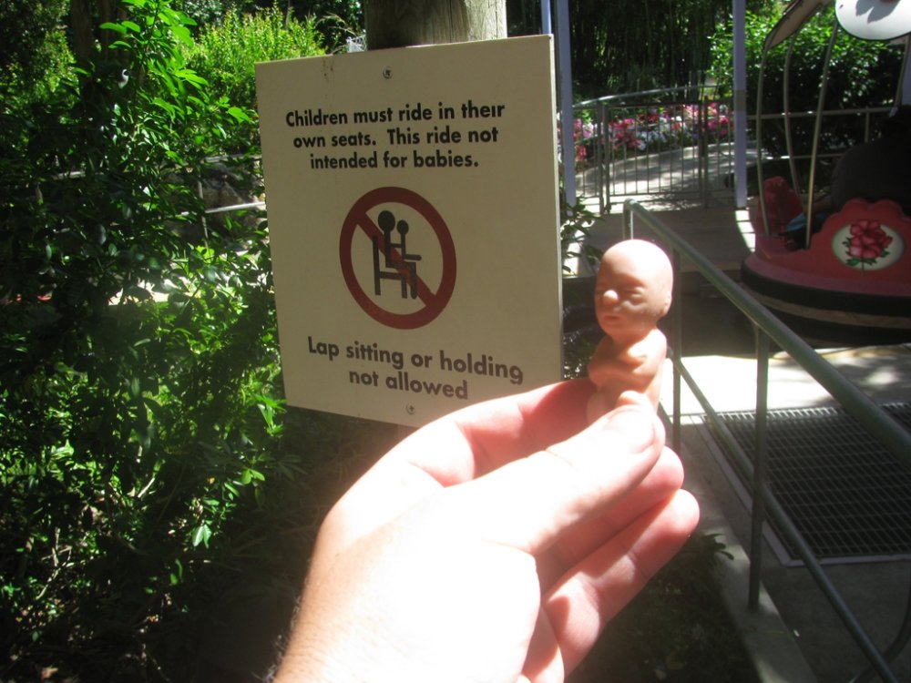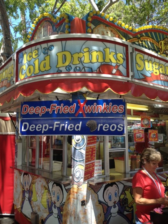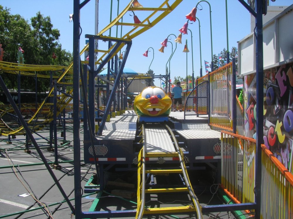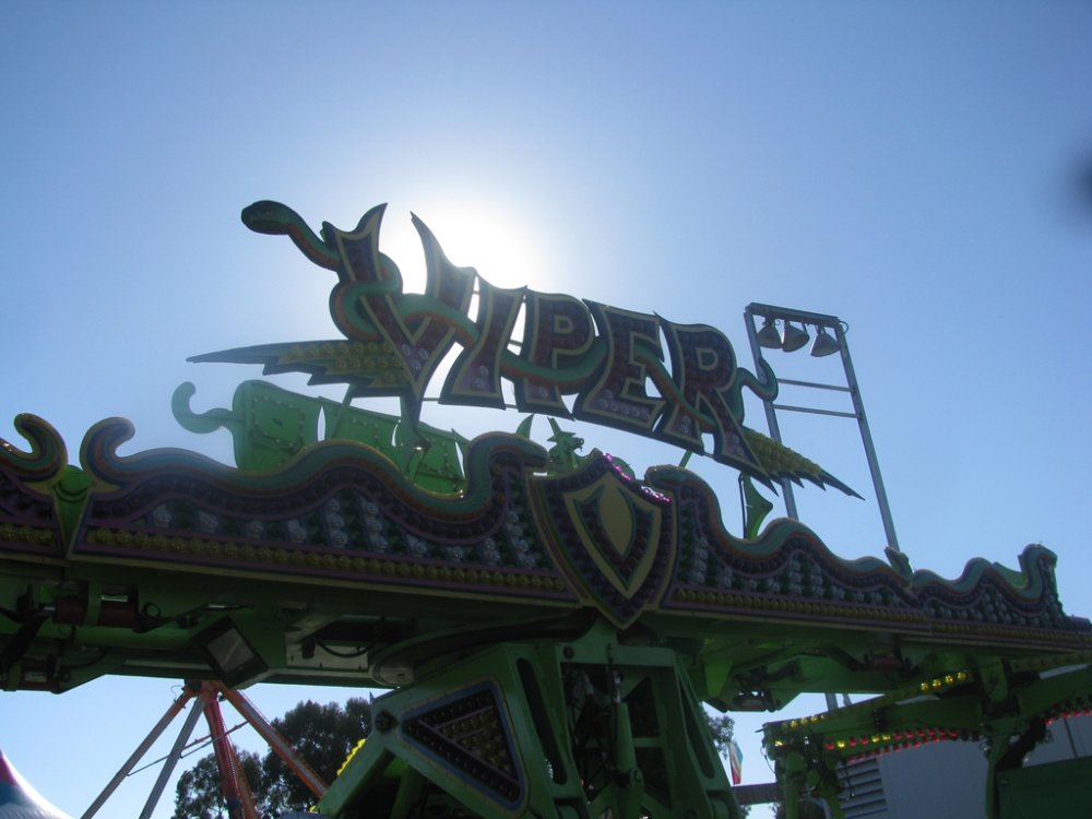 25. Had an AWESOME time at the fair and as said, there was a decent selection of flat rides and such. As already said, we spent a good chunk of time in the exhibits playing with science stuff/hands on goodies...this kind of stuff easily amuses me! Starting the day off, we warmed up on the Viper flat ride. Bizarre suspended banked scrambler that did absolutely nothing until the seats switched direction and spun the same way as the main ride structure...that's when this came to life! Other than that, it was quite bizarre seeing the empty seats running with their OTSR's open. That would never happen in a Six Flags or Cedar Fair park! Supershot...After hearing rave reviews about it last year, I had to see it for myself. Don't underestimate this stout, 70' tower...it actually feels like it launches you downward, leaving you airborne until you hit the mag brakes. The restraints are a bit sloppy too so that gives some nice wiggle room. Bonus points for not being able to tell how high up you are on the tower, and the fact that as soon as you do hit the top it drops...I mean, shoots you down. My favorite carnie ride there! Energy Storm was another crazy one that had to be experienced. Concept is basically another suspended Scrambler-esque ride until the seat sections rotate 180 degrees until you're fully inverted. You remain inverted for what felt like eons...how could this could be good for people? This was very intense and left me pretty exhausted by the time the ride cycle ended. As I said on the ride..."MY EYES FEEL LIKE THEY'RE GONNA POP OUT!!!" Chance Yo-Yo...or should I say, Kick-boodie! This ride was bizarre, often felt like my seat was reclining back and then shooting forward. Had I extended my legs out during the ride, I could have sent Blue Fire Guy sailing into JeffyJosephNorcal. When the ride came to an end, I did crash 3 times into Blue Fire Guy...pretty hard crashes too! Other highlights: -SMOOTH Pinfari coaster (Zyklon Z47?) that however stalled on a test run, and just *barely* made it on the second run...."ROW! ROW! ROW!" -Wacky Worm credit -Funhouse...lost in the mirror maze that we over-complicated -Forceless Zamperla Nitro...ran a pretty lame program in the morning and ran an okay program later in the afternoon...left much to be desired. -Animals! -As said...Voyager...ride film is meant to be a mystery...yes it's that bad, will say it looks like something that was bought at the local Dollar Tree store And you know you're in for a quality ride when the first thing you see on screen is "DVD Player." -And....rubber fetuses! I don't know why...they are disturbing yet amusing at the same time! I really don't know if this is a bad thing or not So, I'll let photos tell the story from my point of view Arriving at the SMCF! I spy a death machine credit! Looks like we won't be needing these today (Free admission promo FTW!) The group While waiting for the carnival to open (had about 30 minutes to kill) we checked out the surrounding area/familiarized ourselves with the Fairground campus. Random Airsoft target shooting game. Pickles! (A certain member of our typical CGA group would be in heaven right now...you know who you are if you're reading this TR) 3D-ish pig painting that only looks right at a certain angle. (Already shown)...anyone want some Winkies? How about some Reos? (They aren't authentic Twinkies...they're Little Debbies!) Back to the Carnival...we have 2 rings - like objects! Jeff...what on earth are you doing with the inflatable Superman? Yay, we got our sexy blue unlimited death machine bracelets! Let's ride! Let's start with the innocent-looking 70' ARM/Larson Supershot! Uh...why do we do these things? The Viper - strange Scrambler-like ride made by Wisdom. Forceless Nitro... let the forceless B&M jokes commence! Now the wooden footers...on this ride, you can actually hear creaking sounds as Nitro swung about. Sounded a bit scary Zillie! (Zillerator) Please don't (do) stall on us, please! Wacky Worm, another Pinfari masterpiece...this was actually pretty fun! It had more airtime than El Toro and Skyrush combined! Lift Chain Porn... Feeling excited anyone? Super Slide of Death! Uh...this slide did NOT deliver the same experience as we faced at Global Winter Wonderland back in December. It's a yo-yo in front of a yo-yo! One of my favorite carnie flat rides...not just because I'm an avid yo-yo enthusiast. ...but because this thing actually reclines in weird ways and then launches you forward! And in the end of the ride you actually SLAM into the rider in front of you...if you stretched your legs out, the poor rider in front of you would go sailing into the rider in front of them I found these foot massage benches quite disturbing... (Fully licensed) Shrek Adventure funhouse...scary suspension bridges to navigate! Jeff is ready to TAKE THE TUNNEL on the plastic slide of death...where you can feel the slide joints run along your back. And it's time for food! Where to go, where to go? So many options! Uh....yikes? After eating, it was time for EATing! (EAT...exclusive animal time) Yea, what? Meet our friend, Necky! (You may remember Necky from the Donkey Kong Country games) Sleepy pig ... if only they knew what lies ahead for them... Oh God... (time to be mature adults and play with the rubber fetus!) Ugh! Back at the carnival area... I love Ring of Fire rides! Can't forget you either Super Shot! Want to see what's inside the Voyager? You sure? Welcome to DVD Player: The Ride! Now that we witnessed what's inside the Voyager ride, it's time to move on. Let's see some aerials of the main carnival! Just behind Ring of Fire is the Zamperla Energy Storm of hot juicy death! Yo-yo, Tornado, Funhouse, and Wacky Worm! Zillie! And a nicely-vandalized Ghetto Wheel piece... Ok, done with rides, time for exhibits! Blue Fire Guy pets CGA's relocated Invertigo American Alligator Sonic, what happened to your color? You don't seem as blue as I remembered... Butterfly porn! And over to the othe