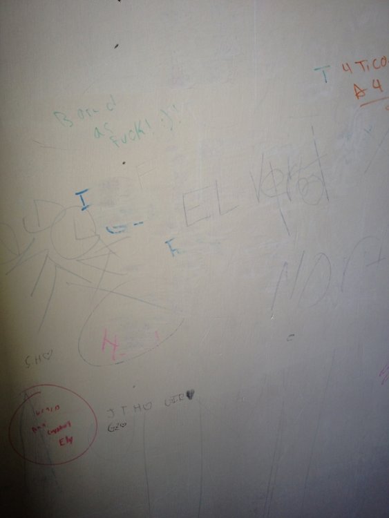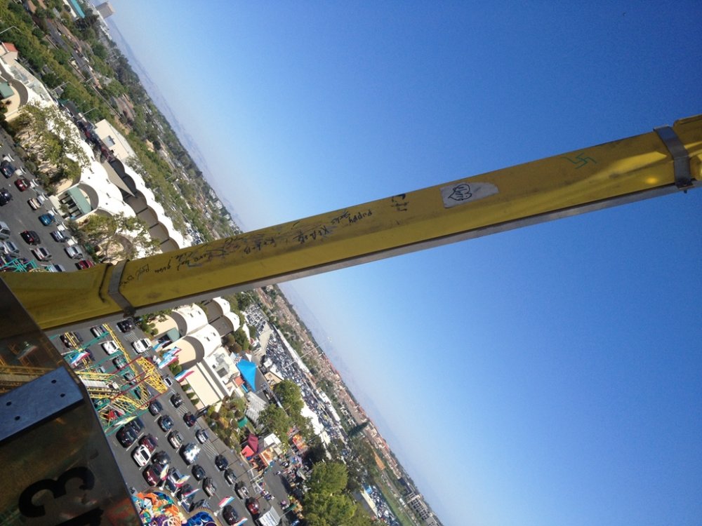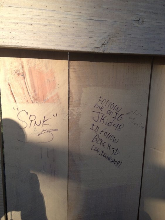 24. Just a quick writeup from yesterday's visit. The park's crowds were pretty light to medium including Gold Striker for most of the day. The switchbacks were about half full and like last week, many people kept leaving the line as it was 'too long.' Yet people will gladly wait for Grizzly in the back. Wait times were still however about the same as last weekend, averaging about 40 minutes. Last ride of the day though was probably a good 50 minute wait with a full queue. I also ran into a few TPR members as yesterday was Coasting for Kids...a couple new faces, and some familiar ones I took a few photos as I'm a bit saddened at what has happened within a week's time over at Gold Striker. I know it's inevitable but at the same time, it upsets me that people would really thrash something so quick as it just opened. Yup I'm ready for another CGA session! And so is the little rubber fetus I got over at the San Mateo County Fair the day before Since GS had opened, I haven't taken any photos from here. We were waiting for Rolercstrluver to take care of something over at guest services. And now that I've set the stage, let's now view the so-called "Vandalism TR"... Nerd vandalism...quadratic formula anyone? This is apparently a stomping ground for little unsupervised kids now...poor cacti/plants... ... looks like a stampede went through here... Ok, let's see how stupid we can go...who vandalizes something and puts their name out there? I hope you rat yourself out ... Am I in a gas station restroom in Oakland or am I in Great America? Little fetus isn't too happy... Apparently this is the trash can...not those plastic bins, branded with Cedar Fair, lined with black plastic liners... At one point though Gold Striker's line did poke out...this was after we had gotten off the first ride. This line didn't last long though. Just our luck riding White Water Falls, our row comes to greet us with this... I'll close this quick writeup with something to ponder...why on earth does Vortex's support base look charred?