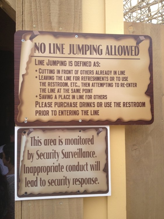 23. Good! Glad to see that the park is putting their foot down. Hopefully that sign I posted on the previous page isn't just a scare tactic but that they actually have something enforced...I'll share it again: There is 1 camera that is pretty obvious...and it has caught people trying to use the emergency exit near Star Tower to let their friends in. I did notice security around Gold Striker quite a bit yesterday too so maybe... This should also keep line jumpers in check once this is fully implemented.