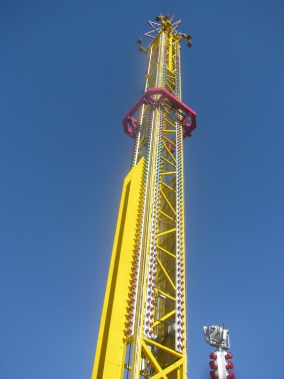 15. I am quoting a post from a year ago as I finally got to witness this form of drop tower. My first ride I did not expect much, just a shorter Drop Tower ride. Once I realized how quick you drop as soon as you reach the top (there is no hesitation, just instant drop) and how you can't see how close to the top you are, I got nervous. Yes, the drop caught me off guard and it feels like this may actually be an accelerated freefall as I actually had ejector air as opposed to just floating on the Intamin towers... In the end, a stubby 70' tower won over the world's tallest drop tower. Yes, I just said that.