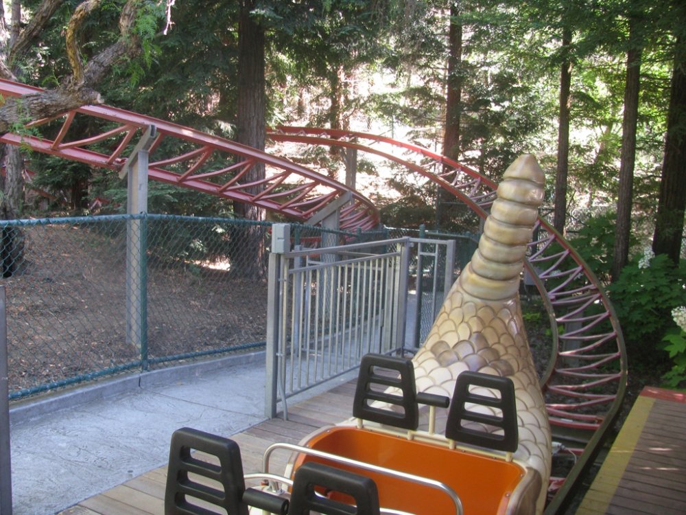 6. Snakey! (Timber Twister at Gilroy Gardens) Never underestimate this custom Zierer Tivoli...if you sit in the very back, you actually fly down that drop as you are kind of yanked over the crest of the lift. Short layout but my favorite Tivoli so far (been on 3). Bonus points for being able to smack the tree trunks close by Watch out for its tail!
