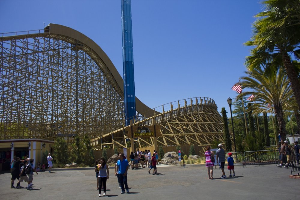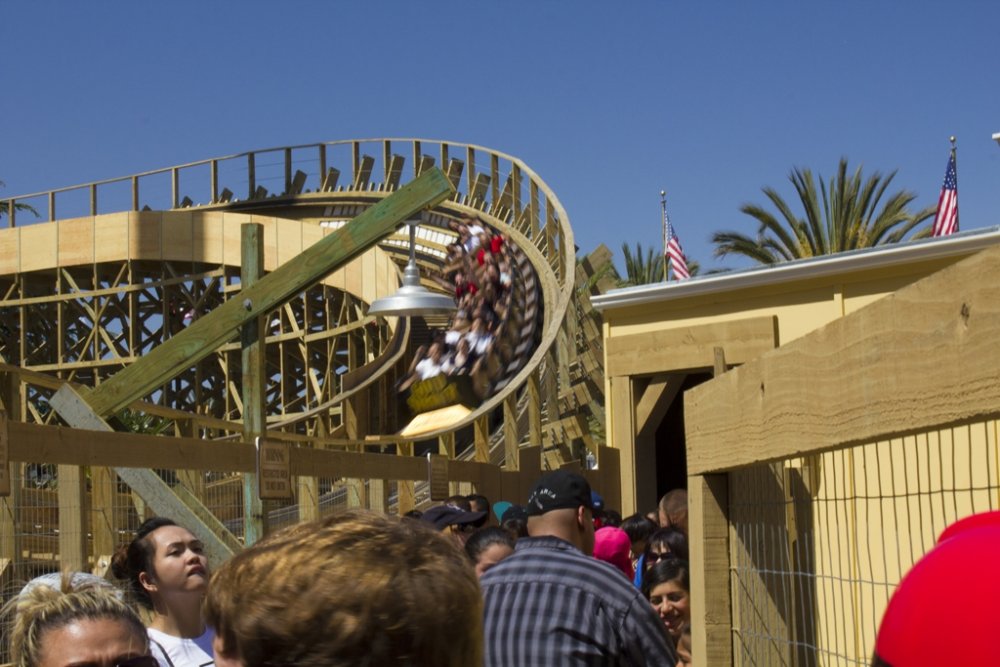 16. Alright, so the big write up of opening weekend! Well, I got the displeasure of missing out on the whole opening ceremony as it was my Saturday for work. However, since the park was open until 10, and I got off at 4, why not head out there for some evening rides on Gold Striker? To shave off potential Saturday afternoon traffic, I hopped on the Capitol Corridor/Amtrak to get out there and finally met up with the gang. First wait of the night was about 80-90 minutes. The area was full of life! Finally we get to ride! Awesome as always! Second time of riding the line was more like an hour or so. By the time we had gotten on the final it was already 10:00, being dark. First night ride! I mentioned a few pages back about the night ride experience. There are plenty of floodlights to illuminate the track, as well as some light pollution generated from Xtreme. Still a neat experience though and plunging down in an almost dark tunnel is pretty cool! Light does penetrate though the white infill though. I got in 2 whole rides on Gold Striker Saturday, as well as a ride on Flight Deck and Orbit. Sunday, I got there at opening where people were already in line for Gold Striker. The park had opened the gates prior to the 10:00 opening which honestly I like. Sure the rides are not open yet but this beats standing in line at security to get in while things get clustered. Another random photo I figured I'd add...apparently the SJ Mercury News were there snapping photos of yesterday's morning rides. I'm in Row 10, see if you can spot me Wait times Sunday started off at an hour and eventually quickened down to 30-40 minutes with the full queue. The queue remained pretty consistent throughout the entire day, though many of the GP kept leaving as soon as they entered as "the line was too long for them." Perhaps they think this is Grizzly? I will gladly wait an hour for this coaster! Other highlights included checking out the Happiness is Snoopy show, and short lines on the other rides. Flight Deck's line was actually moving rather quick too! Here's an offride compilation I put together from opening weekend with more angles. Here you go! Here's a few photos...took much less than I actually anticipated. I spent most of my time behind the camera filming actually. Ready to enjoy my gold rush! Wood...sexy... Yes, this is the line, wrapping around and heading into the Star Tower plaza. Keep in mind the line stops at the entrance sign. Fast forward to afternoon, let's check out the now open Happiness is Snoopy! Happiness is... ...Snoopy! Did I mention, there's airtime in Happiness is Snoopy? You all should check out this show next time you go, a very nice production! Back at GS...what was once a dormant plaza is now full of life! Starting here was a common site today. Using all switchbacks...During the morning through afternoon, I actually advise you bring a hat or something to provide shade for your face. Playing with balls (A kendama that is ) Wheee! And I'll end it with an evening shot from Saturday evening. And of course you can't forget the onride photo (taken Saturday night).