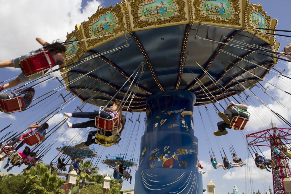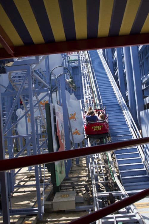 Here's Day 3 of the trip, a continuation on the DLR. Sorry it's a bit late, I've been a bit busy and a bit lazy...not to mention being on Gold Striker overload shortly after the trip. Here goes! I'll let the photos tell the story. We basically primarily focused on the DCA side this day...and other side note: I love Plaza Inn chicken! Ready to rock the 3rd day into this trip! And yup I've now got my own set of ears! Whee! Escalator ride! Not as cool as Parque España's but it is a magical Disney escalator Got my fast pass! Ooh! A hidden mickey! And over to warm up on an Intamin again! Wheee! And over to Mickey's Fun Wheel, where you spend more time loading the wheel than you actually do really riding it (we got 1 whole lap around the wheel). Artsy Fartsy Stuff! Nerd shot: tires! Traditional taking a picture of me, taking a picture of...routine And finally, up we go in the nauseating, swinging gondola! Should I be a Jeff Johnson and count this as a credit? It has wheels and upstops, rolls entirely by gravity! Over to Orange S....I mean Silly Symphony Swings! Pretty forceful wave swinger, and a nice setting! World of.....color? Now with 100% less color (Yes I know it was most likely testing) For some reason, the clouds remind me of Andy's room (from the Toy Story movies)...very fitting for a Disney setting! A quick spin on Golden Zephyr. Pretty fun, relaxing ride! Of course I couldn't resist thinking of the flyers back in the bay area (CGA) After a quick trip on Little Mermaid, I re-realized how creepy Ursula was...I found her quite creepy when I was younger. And you can't have Disney without fireworks...ok so these aren't real fireworks. Finally..venturing into Cars Land for the first time to see what's up. Radiator Springs is coming up shortly. First to try out this ride. Not only does the way the ride works mechanically amaze me but never underestimate this ride...lots of body slams to be had! And time for a new credit, and my first Mack coaster. Typical mouse with a decent moment of airtime. The moment has arrived...checkin time for RSR! Zoooooom!!! This ride was pretty neat! Looks just like Radiator Springs Over to Luigi's Flying Tires (or extremely soft 'did we actually even bump anything' hover tires) Tires! Tires! Tires! And this is where I'll end the photos here as the rest were more photos of World of Color. Stay tuned for Day 4, Knott's Berry Farm! -