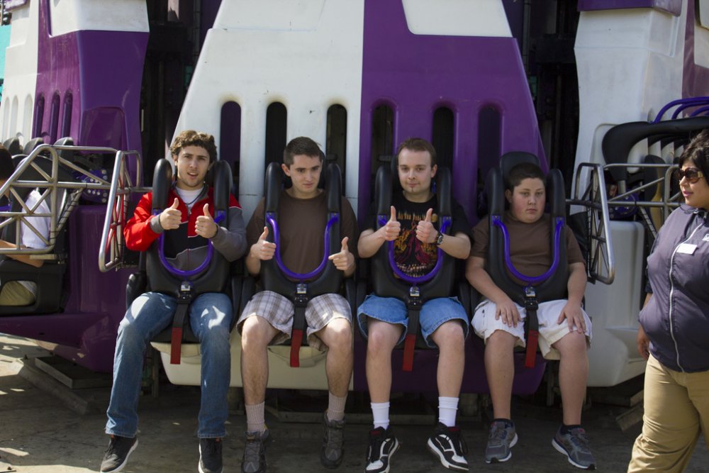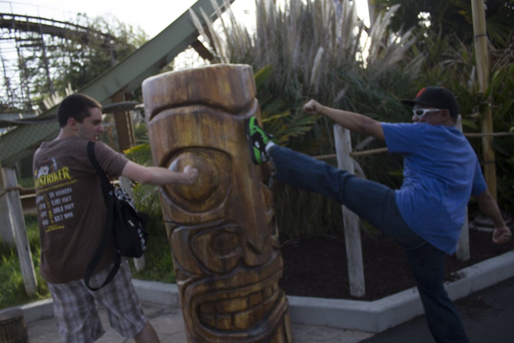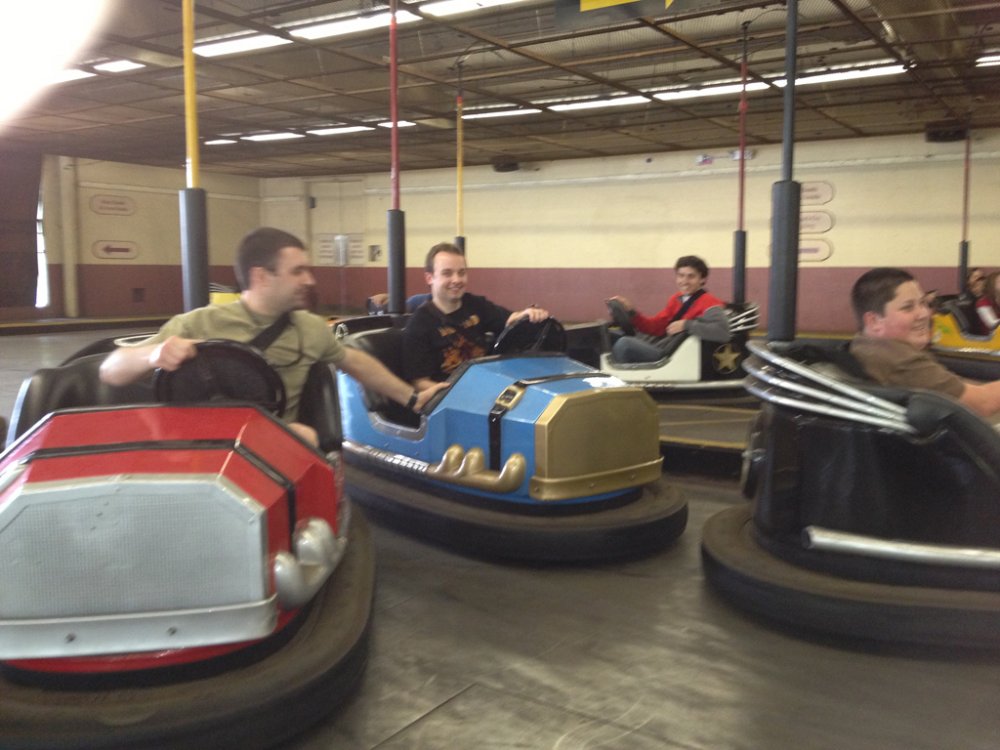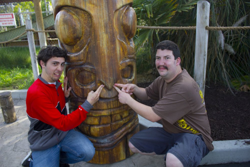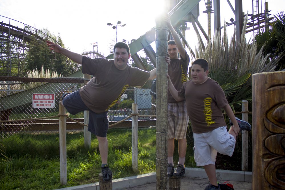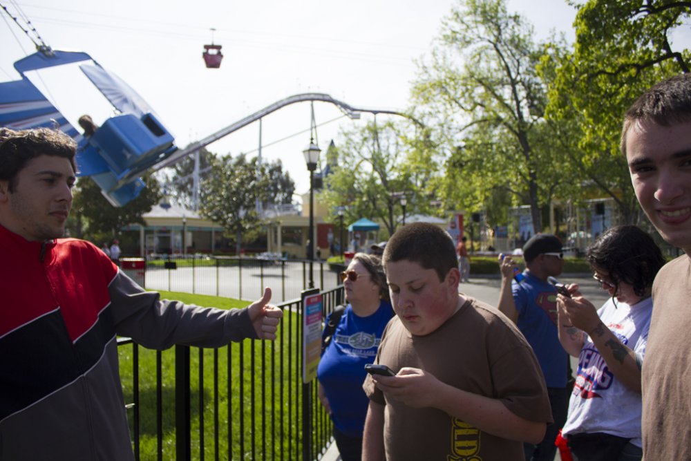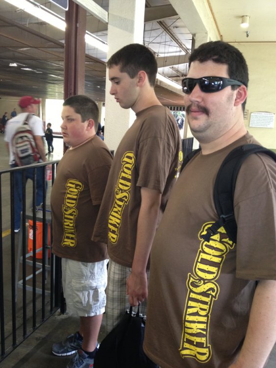 ^I betcha we (our group) can drown them out! So yesterday was a first real solid visit to CGA and the first visit when pretty much the whole gang was there. I got a bit concerned at first because suddenly 2 large buses appear and event goers come out of the woodworks like the zombie apocalypse. The group consisted of JeffyJosephNorcal, Rolercstrluver, BlueFireGuy, Robman, Flagg O' Dimm, RJVader, my cousin, neighbor, and myself. Naturally, we kick off the day with the Flying Eagles as there was no line for it. Traditionally we've done Flight Deck but due to the flyer's low capacity (you can easily wait 30 minutes for this) it's best to hit that first. Amazing warmup rides, that's when we spotted Flagg O'Dimm, and RJVader and a couple of us decide to go for a second round. After yet another fun ride, it was time to let the birds rest and head to the back. Psycho Mouse had a minimal line so we took advantage and hopped on that, followed by a quick session on Drop Tower. Grizzly had then just opened so again, more taking advantage before the lines would get potentially long. Even a station wait can be 15-20 minutes easily...let's take 3.5 - 4 minute dispatch times, plus let's say you're waiting 5 trains/5 pairs of people to board/10 people ahead of you...you get the idea... Upon completion of our first round, Demon had a minimal line/next train wait but instead we opted to ride White Water Falls...surprisingly not as soaking as anticipated. Amazing lapbar-less airtime though! Still haven't ridden Flight Deck, it was time to ride some B&M so Vortex was it. I decided to try an outside seat in the middle of the train and it was a little rougher but really not all that bad! So we eventually made it to Flight Deck almost 2 hours later and the line was pretty minimal, maybe 5 minutes at most. The day was much lighter than opening weekend and getting on rides was much easier. Maybe it was the threat of rain (which hadn't arrived until night time on my way home. I feel like I got even more out of this visit than my opening weekend visits...light crowds. Gold Striker tidbits: I didn't actually take that many photos as not much has changed/the coaster looks pretty much complete from our vantage points. No need to repost what was posted Some highlights of the rather nice day: -Riding Flyers 5 different times, the 5th ride just making it (We literally booked it as soon as we got off FD, only having less than 5 minutes to get in line before they closed it off) -Finally riding Firefall this season...it is rather slippy on the final maneuver over the fire pond...but that fire was nice and toasty! -Watching park management serve some line jumpers/rail hoppers and embarrassing them quite good ...let that be a lesson learned, kiddies! -Still being able to enjoy Vortex even further back -More line jumpers at Flight Deck...2 kids meet with their group ahead of us after passing us by (as we shake our heads in disgust)...followed by me hearing them tell the rest of their x amount of friends and family to come up there...glad I can understand some foreign language Luckily they didn't come up there as instructed as I would have notified staff at the soonest possible point. And we just had to try this classic electrical chair known as "The Screamer." It sounds worse than it really is though. Yay here well before the parking lots open...some people coordinated quite well today Gold Striker sure is lookin' purdy! Meanwhile in line...let's mess with the Nintendo 3DS and it's "Face Merge" feature...creepy, no? (Blue Fire Guy and I's faces merged) Meanwhile inside the park...someone stole the sign NERD! Wait, what's this? I spy some queue theming! Lone worker on top of the scream box No trains yet... Wild 94.9 was at CGA today but the area pretty much looked like this all day. Meanwhile, over to Flyers...Flagg, RJVader...are you guys tall enough to ride? Heading toward Psycho Mouse before it became Psycho Queue Drop Tower fun... Wheee! Over to Grizzly before lines get insane Slowly cruising to the lift... Ok, we got our Grizzly ride in for the day! In line for Rue Le Wrist-Snapper Over to Happy Feet since BFG hasn't gotten his Happy Feet credit yet...why does he look evil? It's so peaceful back here! *visions a launched coaster running along former train track bed* Meanwhile, my cousin decides to ride the Rapids...one should never trust leaving anyone in our group behind. We've got our spotter in place... Getting the quarter ready She's coming, she's coming!!! All clear, dispatch!!! *Psssssshhhhhfffftttt* Reason why the rest of us opted out on riding. Aftermath.. The old train bridge...I can totally see a coaster zooming down this path and across the bridge Flyers, we aren't done with you yet! Wheee! After riding the flyers, it was time to ride the other flyers. The 3 stooges... Sorry BFG, I don't think you'll be striking any gold here! I don't think we will either So in turn, the tiki gets the FALCON PUNCH!!! and the FALCON KICK!!! treatment. And a final visit on the flyers, in gusty winds...provides some interesting, challenging rides! And when I say interesting rides, I really mean it! (Wind gust plus a nice swoop turned me backwards for a brief moment) Alright, I guess good things must come to an end as much as we weren't quite ready to finish the day off...