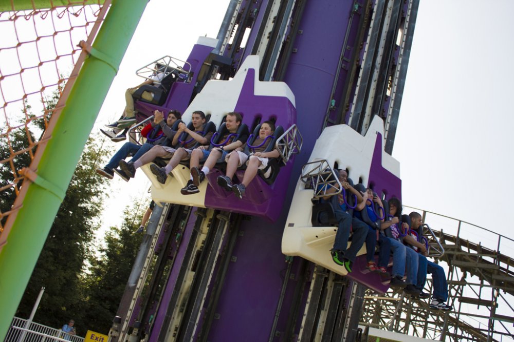 I'd love to see Firefall get a full on makeover during the off-season. It is rather faded. I have yet to ride Firefall this season as we all had our bags with us (and didn't have a bag-sitter)...and I don't like exactly leaving my stuff out on a crowded day. I have seen though last season on the final 'hang' over the lake where we were essentially just being gently lowered while remaining in an upright position...complete with the squealing. Knotts recently repainted their Riptide and it looks amazing! I'd absolutely love to see FireFall actually receive a paint job like this...So, CGA, this is my request...I know you guys are reading the boards (Oh and let's paint Star Tower to be like the one at Knotts with the American flag while we're at it!) Does that not look quite fitting for FireFall? Minus the surfboards of course. But the flames are far more appropriate than the twisty tornado paint job it has from it's days of being Texas Tornado at Geauga Lake. And fitting coasters into places...it just takes creativity (yup, creativity, not cloning an existing layout). One would never think you can cram a B&M into a small plot like Vortex. Yes it's a shorter coaster but the space looks quite impossible to even fit anything of that scale in its plot of land. I realistically don't see a coaster coming again for a few years but you never know what tricks they have up their sleeve. CGA has received back-to-back coasters for several years during its 1990s heyday. Realistically though I can see a flat coming in, or maybe something to increase the value of the waterpark they have...in its current state it feels like a mini water park, as fun as the slides are.