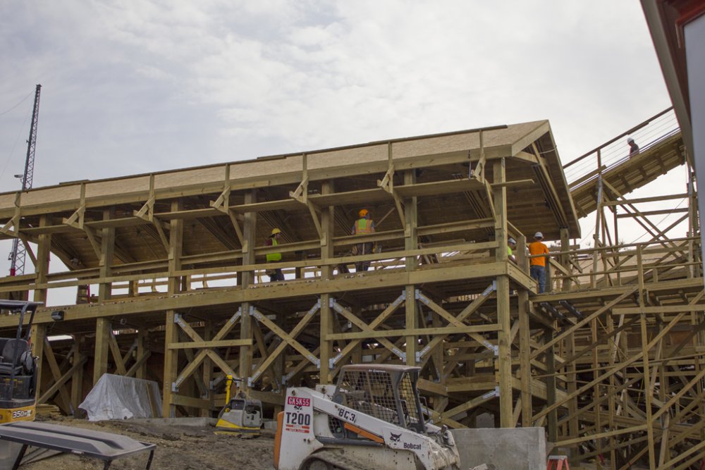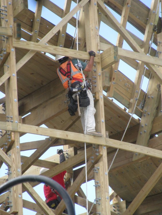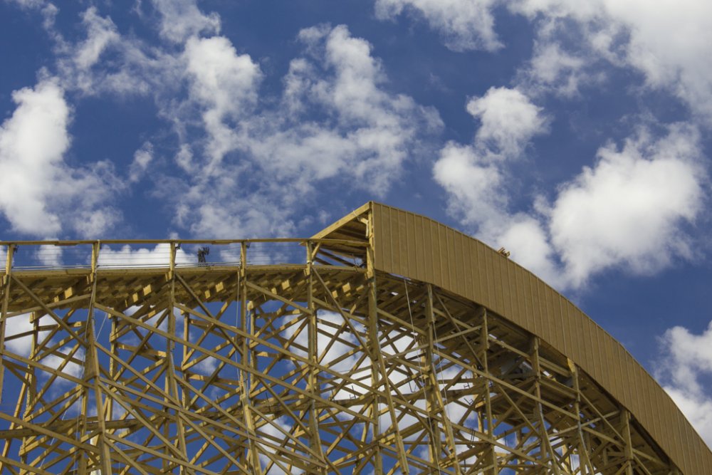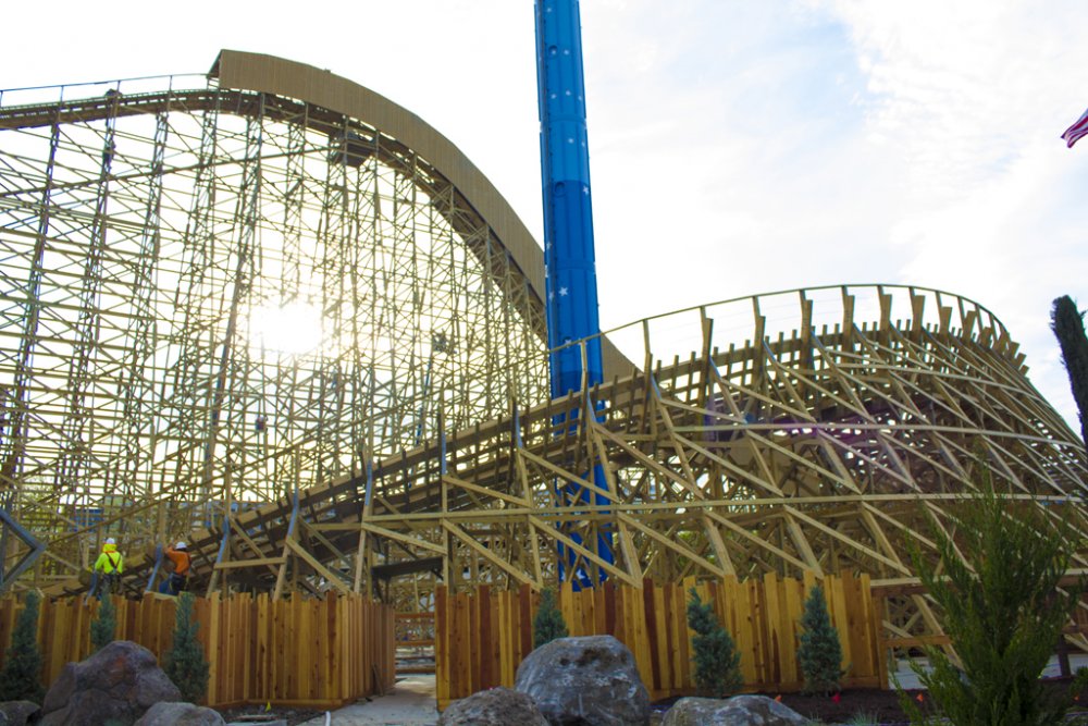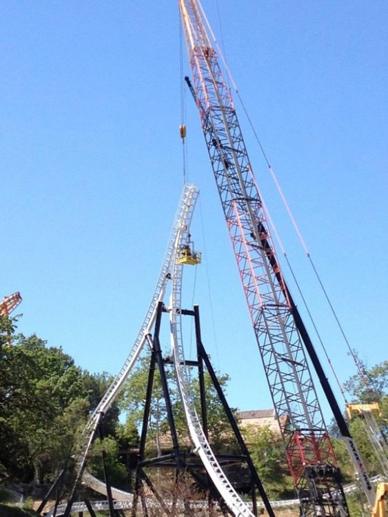 Wow that was fast! Last I saw there were just a few supports and the mac-n-cheese colored track sitting in that lot across the street. And I was thinking they'd still be assembling track when we head down there in a few weeks. Now I'm wondering if we'll see it cycle or if that's just pushing my luck/guesswork.