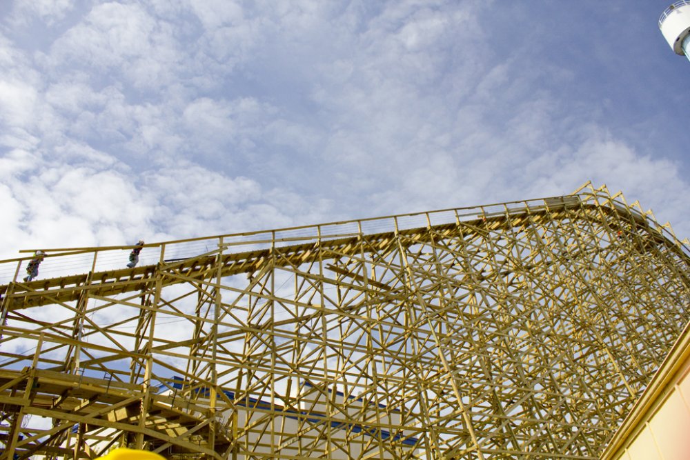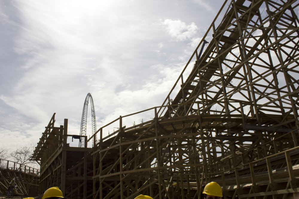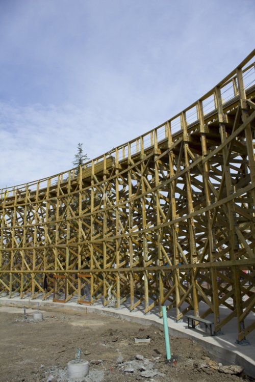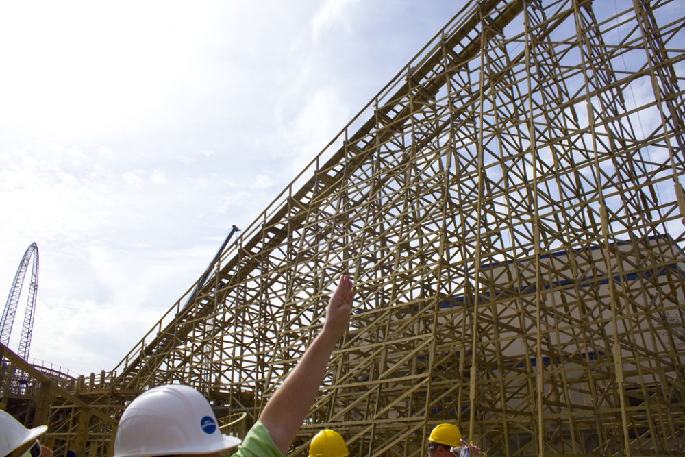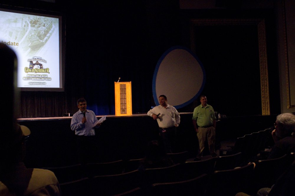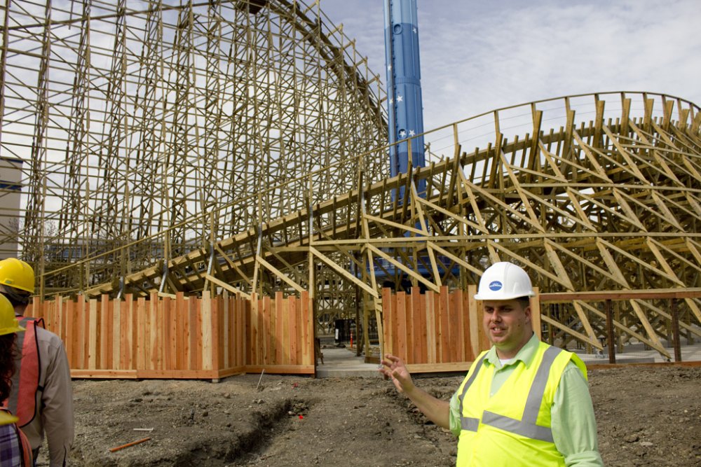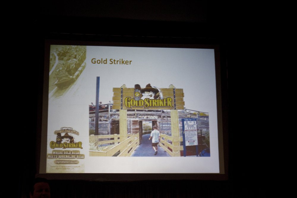 I just came back from an amazing 'sneak peek' tour of CGA today, which included a comprehensive presentation/Q&A of the park, a tour of park happenings, and most importantly, a hardhat construction tour of Gold Striker. The icing on the cake was being able to ride Xtreme Skyflyer, free. Some important notes from the video: (Video now live!) • 3 NEW Haunt mazes, one will exist in a new structure, the other 2 in existing structures. My guess is that 2 will be swapped out. • Confirmed, AFX is getting a NEW show. It is not white water rafting, we can only continue to guess what will go in. • Confirmed: River Adventure (Kid's inflatable boat mini river) is leaving but can see something new in the future • Subway is coming • New locker system using an all digital POS system (Point of Sell) and digital entry as opposed to the existing keyed entry • Parking lot revamped • Food venders including carts accepting debit cards • 3 NEW shows: Pop Fusion, On Broadway, and Team Charlie Brown. Happiness is Snoopy will return this year • Show schedules will no longer be those cheap-looking xerox copies but actual nice, printed material much like how the park maps are • Lots of buildings being repainted • Lot of dormant buildings are being revitalized, including where Subway will be located • Different areas will now have their own background music based on theme...Action Zone will feature electronica/high energy-like music, 50's music by Firefall, etc... • Last but not least, they are really focused on theming of Gold Striker. We will not be riders, but prospectors The park feels that Gold Striker will provide a very unique coaster experience with the elements it features along with the added tunnel (which was not required of them to put on, was an after thought. • Gold Striker's opening date has not been said yet Without further ado, here's the photos from the amazing tour! And I would like to thank CGA and the team for arranging such event for the coaster enthusiast community! Hats off to CGA! So before the park opened, we headed into the Prudential/office parking lot And then took a trip to the new parking lot across the street to see the CGA skyline Gold Striker construction can't happen without a little stadium construction It's still GWW at CGA? From outside the park, workers inside the tunnel The Carousel received new paint during the off season, it looks beautiful! Part of the TPR group, thanks to CoasterPalooza for taking the photo! Jeff and Snoopy...Snoopy made his rounds! Wide shot from inside the park. This looks absolutely amazing/sexy/whatever you want to call it! I'm juiced! Tour coming soon...until then, presentation! (See notes in report above) They showed us a mockup of GS's signage (pop quiz: where is this coaster in the photo located?) And the trio (Ryan, Roger, Tyler) move the presentation along Presentation ended with a little info about Coasting for Kids. I am going to sign up for it. CGA really wants to improve the event this year And the park tour begins! This is where Subway will live. A little hard to tell but the lower turnaround was done this season, and they reprofiled the track coming into it as it was a sharp jolt. Maybe they'll shave off some seconds in runtime Gone is the confetti pattern that's lived there 15 years (That Coca Cola had designed) and in with the fresh new paint! Drop Tower with the dormant Cabin 1. No worries, they are looking at getting this back up and running...CGA read our discussion about this Psycho Mouse is getting some new composite roofing material up, and the giant mouse head...where'd it go? It's getting touched up as CGA's Clayton tells us Haunt Hearse go kart? I'll race that! Centrifuge got new paint and new coating on turntable platform. Should be less slippery now! River Adventure...GONE! Spongebob...GONE! This will be the last time you'll see this sign. Outback Shack is no longer bubblegum pink! Another building getting some work done...was a game, now it's a character meet and greet location 27 more days...and we'll be flying again! Upon completion of the loop, it's time for our group to take the hardhat tour! First we venture back behind Xtreme Skyflyer skycoaster Blue Fire Guy savors the moment of being under our favorite water ride at CGA. Now for some gold...Backside of the so-called "Prudential Turn" Looking back to where the track heads to the midway turn...this hill after crossing under the first turnaround should provide some nice floater air! Heading back toward Carousel, where we suit up for the hardhat portion Dude...how on earth am I supposed to put this thing on?? Hmm...maybe like...this? Ah, screw it...yolo! I'll wear it twisted Aright, here we go! We'll take a pretend queuing stroll as this is where the line will begin. Back here will be a set of switch backs where you can get some nice views and photo ops of Gold Striker. OMG...this is going to be amazing! Ryan tries to brace the structure from falling over And we got some up close and personal action! Sexy laminates This is where the train will come screaming out of the 174' descent tunnel. This is the bottom of the first drop, leading to the speed hump/flyby Probably my favorite shot of Gold Striker's drop! 1 last look in this area before we exit the switchback area The line will come back out and go through the backside of the former Carousel Souvenirs shop. This path will be themed. ... Next up was taking a look at the station platform. They should have the roof trusses up now as they had them assembled, just need to get them in place. Looking back at the lift. The chain return trough has been installed Looking at the midway curve...85 degrees! And a final look back out at Gold Striker before we go for our flight! Rolercstrluver and RawkinCoaster38 take their flight View of Gold Striker from Sky Flyer area And then there was a raffle...what's that on the lower corner? Now, now...who would have done that? And this was the prize being given awa