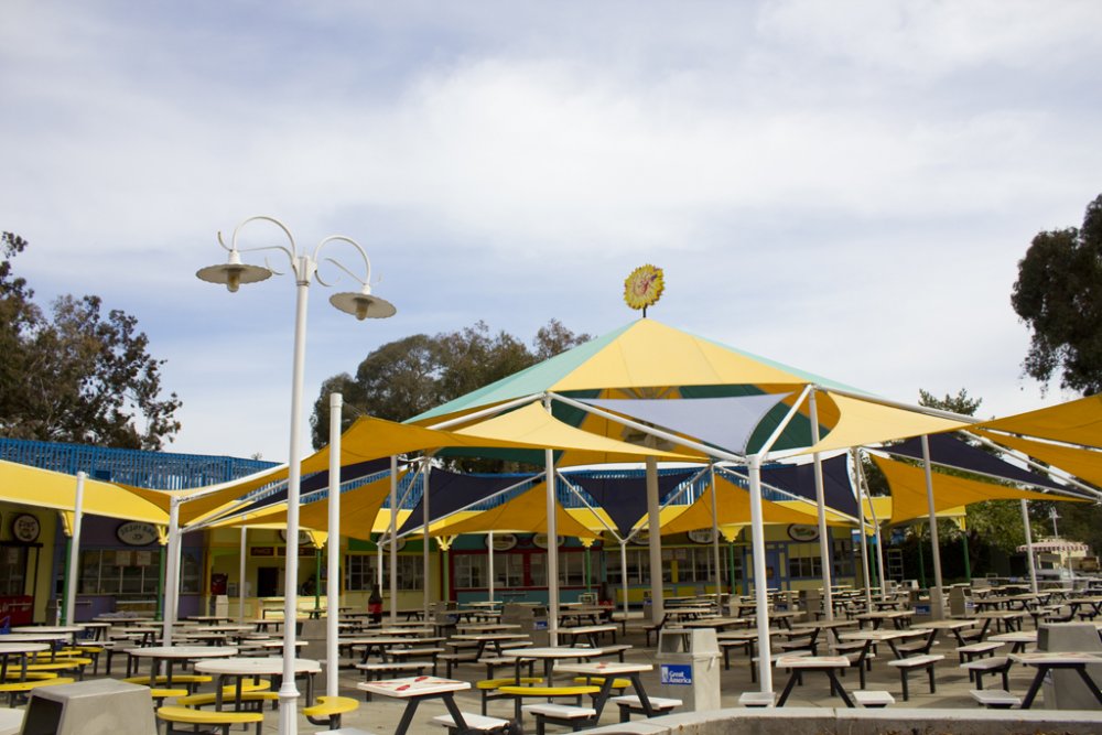 I honestly don't have many memories with the boats, other than on my 6th grade trip...I see "Scooby's Haunted River" only to find it's just a little play thing you watch inflatable boats go down. On the other hand, I miss the ever-so-massive (at the time) Fort Fun...the ball pits, cargo nets, suspension bridge, slides, and zip lines. That alone as a kid would have kept me busy for hours! So we were looking at the park maps comparing the 2013 to the 2012 map and noticed some adjustments that had to be made to fit Gold Striker. Star Tower and Pictorium were moved to the right quite a bit. The space where Celebration Swings sits now looks massive (probably doesn't help that the planter boxes and such aren't present on the map) Nevermind the fact that this is a 2003 map, the Star Tower area has pretty much been the same until now: And the now shifted over tower and pictorium: Not really nitpicking, just making some observations on what they had to do to get GS to fit in there