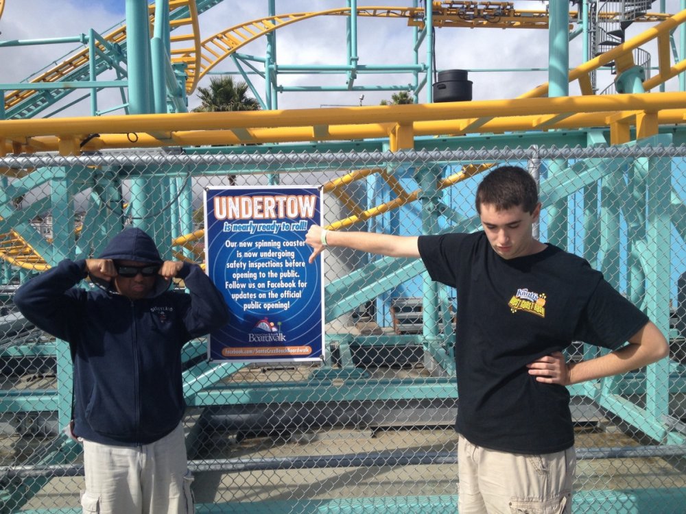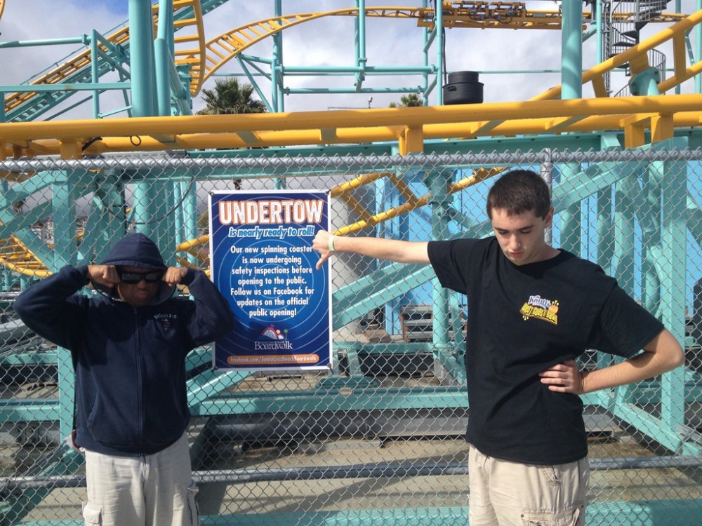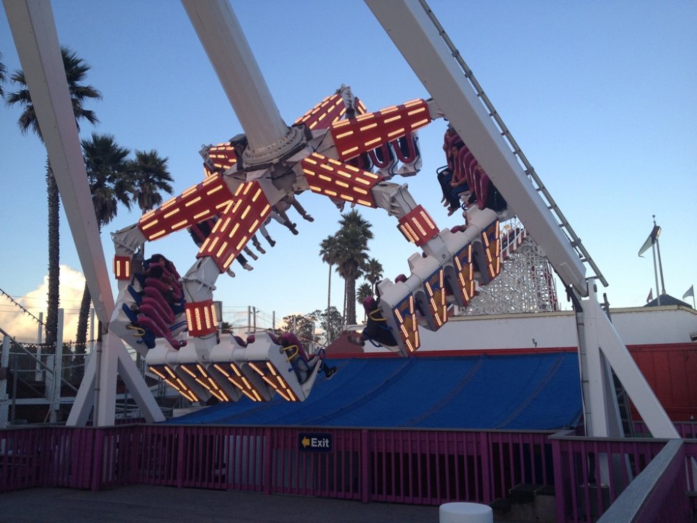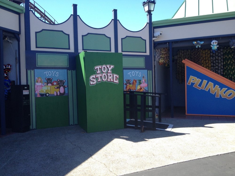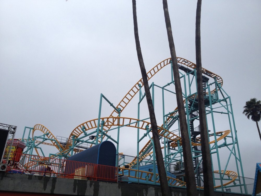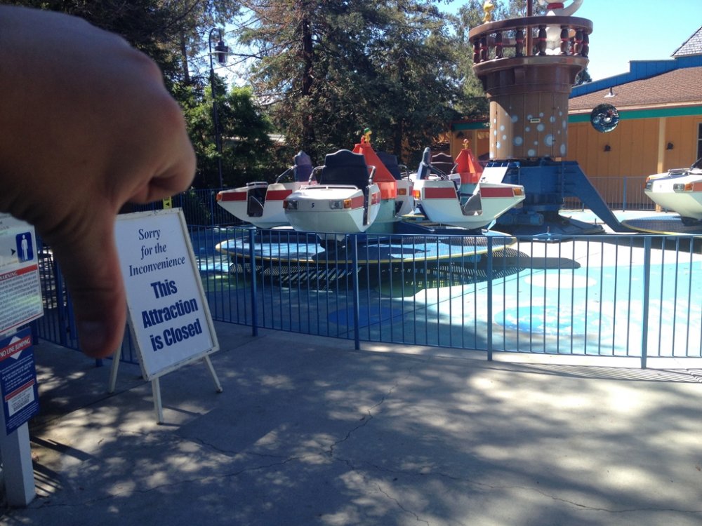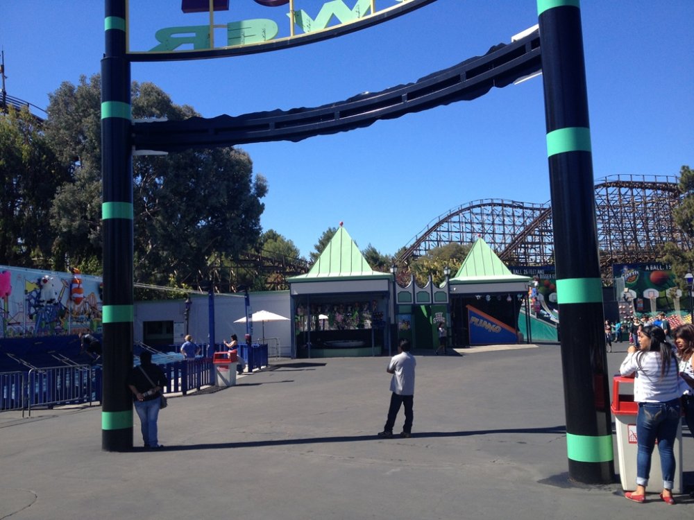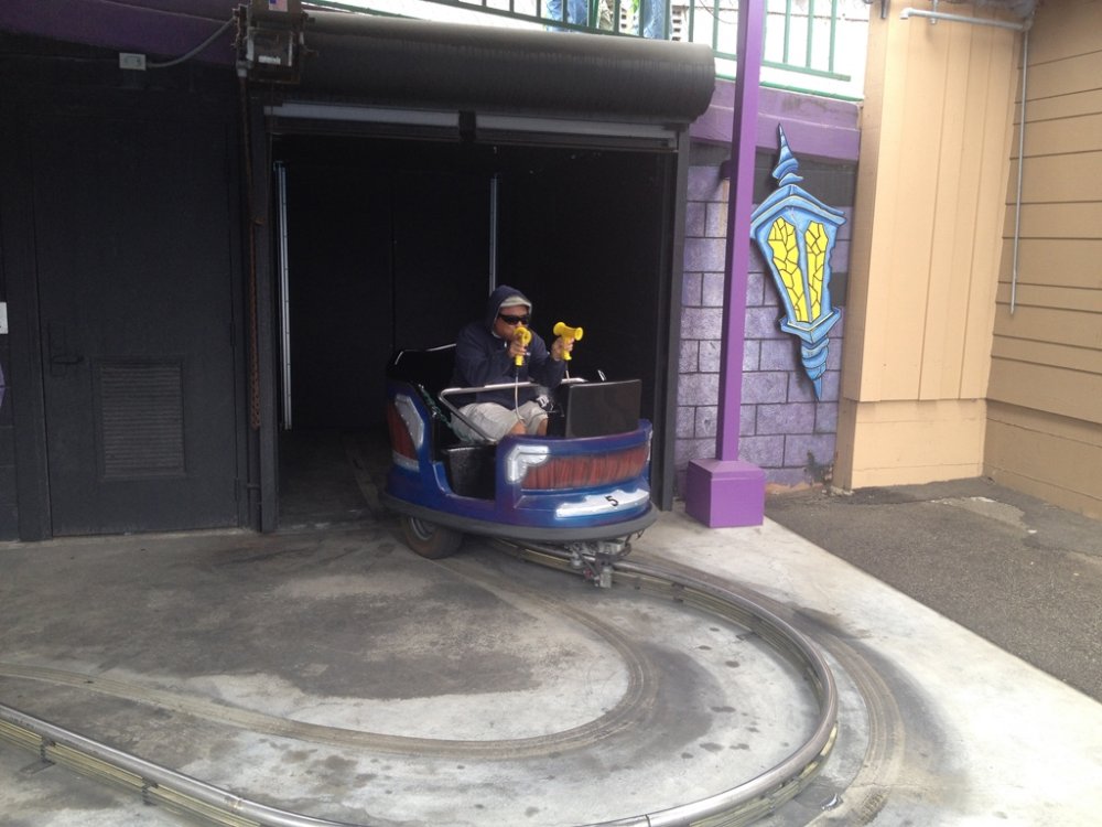 So, now for the writeup on our SCBB visit on 9/21/13! Rain was threatening but did not stop us (or anyone else) from enjoying a day at the 'Walk. We all still had an awesome visit despite UT/Deck Ornament not running. Here's some highlights of our visit. - TPR member Blue Fire Guy and I had a little competition on Ghost Blasters. Naturally we both aren't very good at this ride so both of our scores were low. This was the first time I had actually "won" on this ride though. (It's not easy to film and shoot ghosts simultaneously) - Wipeout fun! We found that doubling up actually gave this ride more momentum and with both of us leaning in sync at the right times, we were able to get this ride to pretty much whip us around upon command. I love this thing! - We attempted a Clench 'n Squish on Rock-o-Plane. Tight squeeze, more momentum on getting flips going. We primarily concentrated on mimicking a top spin and just balancing our cage upside down by locking/unlocking our cage at the right times. - After the rain cleared, though still not the nicest of days, we decided to hit up Logger's Revenge. Were there always misters mid drop? That got us pretty wet. - Shorter S&S towers rock! Still not as good as the puny Larson/ARM tower we did at the fair but still really fun! - Crazy Surf...'nuff said! - Fun in Fright Walk. We had 2 Fright Walk virgins in tow so visiting was a must. Video uploading and will be available here: - Tilt-a-Whirl (which gave me an awesome ride last year) left much to be desired this visit...no real whips or spins. - After all of my praise of Fireball, we got 2 'dud' rides as we got all the low swings on the ride's finale. Still better than the Zamperla Nitro I did at the fair this summer. - Single train op on Giant Dipper left lines spilling out of the building. It moved fast however. -Lastly, I still have yet to land any rings in the clown's mouth. My rings came within inches of the mouth however. With threatening weather according to Wunder, it doesn't look too bad! Or so I thought... ... A well-lubed Highway 17 ... Arrival in Santa Cruz. I think I'm making it tradition to eat at the Santa Cruz Diner on future SCBB visits...great food and great price! And we've arrived at the 'Walk! And I don't see any rain either! The gang...ready to blast some ghosts! ... Ready to roll! (Not our scores) ... Double fisted ghost blaster! Many people I've ran into are completely unaware of this ride. It lives hidden tucked in a corner in the "Pit" section of the Boardwalk. More pix later! Time to ride what I'm calling "Tsunami Soaker." Not to be confused with SFDK. It had actually started to drizzle while riding Tsunami. After being crushed at Knott's (riding their Wipeout) it was my turn to get revenge She's smart for riding solo Jeff is freezing his butt off And it has arrived...good old wetness! Quickly we take cover. That will be $5 if you want to stay dry! Taking cover... The rain is just pouring here! Thankfully it was only just a quick passing shower. But it would have literally been a shower, just needed the soap and we're good to go! Meet Deck Ornament. Classic carousel time! Ready for rings! Also ready for rings! Rings: The Clown After lunch we decided to hit up Haunted Castle...another great dark ride, one of the only 3 dark rides in Northern CA. Control panel nerd shot... Now for some Undertow porn! Translation: It will open when it opens and not any time sooner. :o No Angry Gumball, these aren't gumballs! And the rain's back again! Top Speed 55mph....nope! Honestly, it felt like it was actually running about this speed today. Despite the lack of airtime the ride was giving, it sent me flying around! Laterals are insane on Dipper, which is why it lives as my #2 woodie! Wipeout! Reminiscent of a Jackson Pollock painting! The entire ride cycle captured in a still image! I wish this were my bedroom window More Haunted Castle! Nope, not Summer anymore! Fireball with it's lighting package...looked pretty neat! ... Time to get heading out and take on what will be an amazing meal at the Santa Cruz Diner! 'Nighty night SCBB!