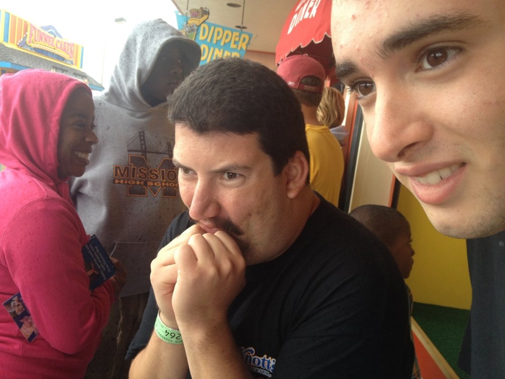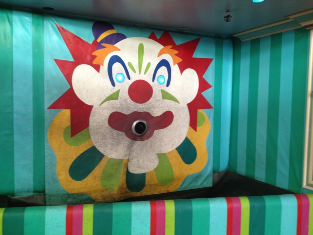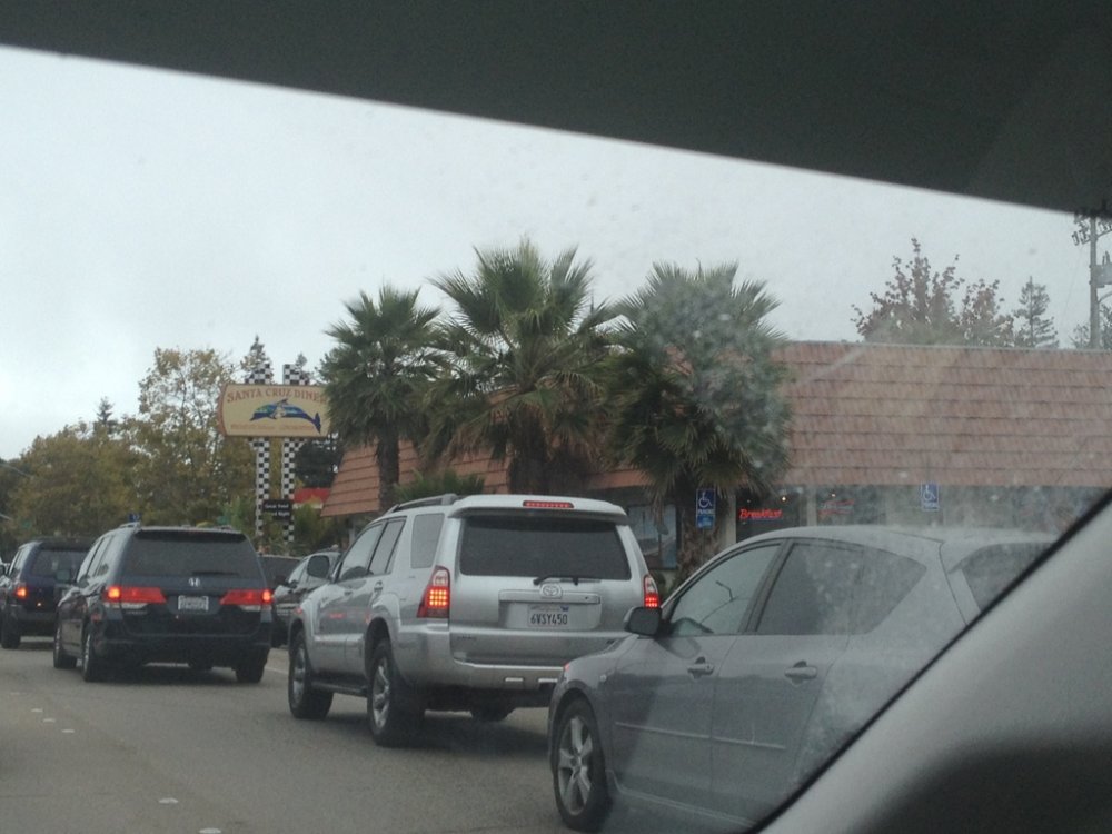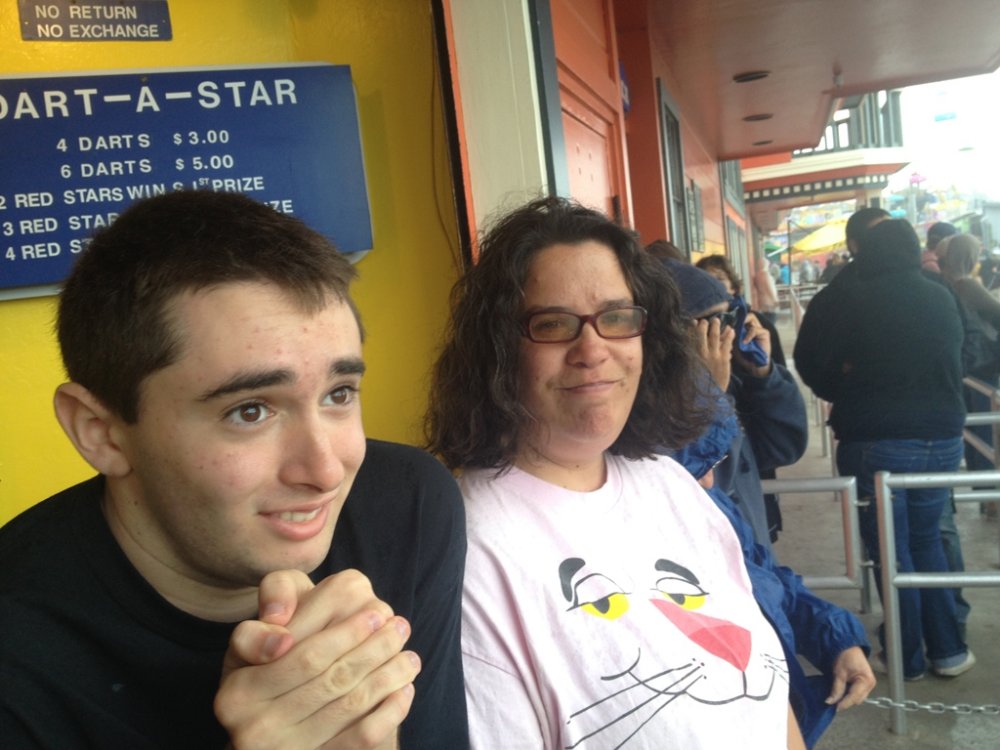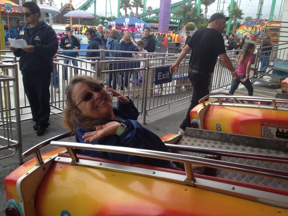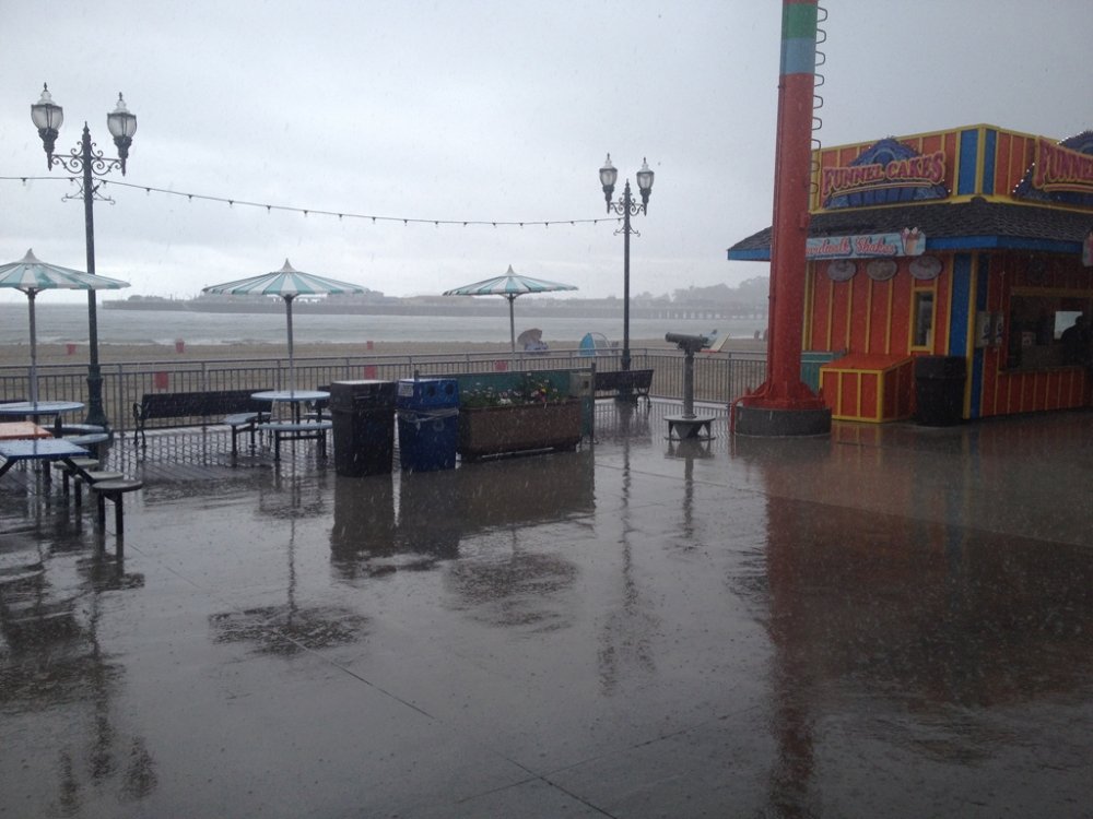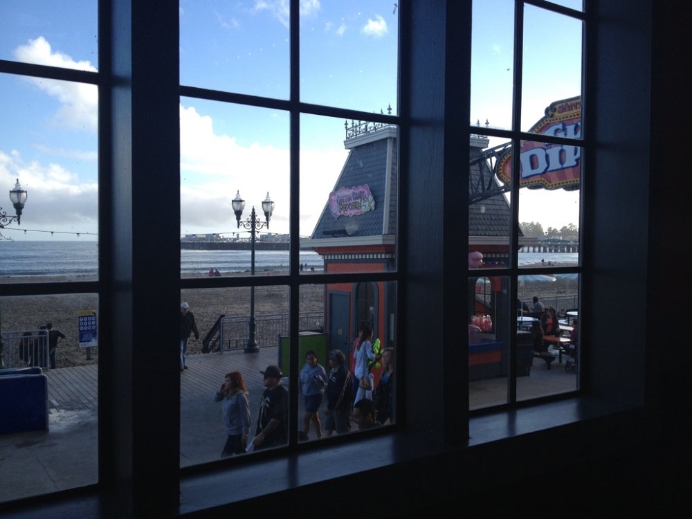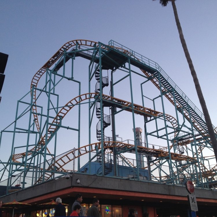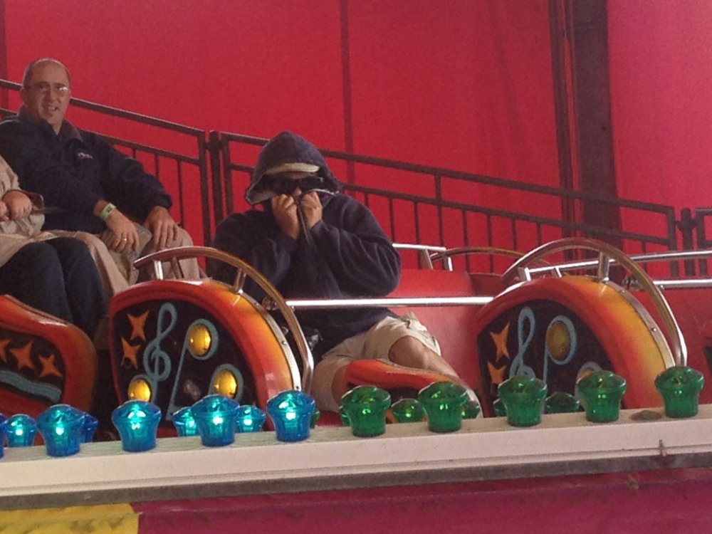So, now for the writeup on our SCBB visit on 9/21/13! Rain was threatening but did not stop us (or anyone else) from enjoying a day at the 'Walk. We all still had an awesome visit despite UT/Deck Ornament not running. Here's some highlights of our visit. - TPR member Blue Fire Guy and I had a little competition on Ghost Blasters. Naturally we both aren't very good at this ride so both of our scores were low. This was the first time I had actually "won" on this ride though. (It's not easy to film and shoot ghosts simultaneously) - Wipeout fun! We found that doubling up actually gave this ride more momentum and with both of us leaning in sync at the right times, we were able to get this ride to pretty much whip us around upon command. I love this thing! - We attempted a Clench 'n Squish on Rock-o-Plane. Tight squeeze, more momentum on getting flips going. We primarily concentrated on mimicking a top spin and just balancing our cage upside down by locking/unlocking our cage at the right times. - After the rain cleared, though still not the nicest of days, we decided to hit up Logger's Revenge. Were there always misters mid drop? That got us pretty wet. - Shorter S&S towers rock! Still not as good as the puny Larson/ARM tower we did at the fair but still really fun! - Crazy Surf...'nuff said! - Fun in Fright Walk. We had 2 Fright Walk virgins in tow so visiting was a must. Video uploading and will be available here: - Tilt-a-Whirl (which gave me an awesome ride last year) left much to be desired this visit...no real whips or spins. - After all of my praise of Fireball, we got 2 'dud' rides as we got all the low swings on the ride's finale. Still better than the Zamperla Nitro I did at the fair this summer. - Single train op on Giant Dipper left lines spilling out of the building. It moved fast however. -Lastly, I still have yet to land any rings in the clown's mouth. My rings came within inches of the mouth however. With threatening weather according to Wunder, it doesn't look too bad! Or so I thought... ... A well-lubed Highway 17 ... Arrival in Santa Cruz. I think I'm making it tradition to eat at the Santa Cruz Diner on future SCBB visits...great food and great price! And we've arrived at the 'Walk! And I don't see any rain either! The gang...ready to blast some ghosts! ... Ready to roll! (Not our scores) ... Double fisted ghost blaster! Many people I've ran into are completely unaware of this ride. It lives hidden tucked in a corner in the "Pit" section of the Boardwalk. More pix later! Time to ride what I'm calling "Tsunami Soaker." Not to be confused with SFDK. It had actually started to drizzle while riding Tsunami. After being crushed at Knott's (riding their Wipeout) it was my turn to get revenge She's smart for riding solo Jeff is freezing his butt off And it has arrived...good old wetness! Quickly we take cover. That will be $5 if you want to stay dry! Taking cover... The rain is just pouring here! Thankfully it was only just a quick passing shower. But it would have literally been a shower, just needed the soap and we're good to go! Meet Deck Ornament. Classic carousel time! Ready for rings! Also ready for rings! Rings: The Clown After lunch we decided to hit up Haunted Castle...another great dark ride, one of the only 3 dark rides in Northern CA. Control panel nerd shot... Now for some Undertow porn! Translation: It will open when it opens and not any time sooner. :o No Angry Gumball, these aren't gumballs! And the rain's back again! Top Speed 55mph....nope! Honestly, it felt like it was actually running about this speed today. Despite the lack of airtime the ride was giving, it sent me flying around! Laterals are insane on Dipper, which is why it lives as my #2 woodie! Wipeout! Reminiscent of a Jackson Pollock painting! The entire ride cycle captured in a still image! I wish this were my bedroom window More Haunted Castle! Nope, not Summer anymore! Fireball with it's lighting package...looked pretty neat! ... Time to get heading out and take on what will be an amazing meal at the Santa Cruz Diner! 'Nighty night SCBB!